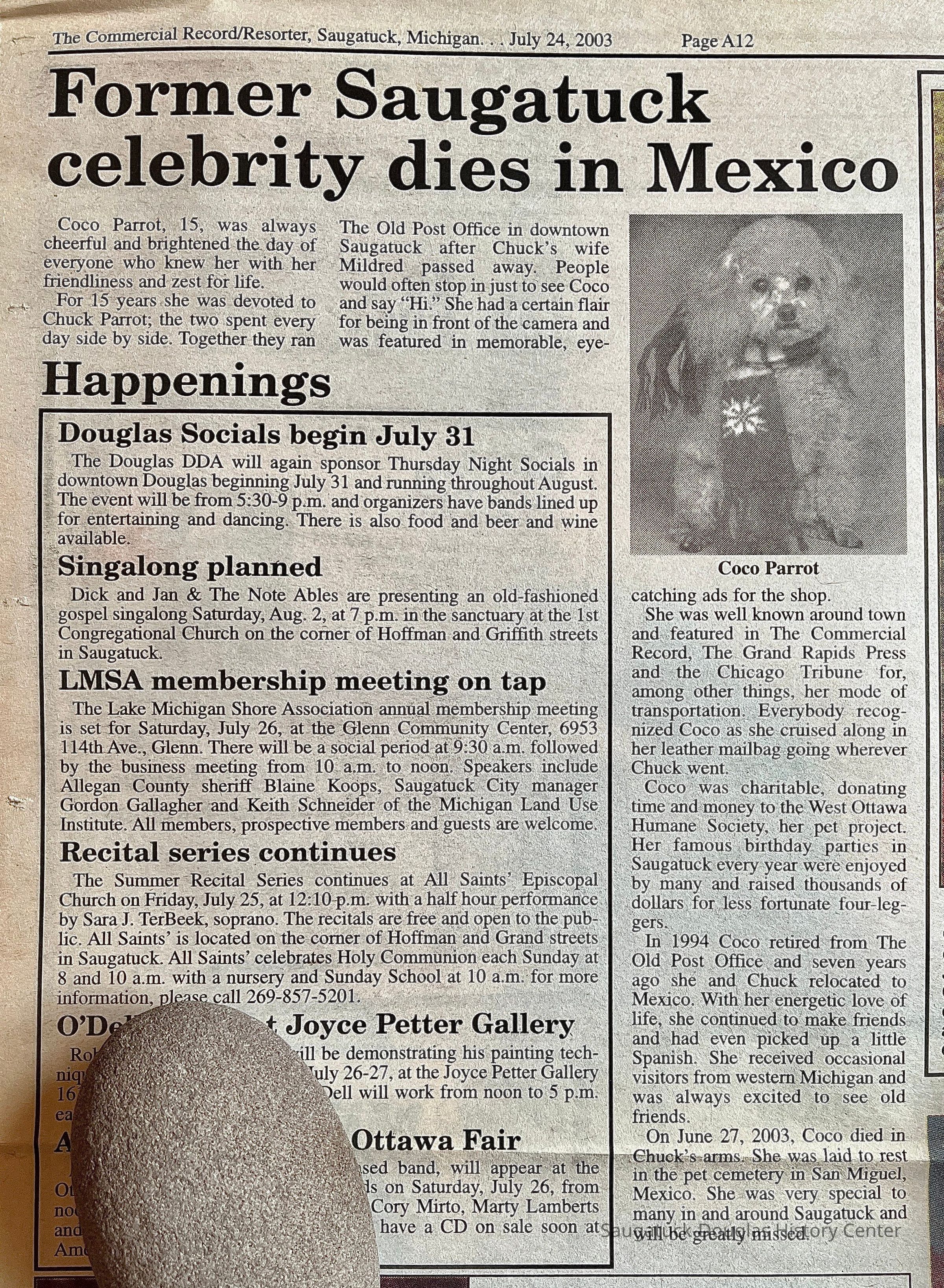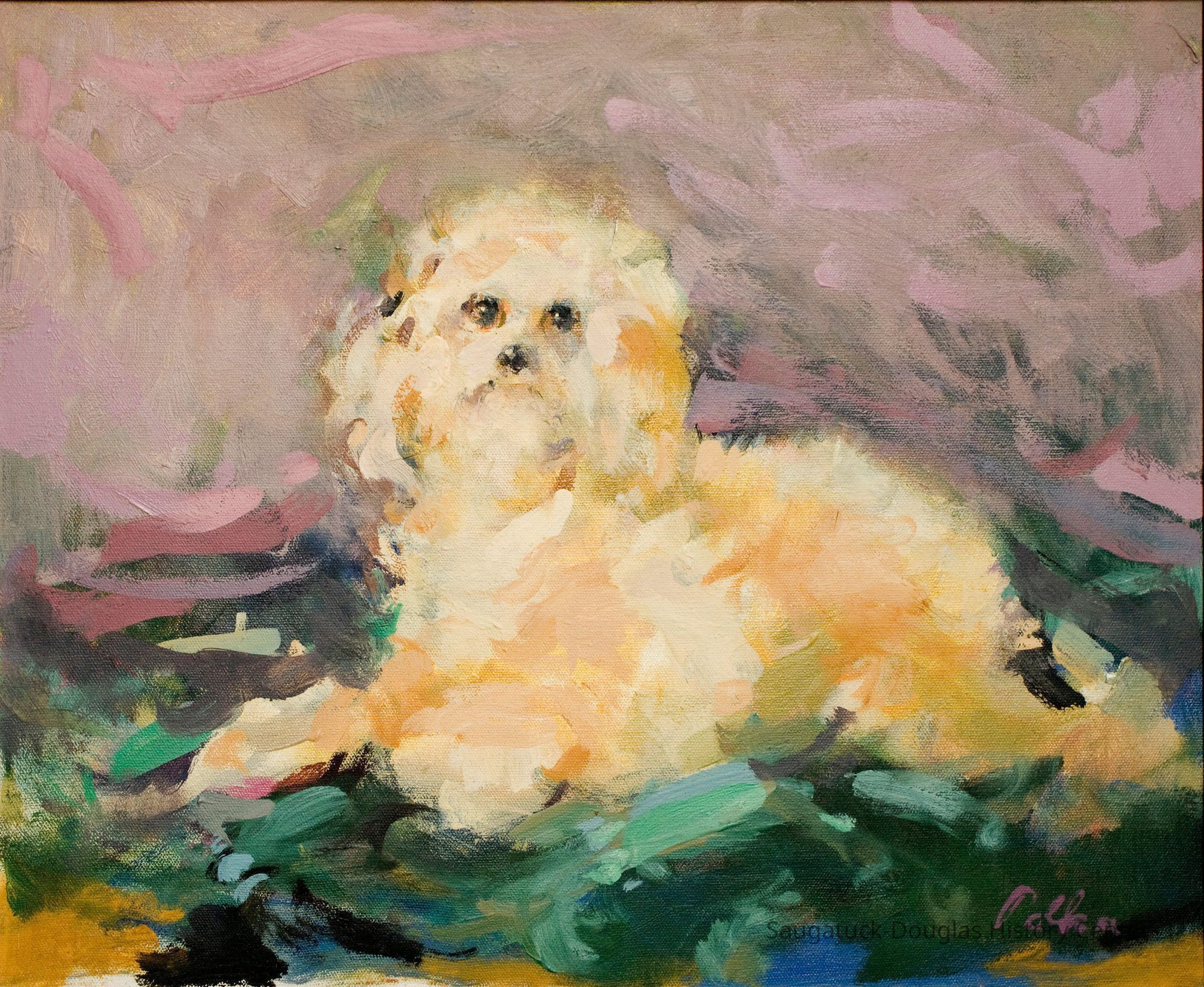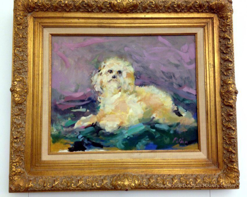 John Polka Coco 1990 | oil on canvas Notes: Polka did many portraits of pets. These paintings were often playful and somewhat decorative. Polka studied both in Europe and, later, at Ox-Bow. In the 1960s, he opened a studio in Saugatuck, where he taught and painted landscapes and portraits of people and animals. Collection: Saugatuck Douglas Historical Society