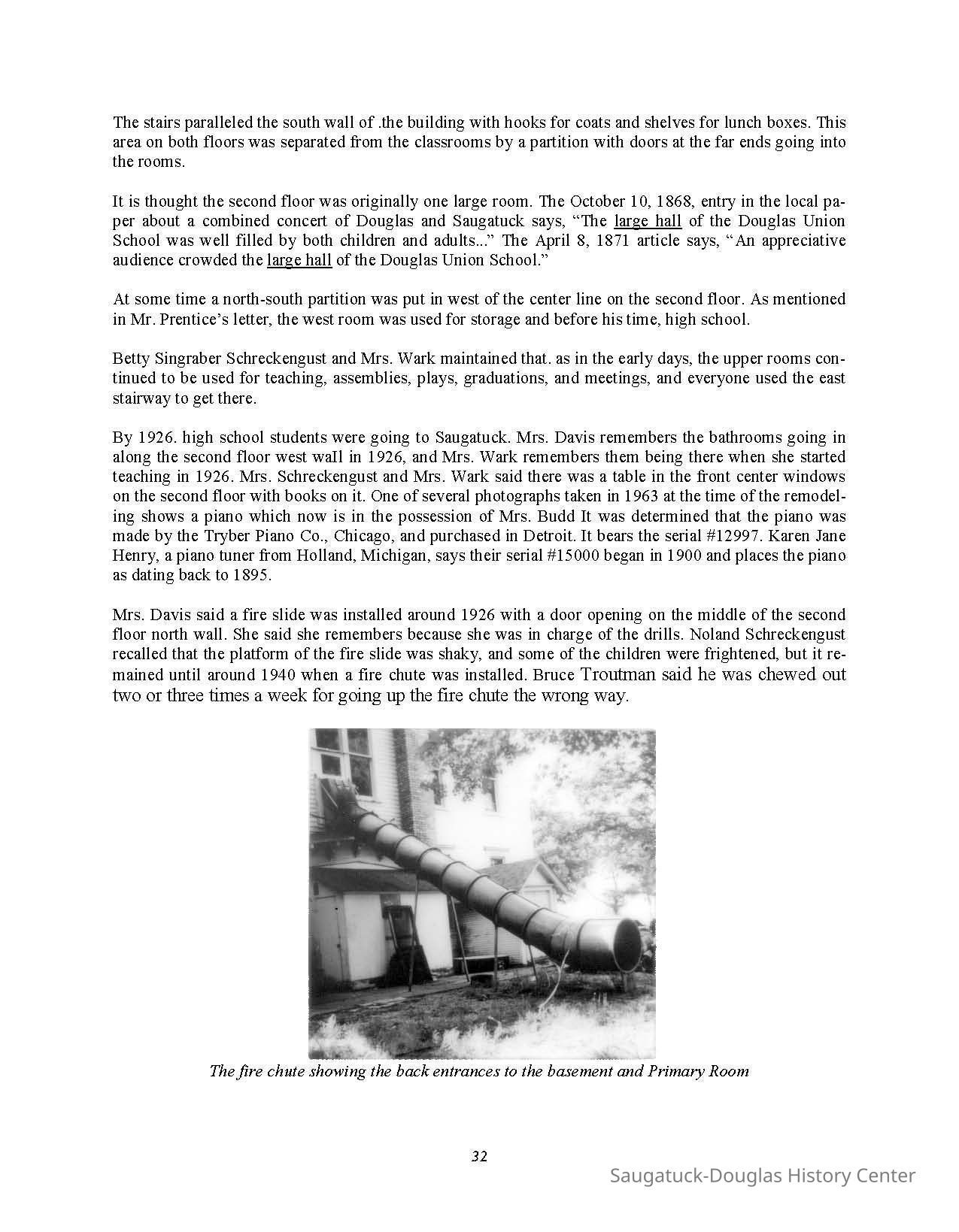 Book written in 1997 by Nancy Budd titled: The Douglas Union School - Listed in the Michigan and National Registers of Historic Places 1866