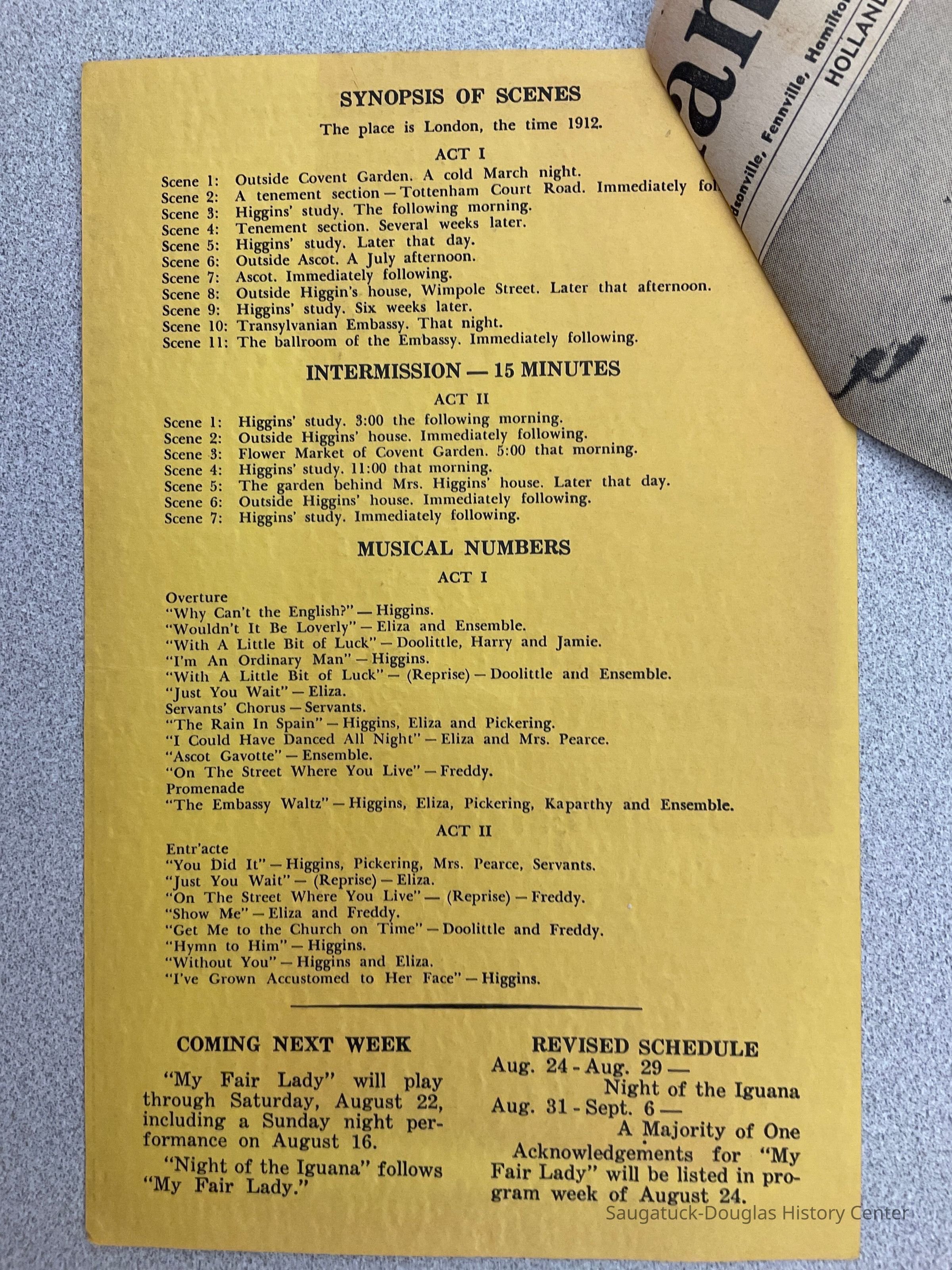This Week at the Red Barn Aug. 11-22, 1964 My Fair lady