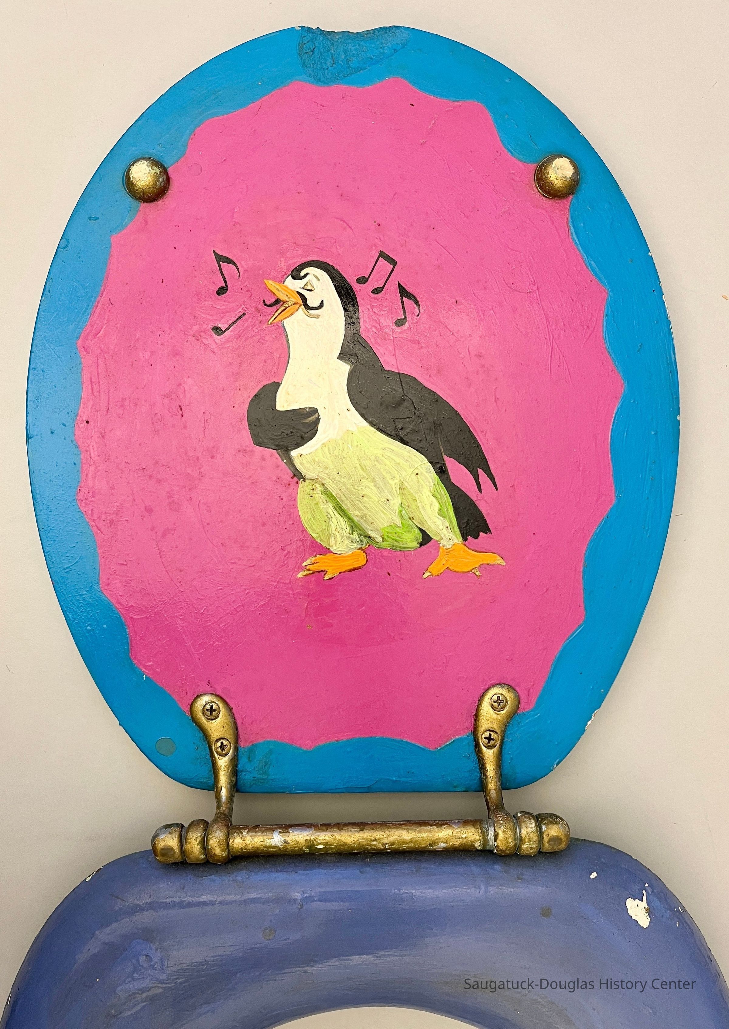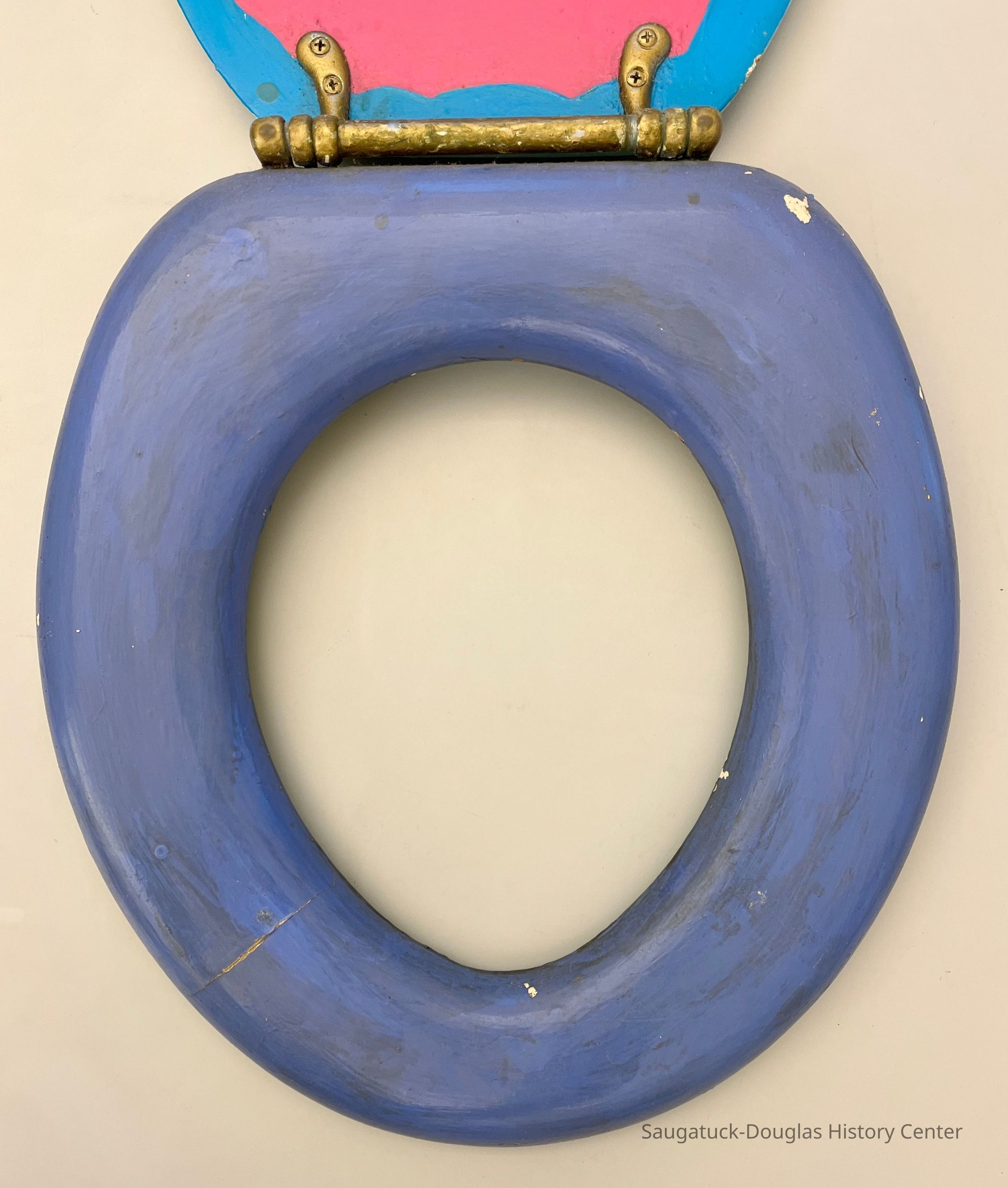 Wooden toilet seat decorated by Douglas artist Nat Steinberg.