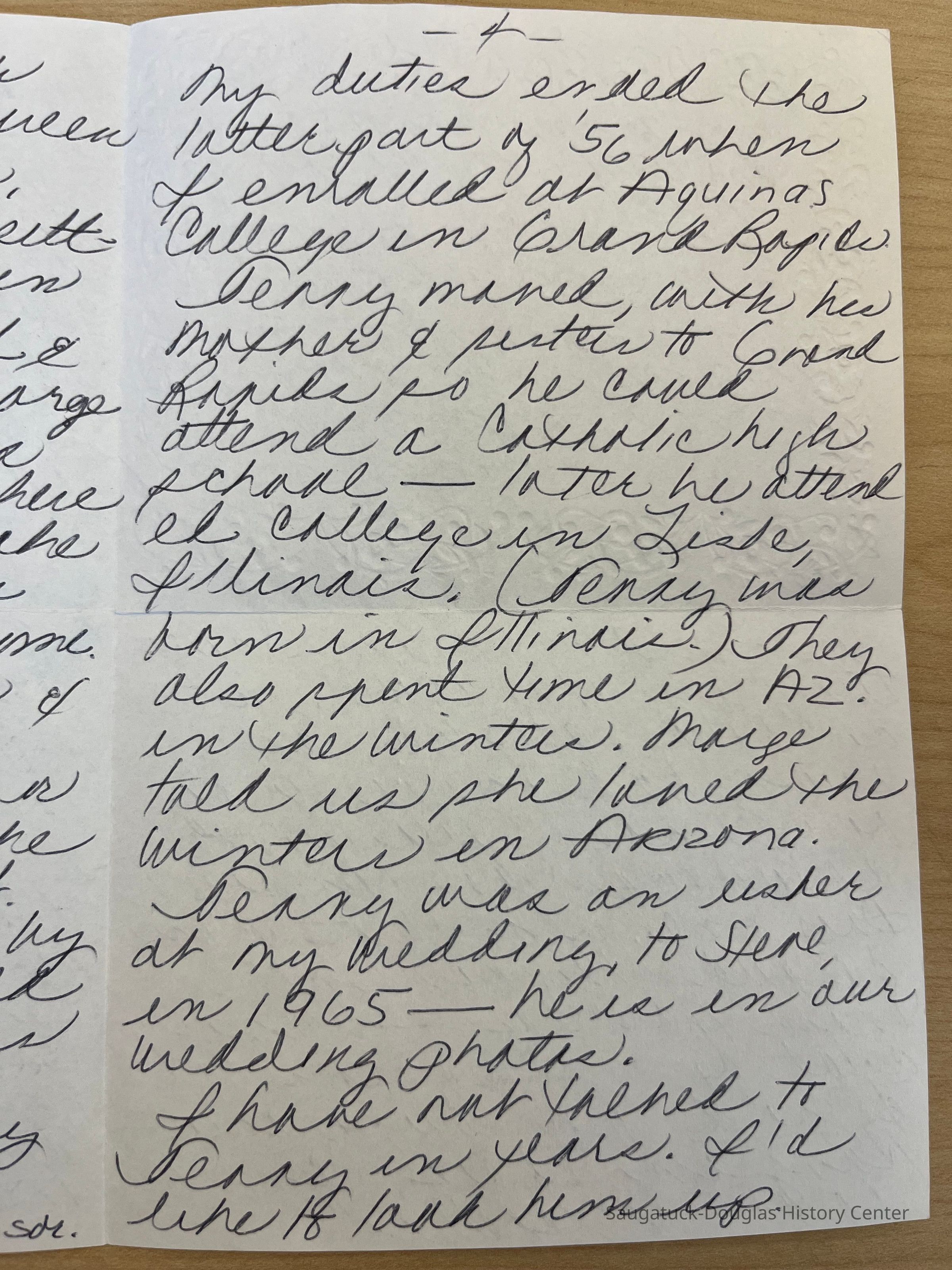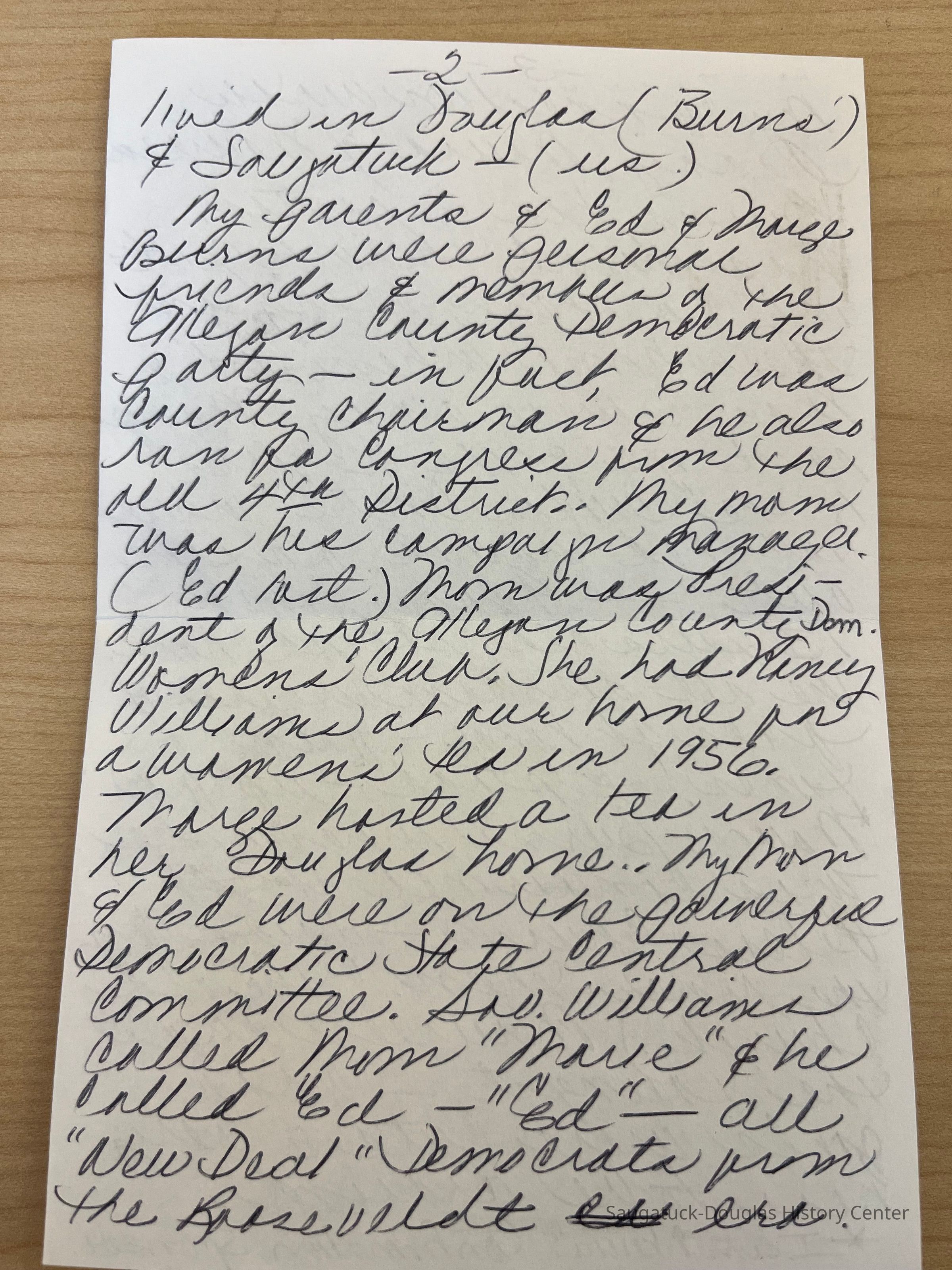 A letter relating names and information about persons involved with the Allegan County Democratic party in the 1950s and 1960s