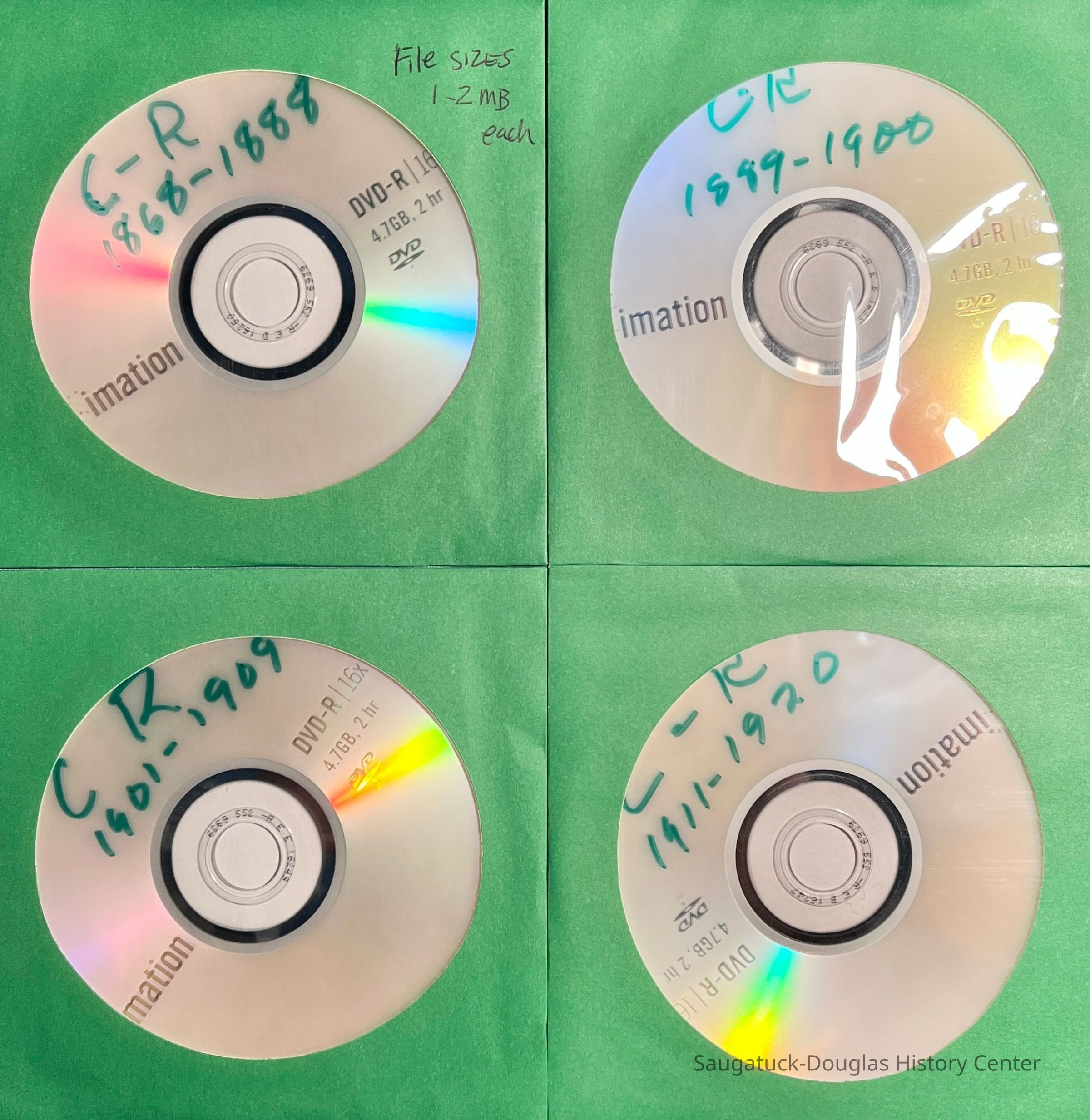 Four CDs containing photographs of every page from the local newspaper from 1868 to 1920.