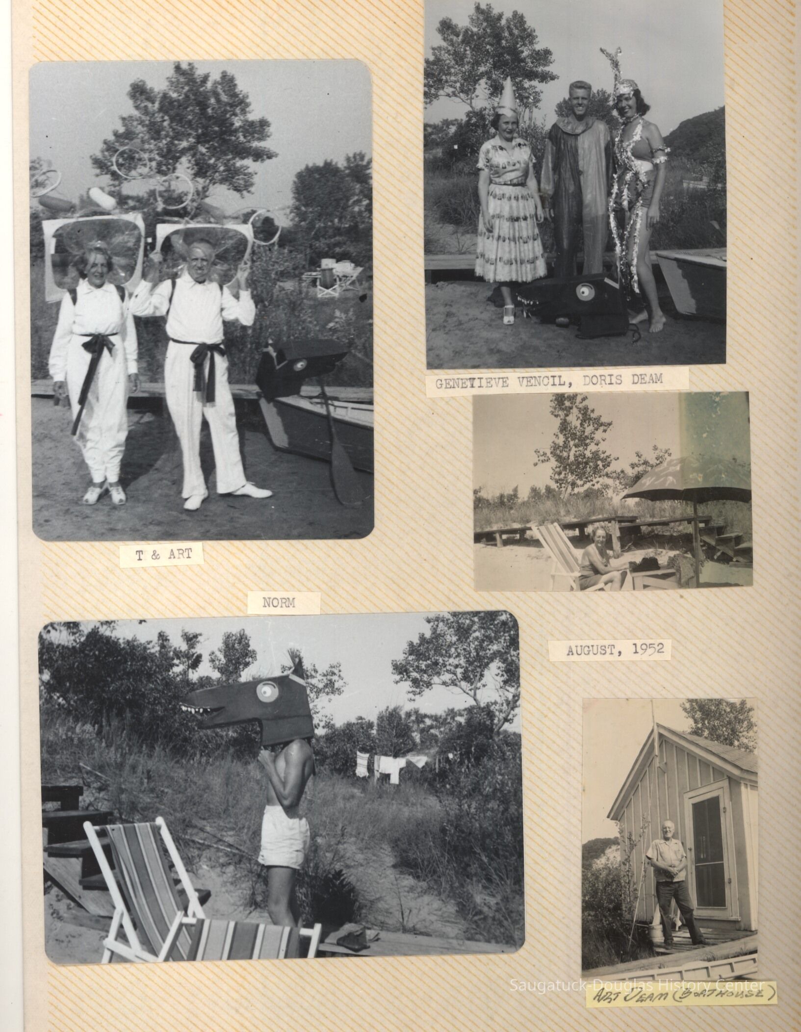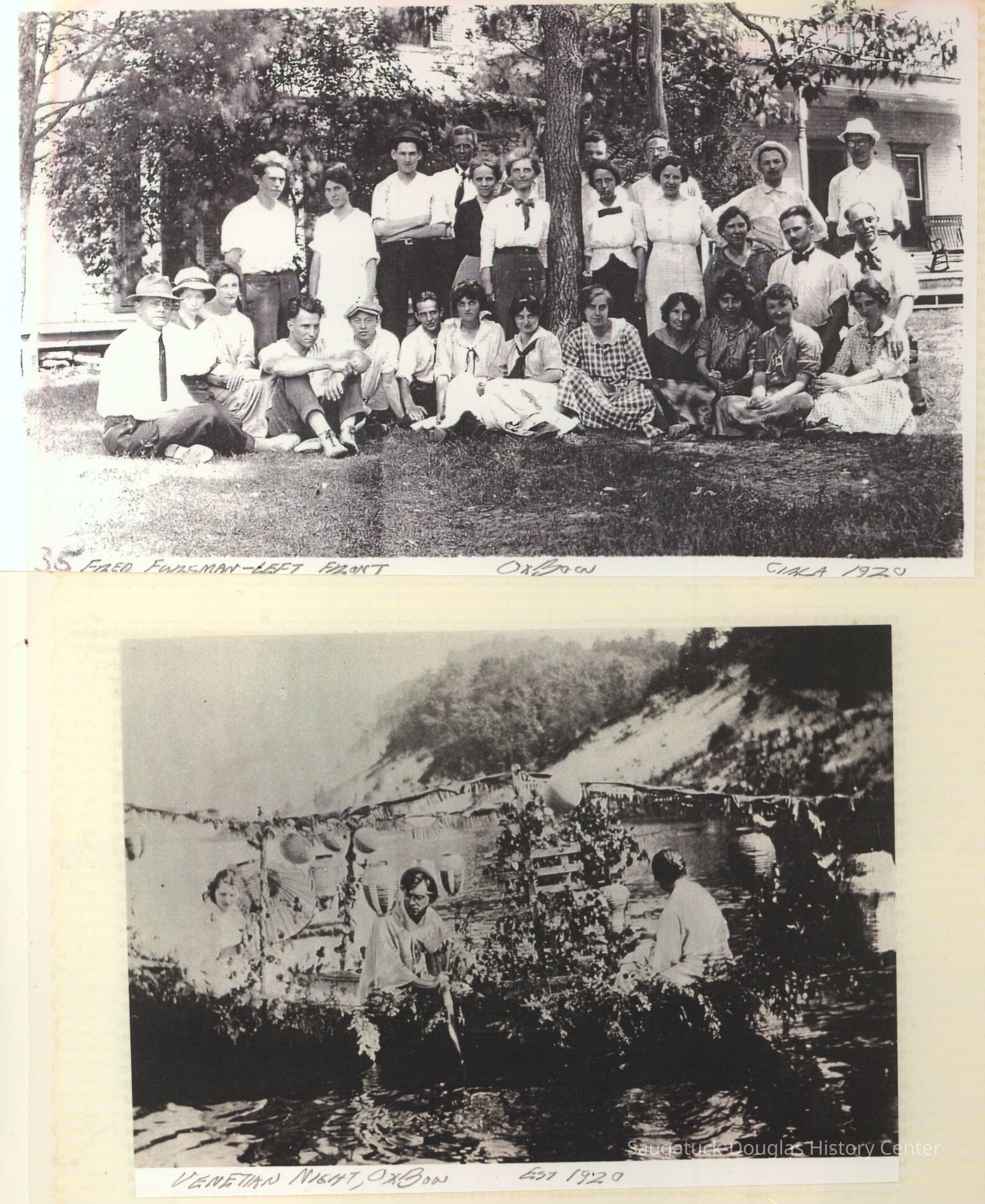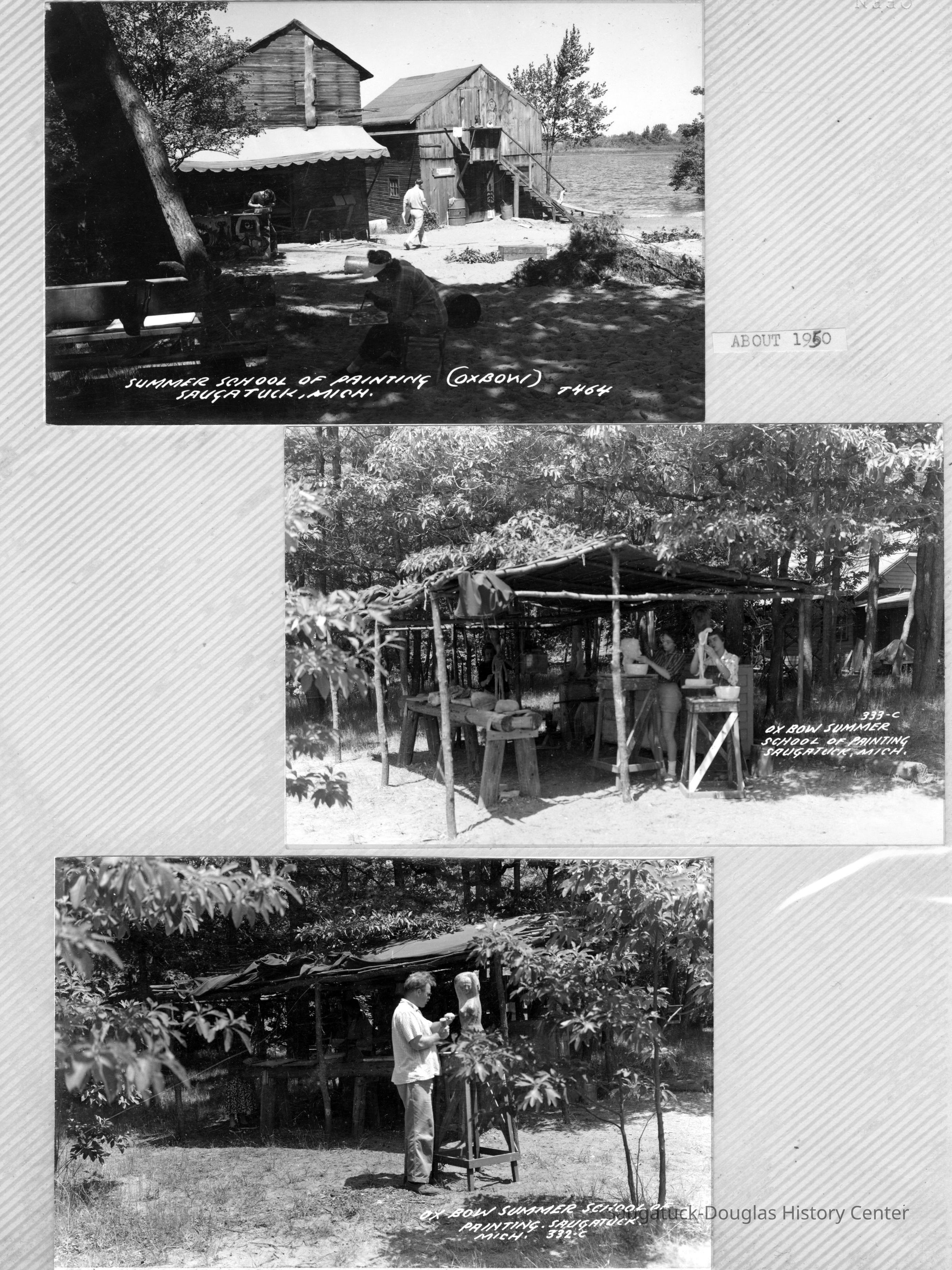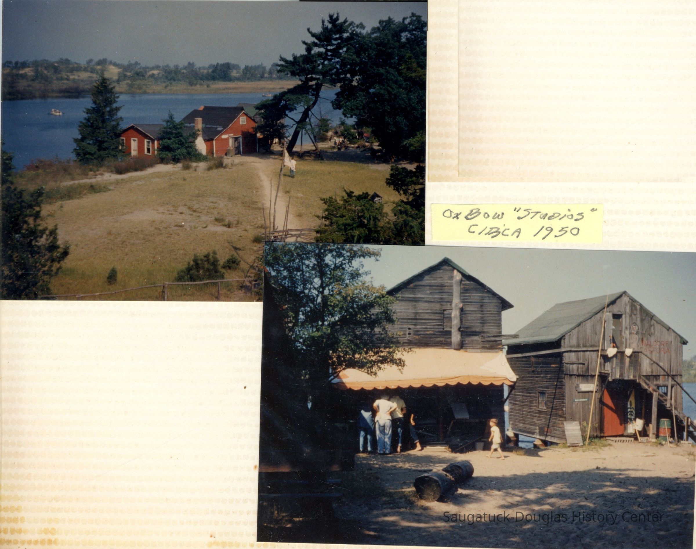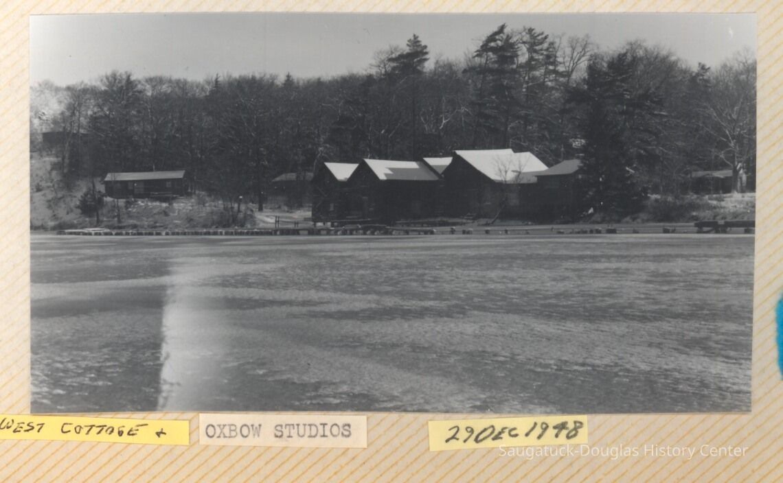 The album includes photos of the Ox-Bow staff and building through the years, as well as costume parties and neighborly fun the Deam family had with their art school neighbors. The Deam family cottage is located on Ox-Bow lagoon in a replica building of the Kalamazoo Lighthouse.