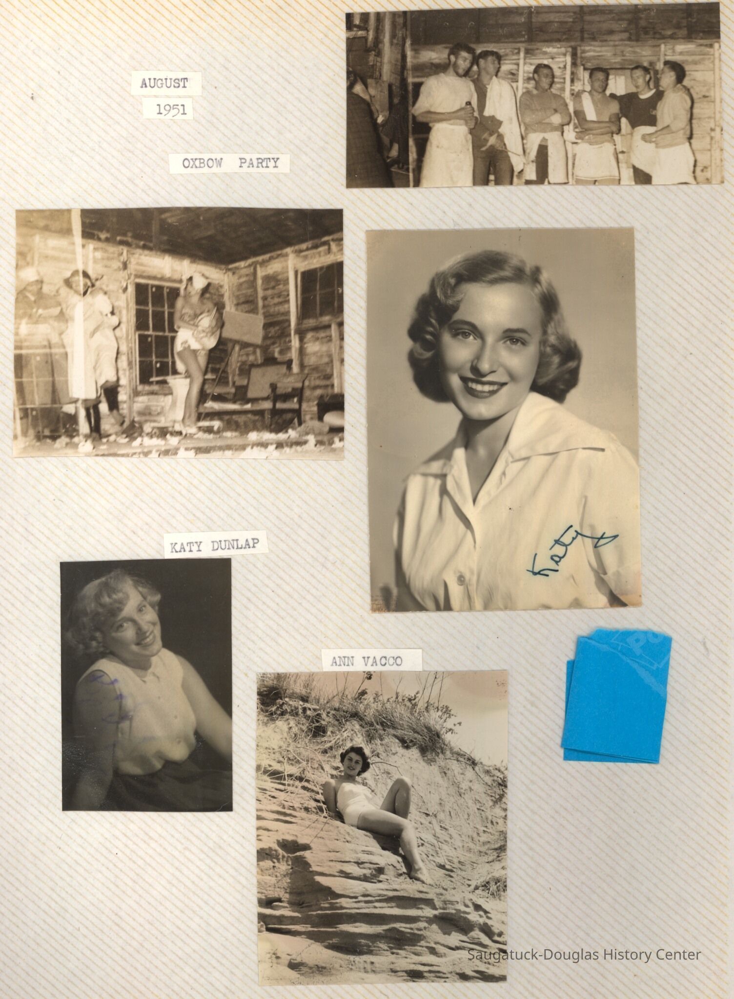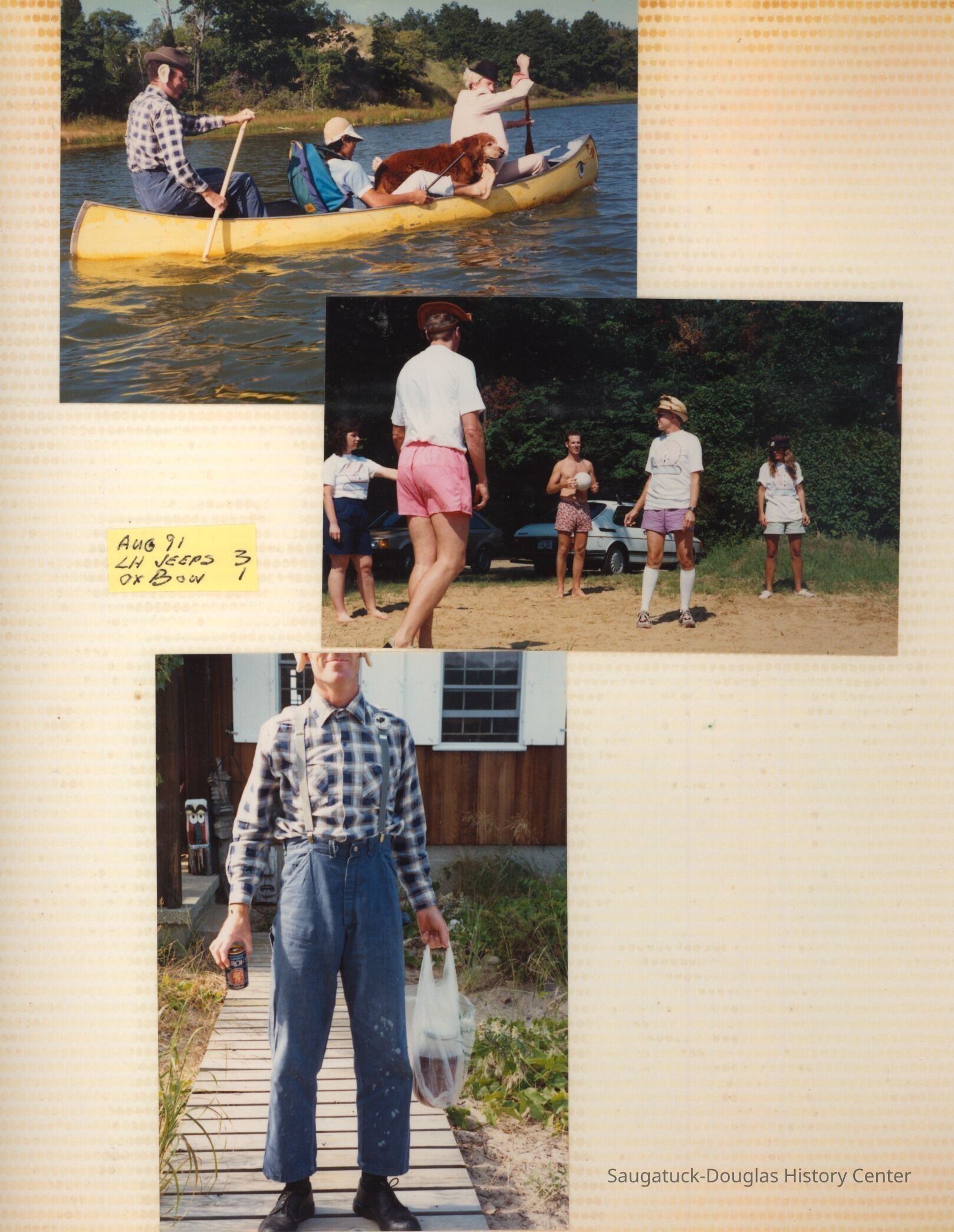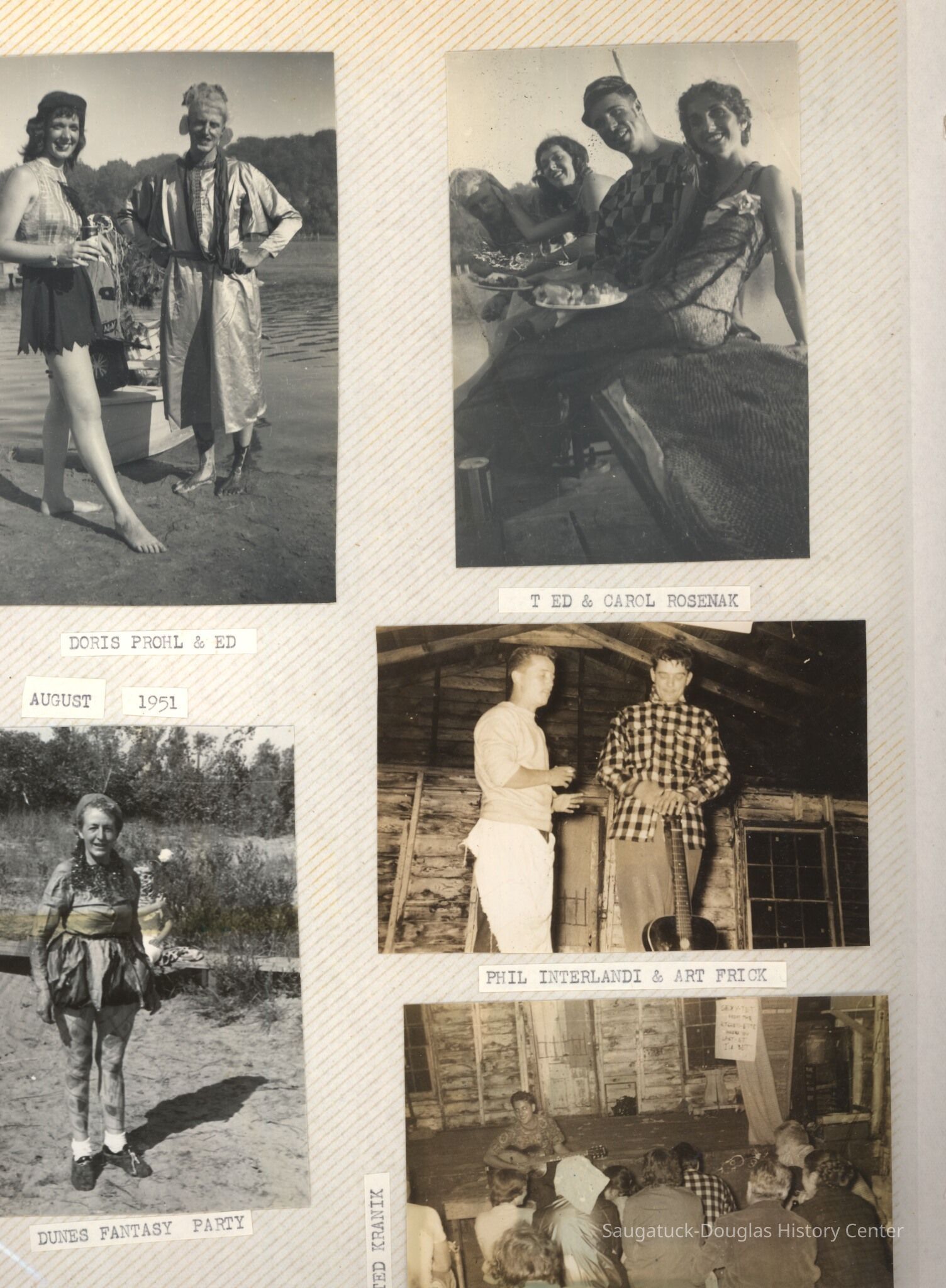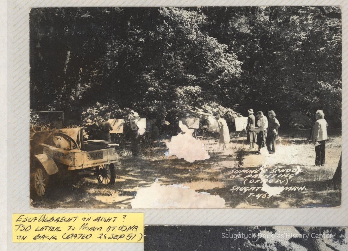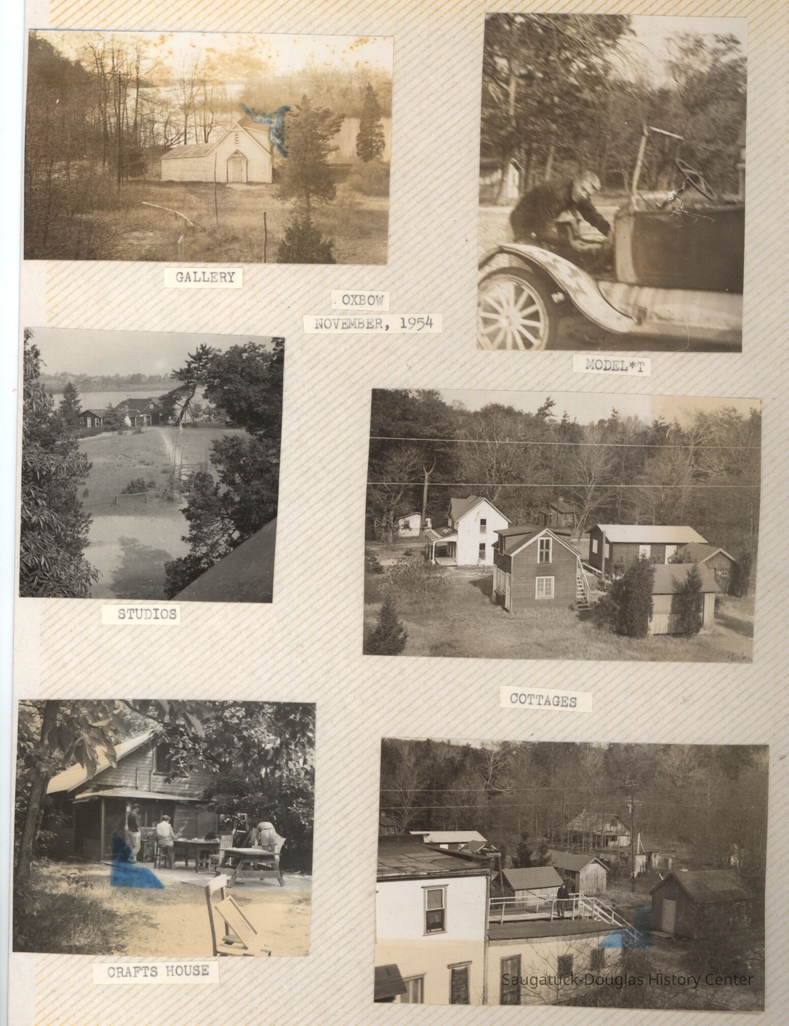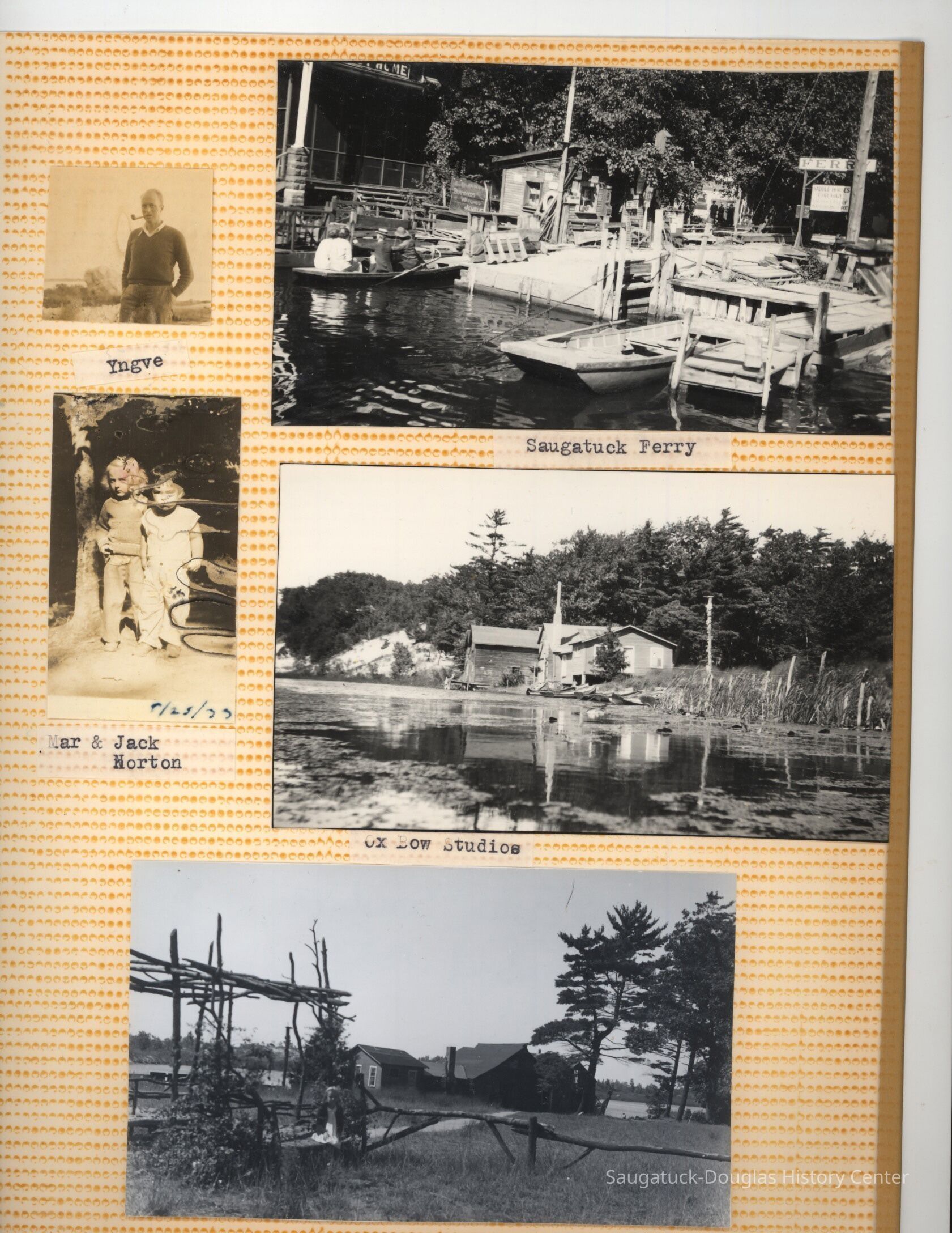 The album includes photos of the Ox-Bow staff and building through the years, as well as costume parties and neighborly fun the Deam family had with their art school neighbors. The Deam family cottage is located on Ox-Bow lagoon in a replica building of the Kalamazoo Lighthouse.