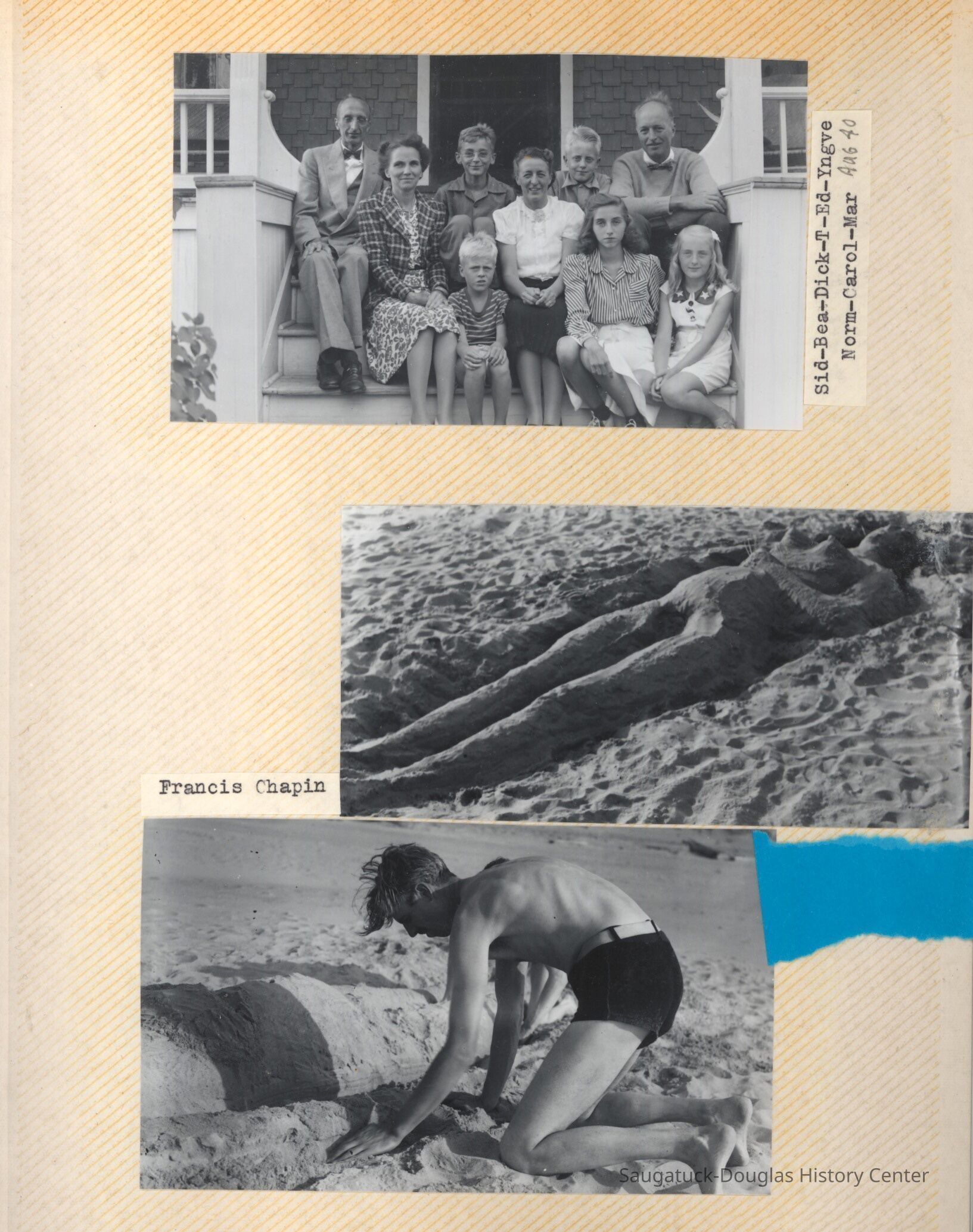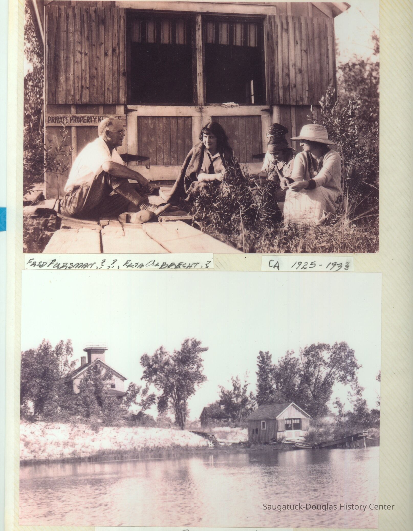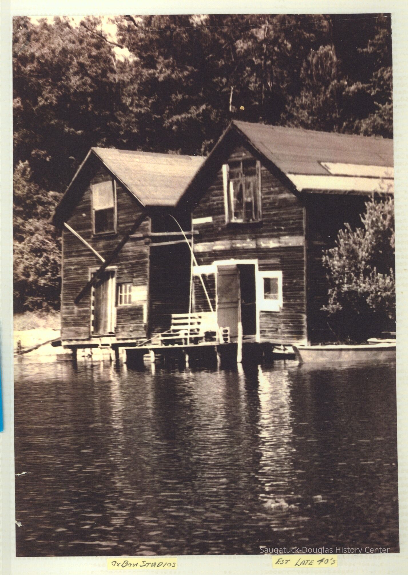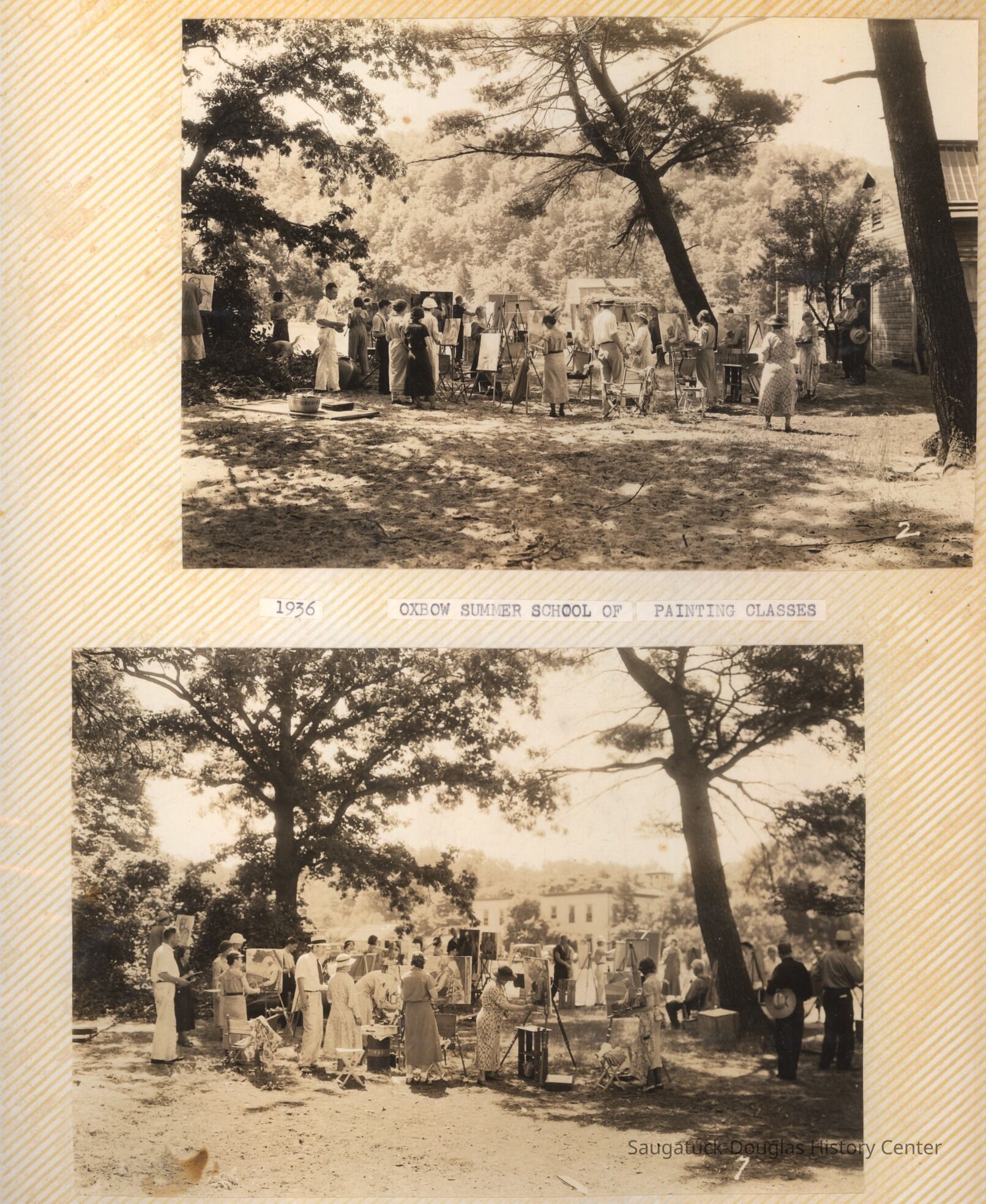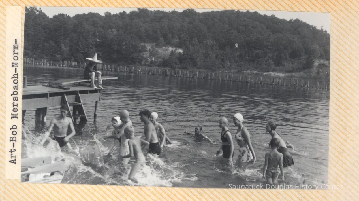 The album includes photos of the Ox-Bow staff and building through the years, as well as costume parties and neighborly fun the Deam family had with their art school neighbors. The Deam family cottage is located on Ox-Bow lagoon in a replica building of the Kalamazoo Lighthouse.