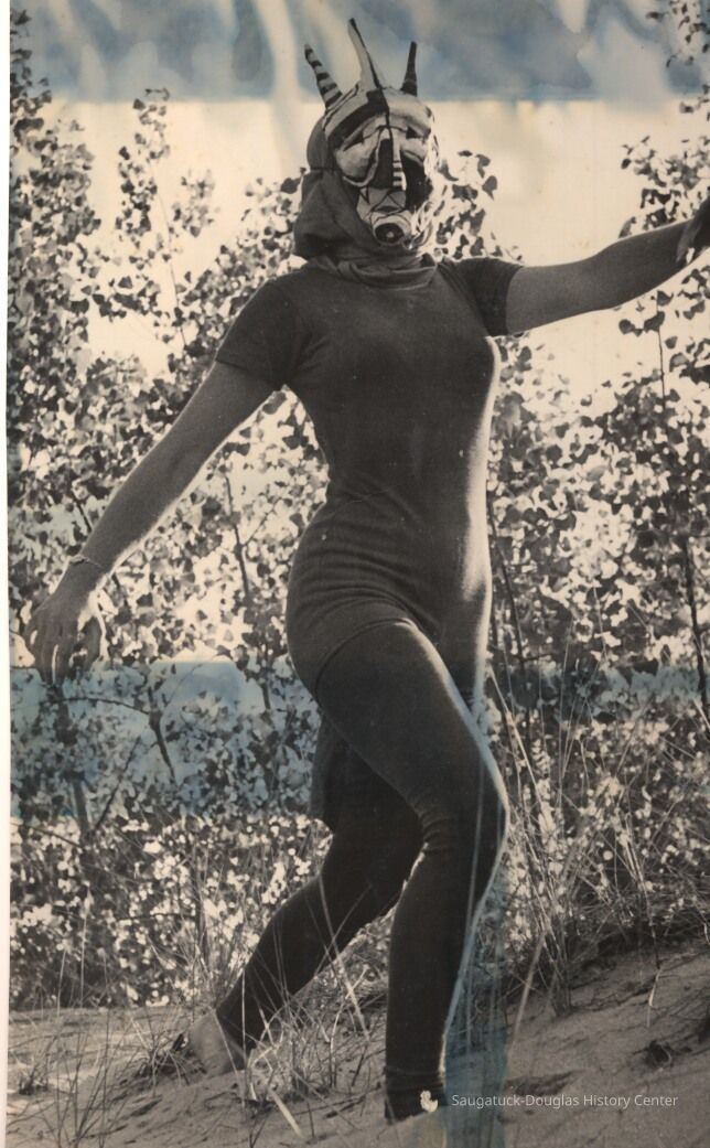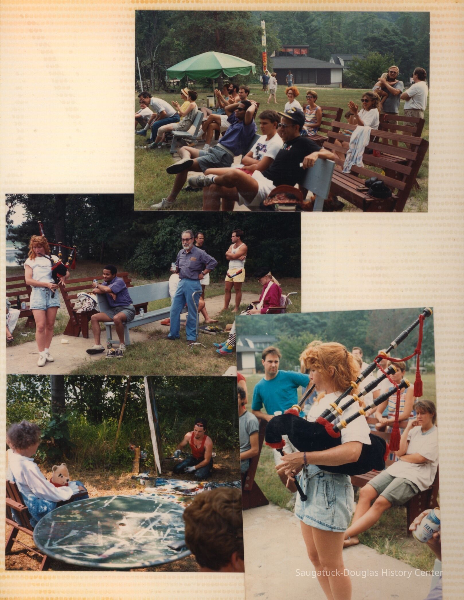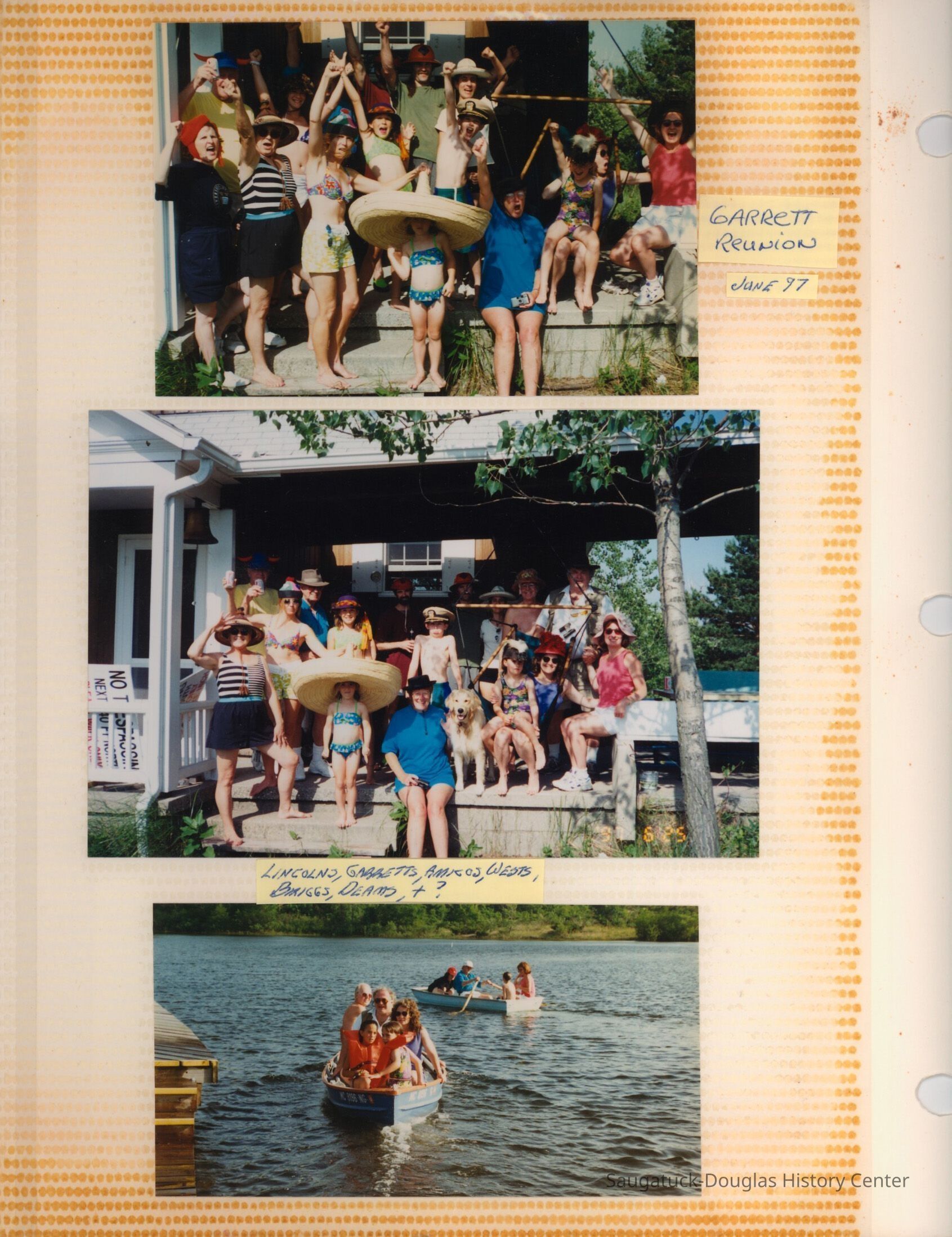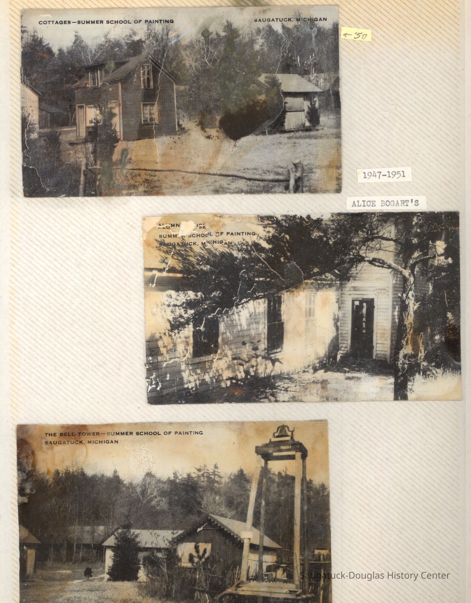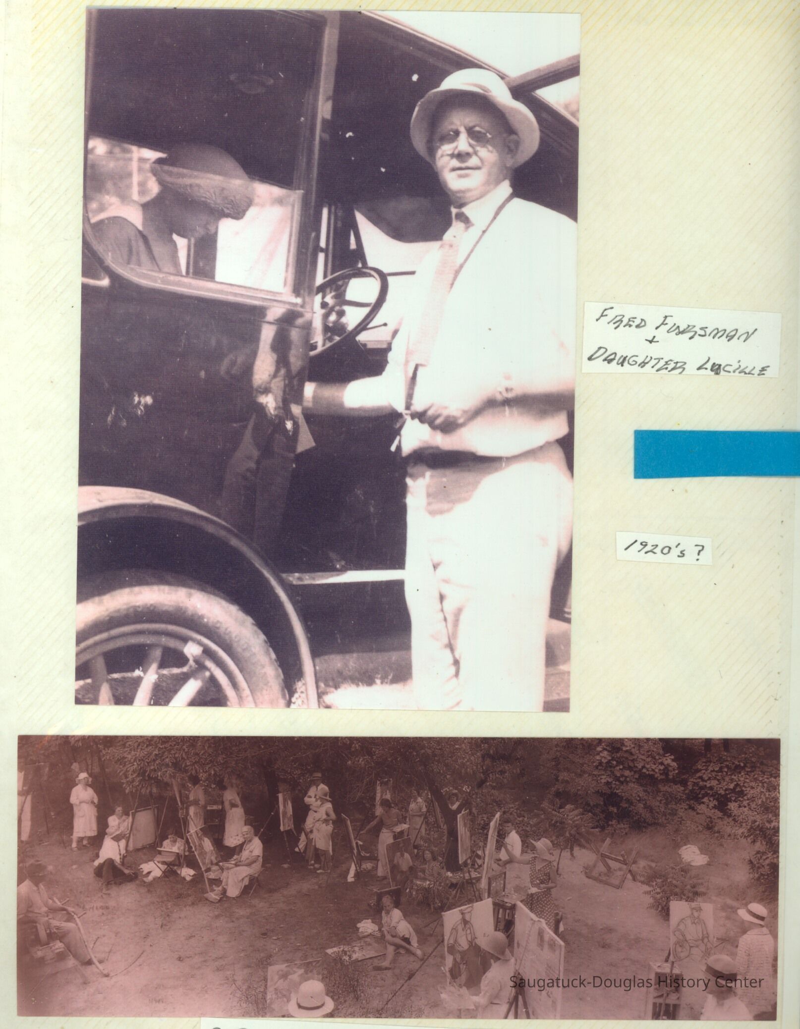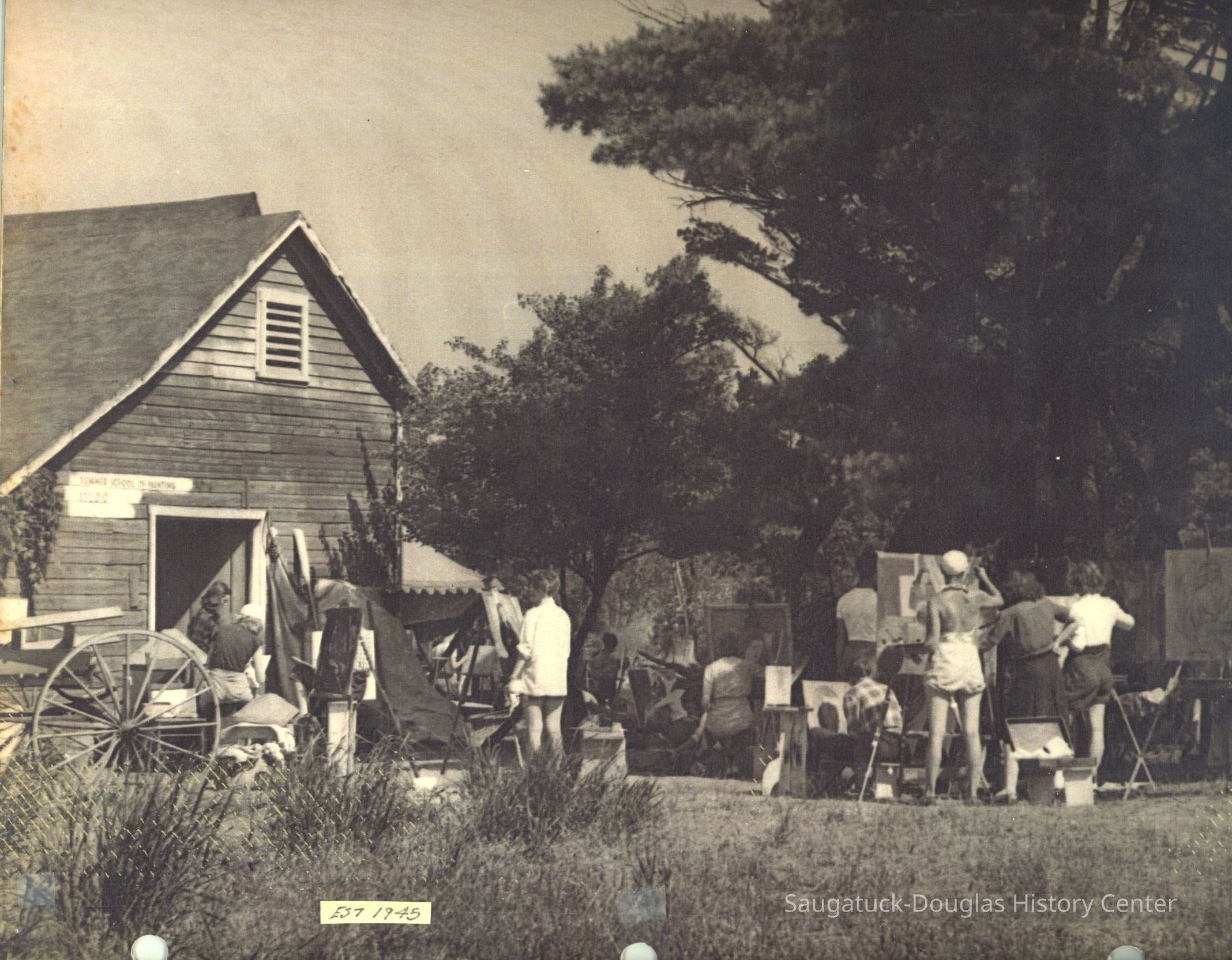 The album includes photos of the Ox-Bow staff and building through the years, as well as costume parties and neighborly fun the Deam family had with their art school neighbors. The Deam family cottage is located on Ox-Bow lagoon in a replica building of the Kalamazoo Lighthouse.