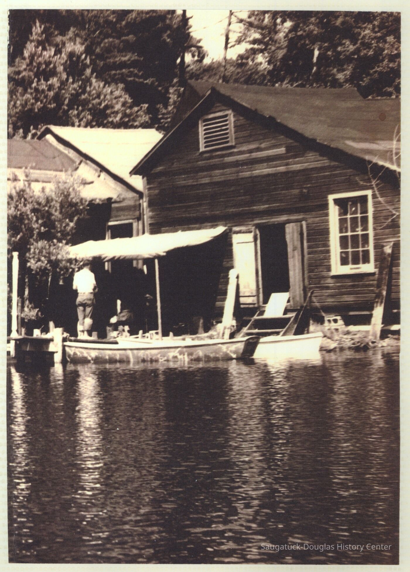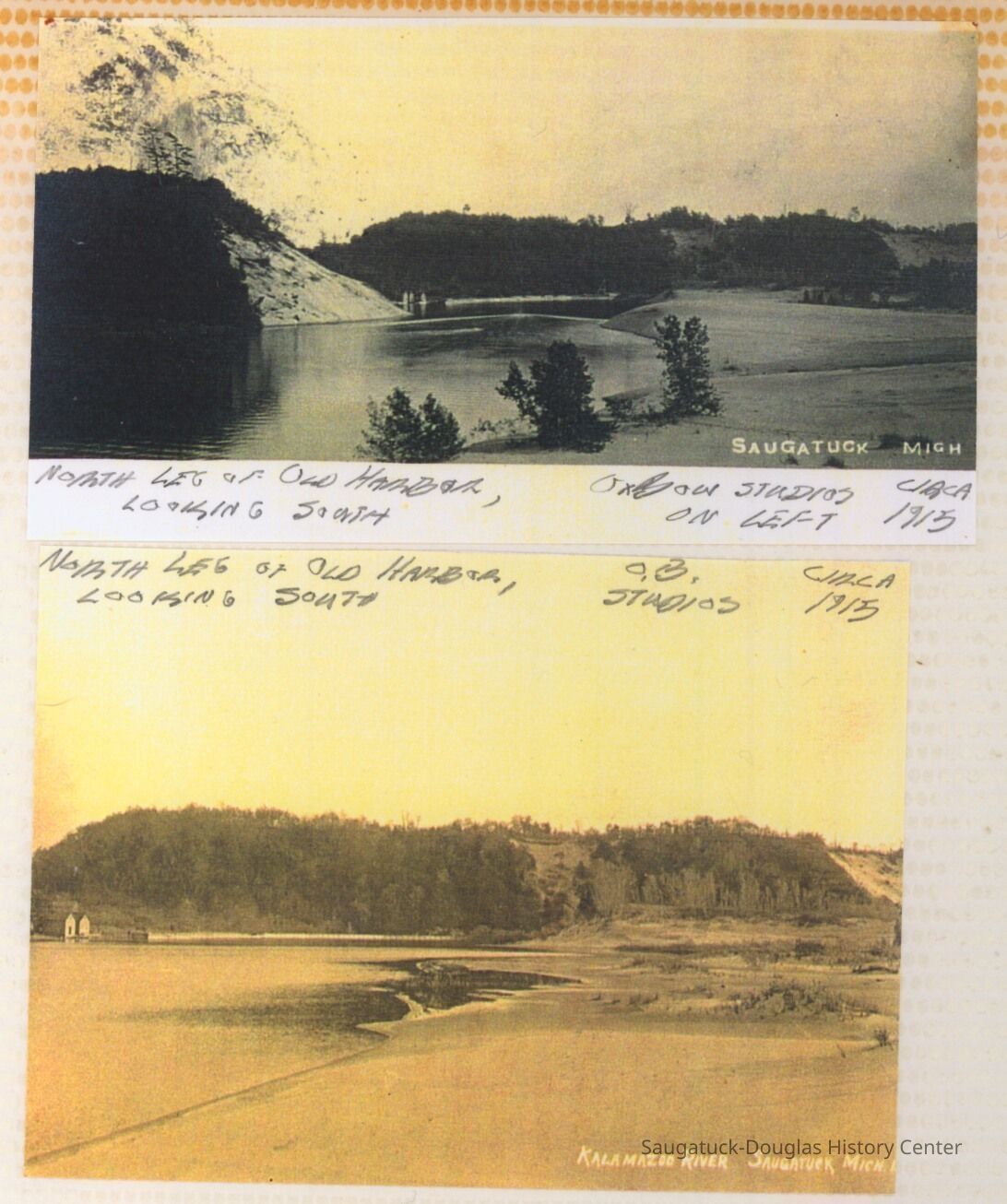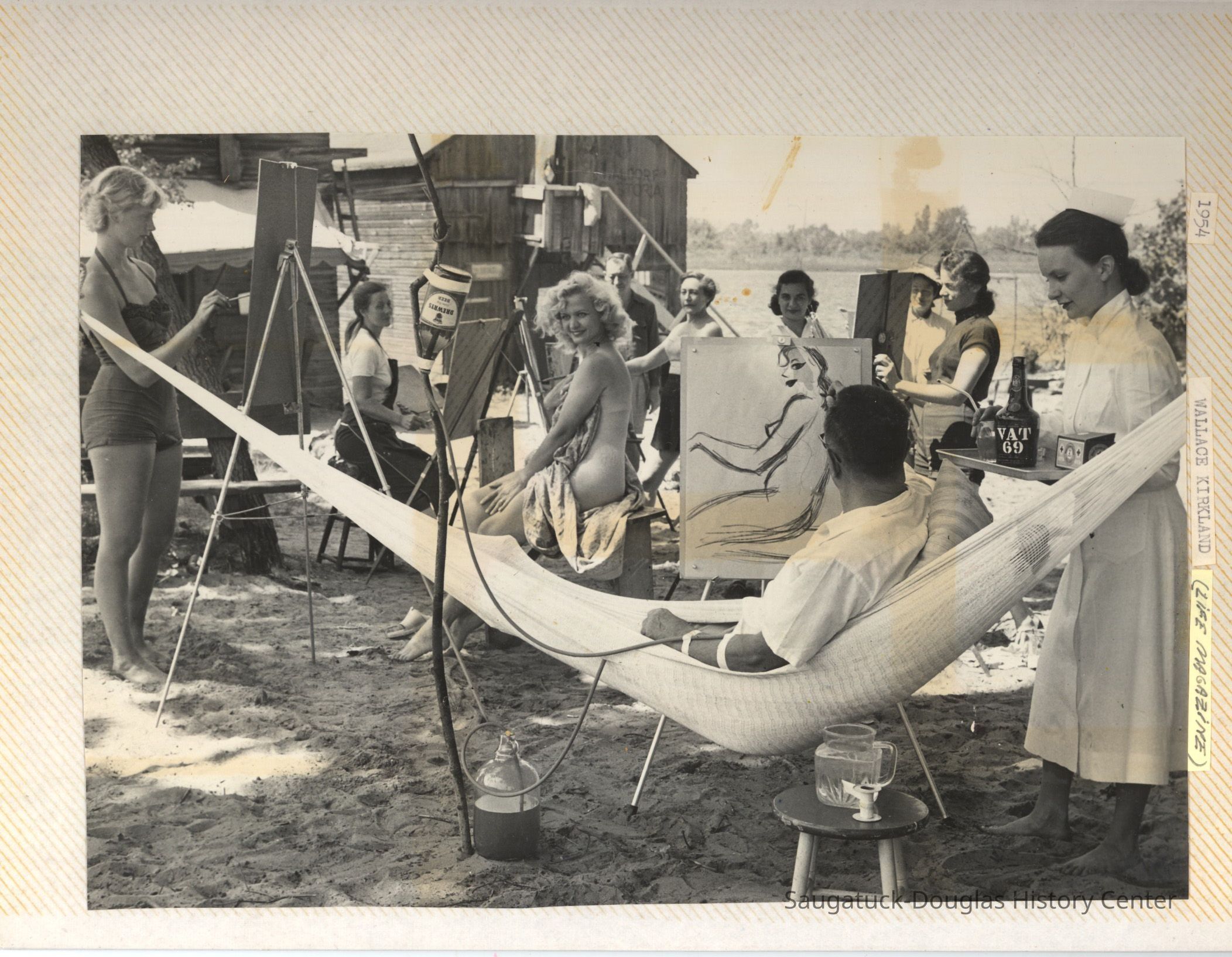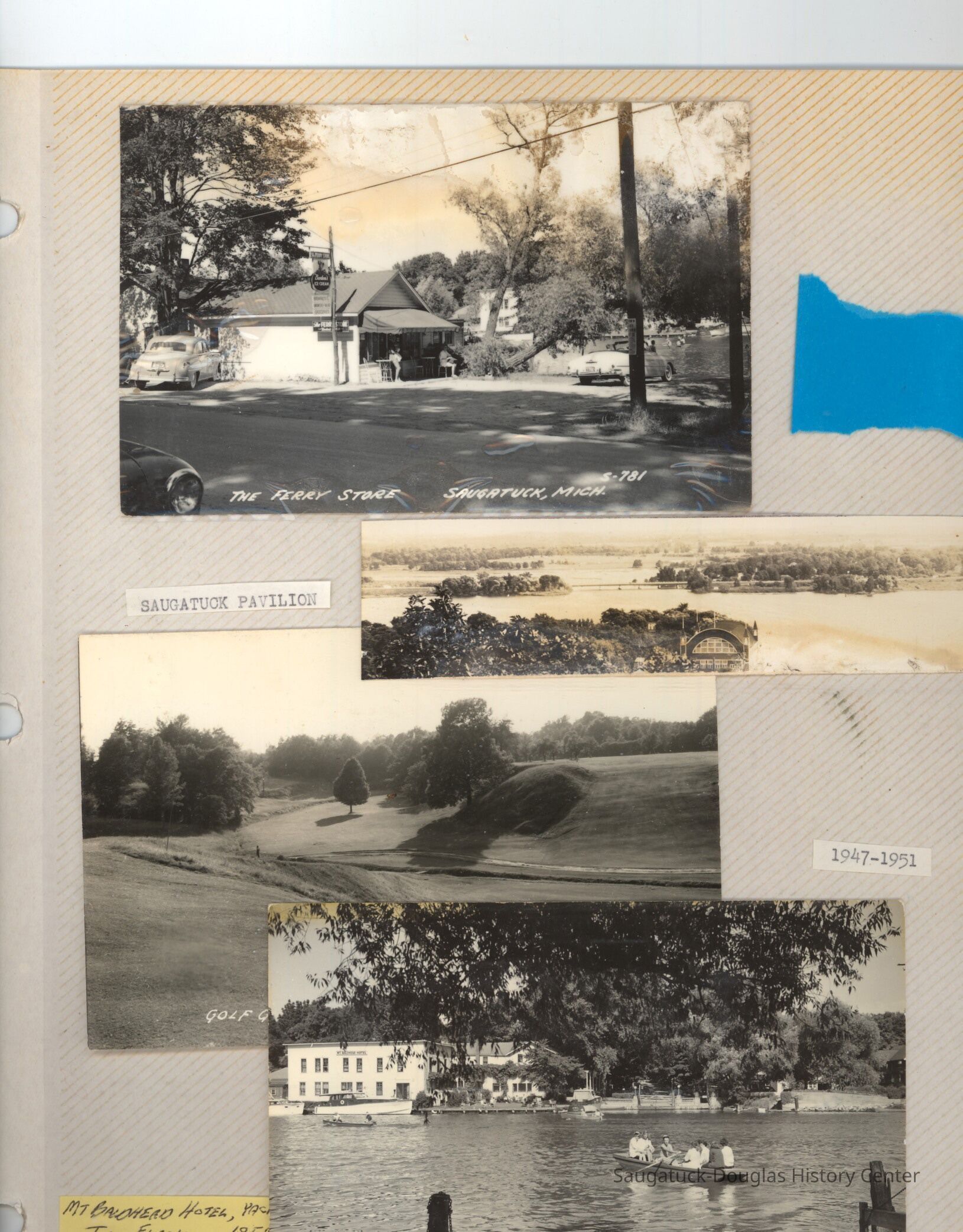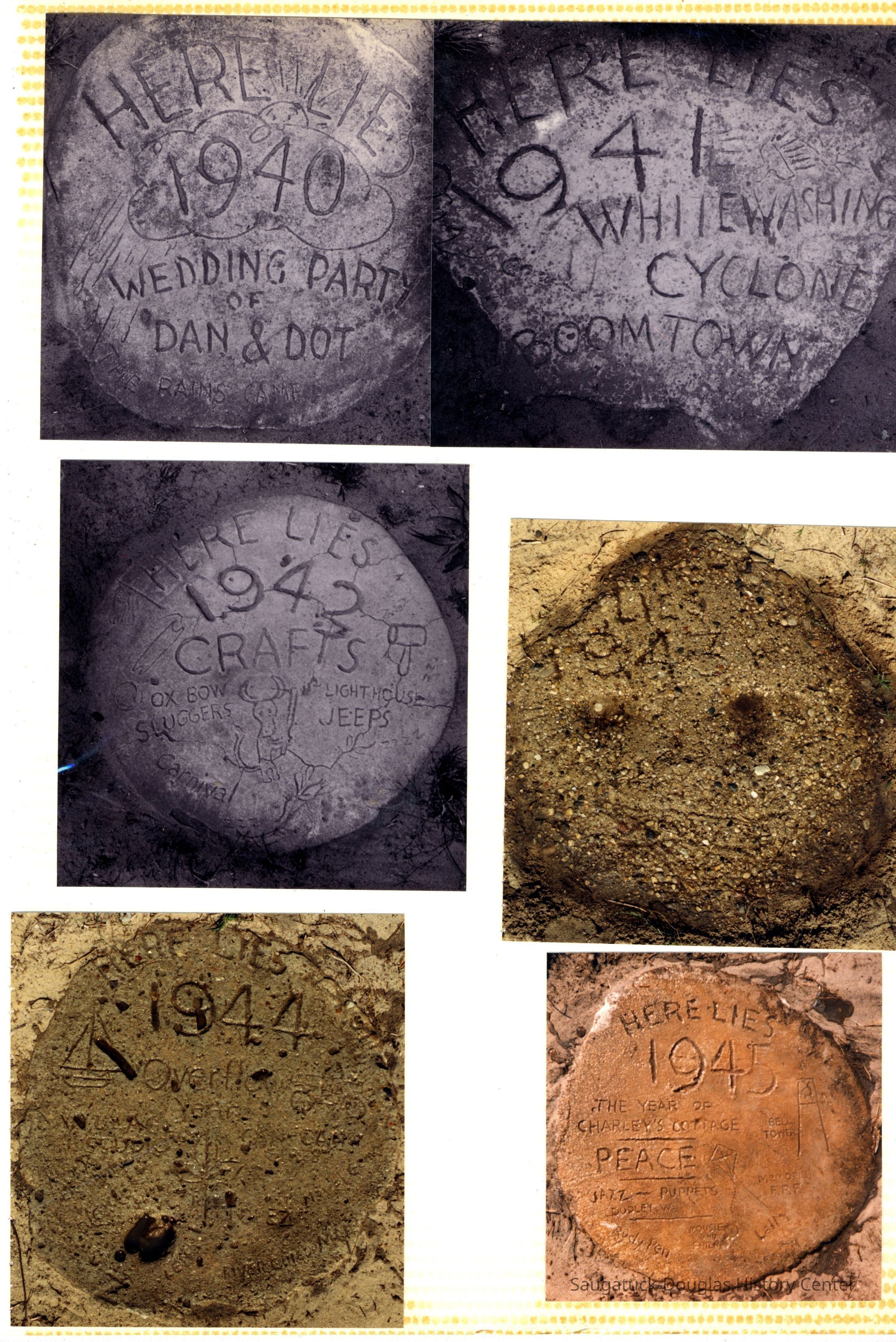 The album includes photos of the Ox-Bow staff and building through the years, as well as costume parties and neighborly fun the Deam family had with their art school neighbors. The Deam family cottage is located on Ox-Bow lagoon in a replica building of the Kalamazoo Lighthouse.