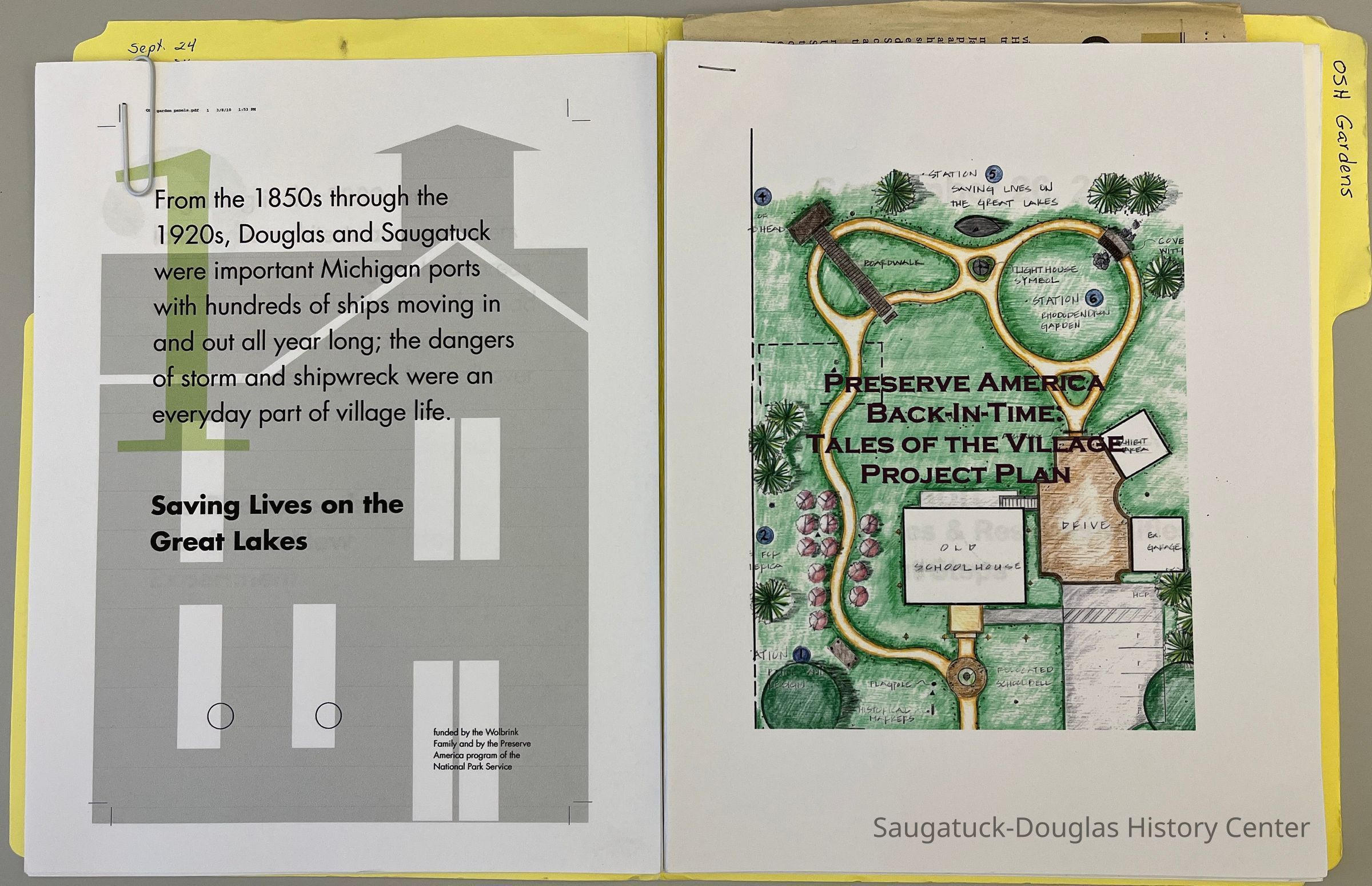 Documents about the development of the gardens surrounding the History Center in Douglas. Information about the boathouse is in box 182 - The Old School House Project.