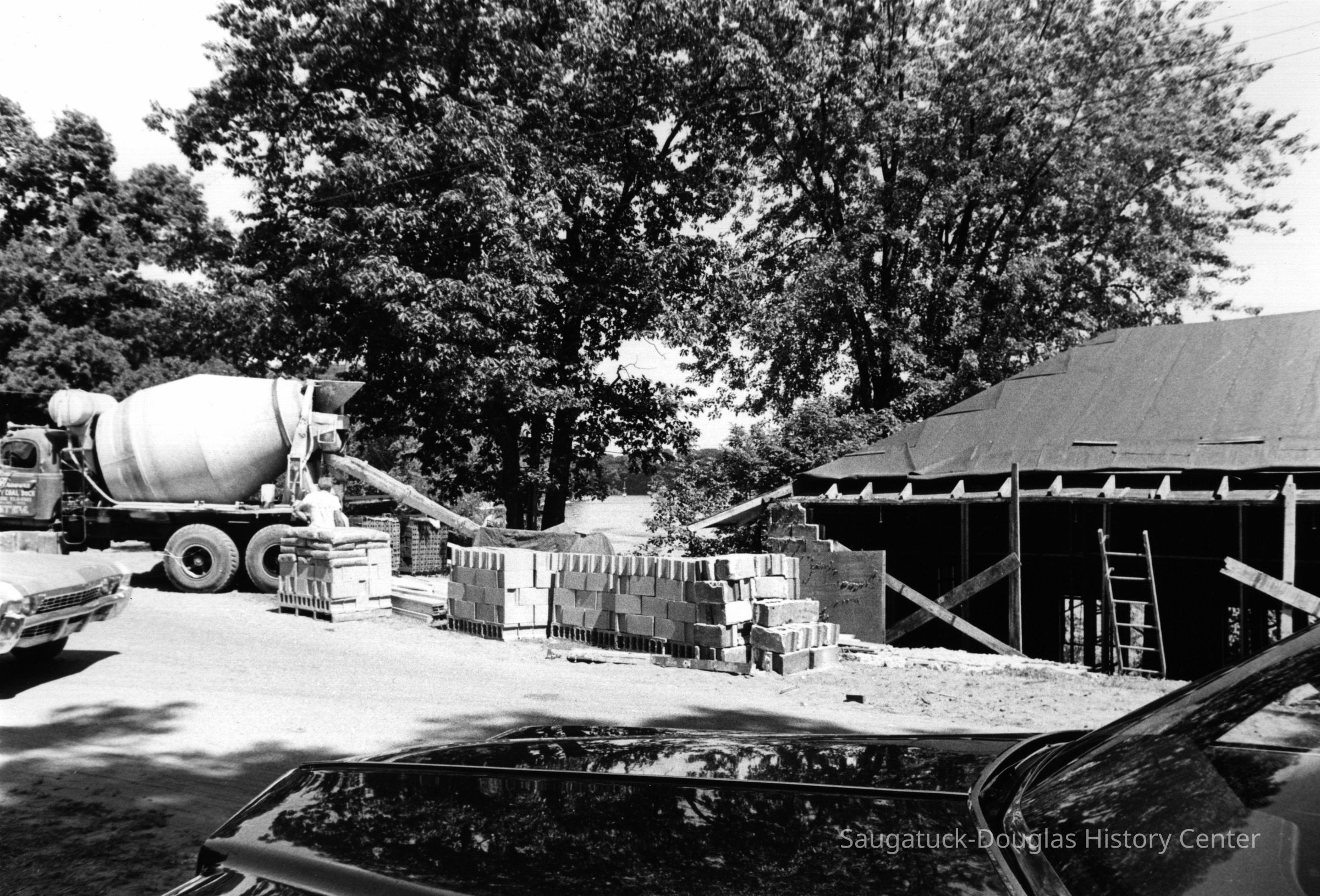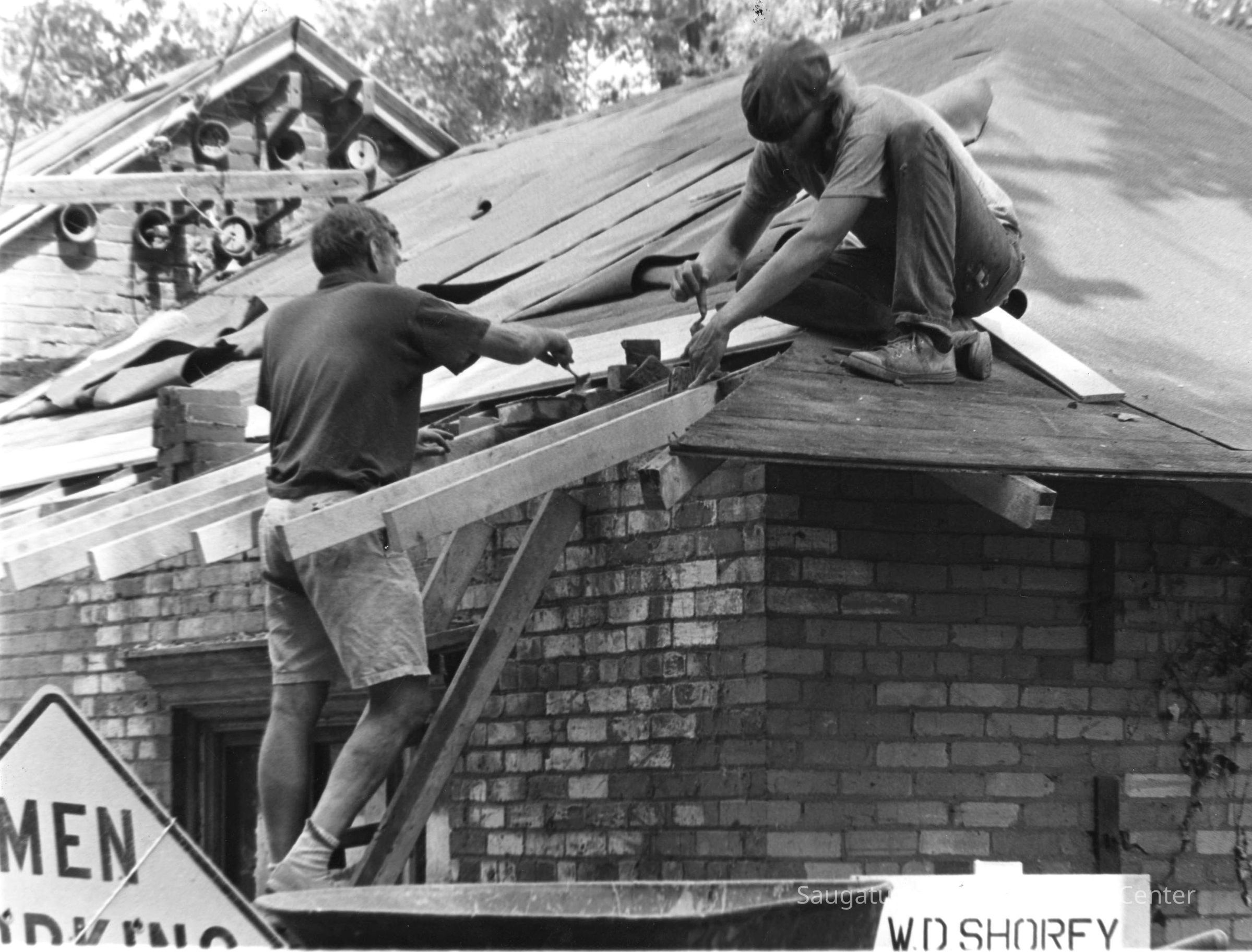 Photos of Dr. William Shorey and family working to transform the former Saugatuck Pump House into a family cottage.