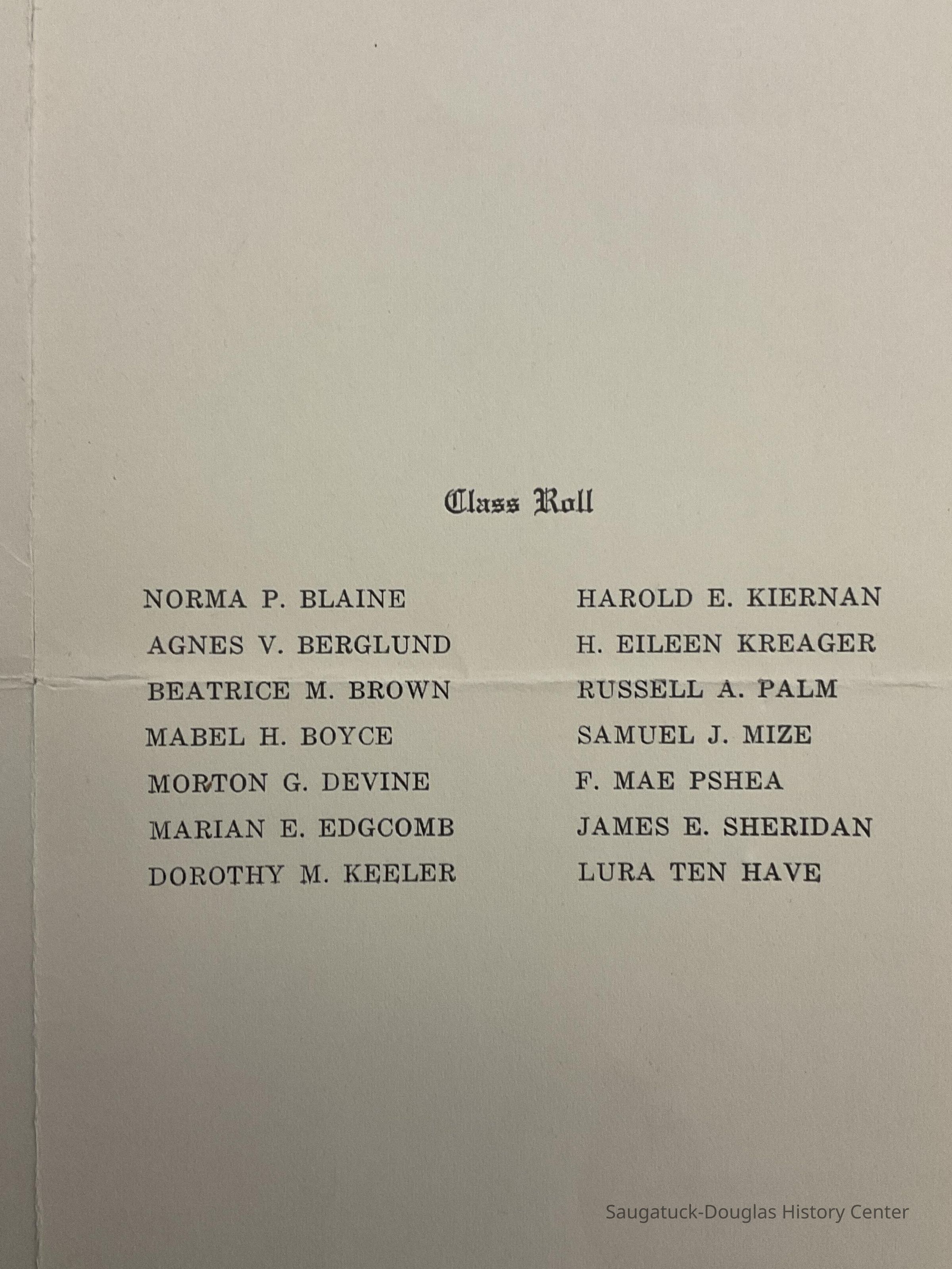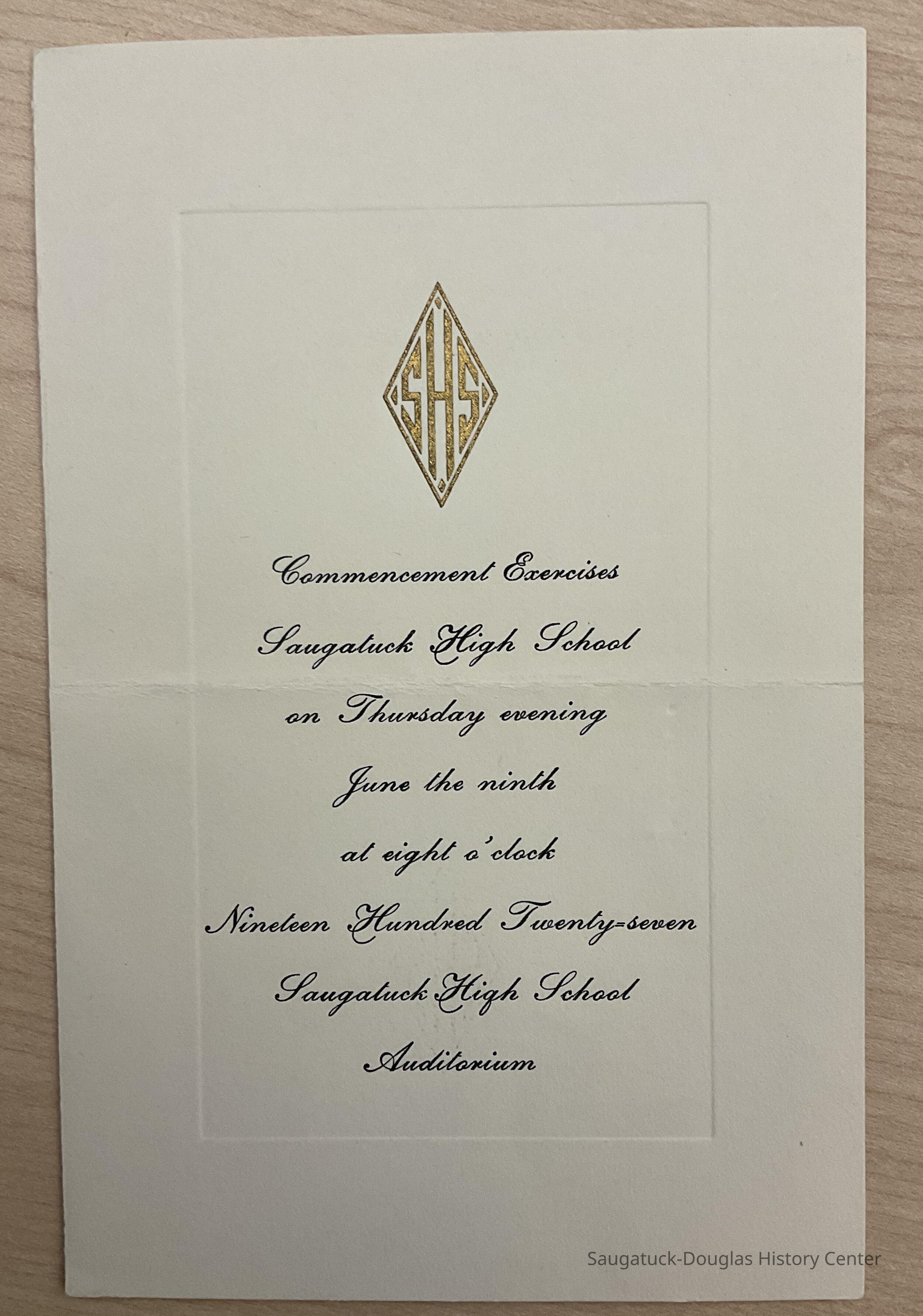 Saugatuck High School 1927 Commencement Invitation