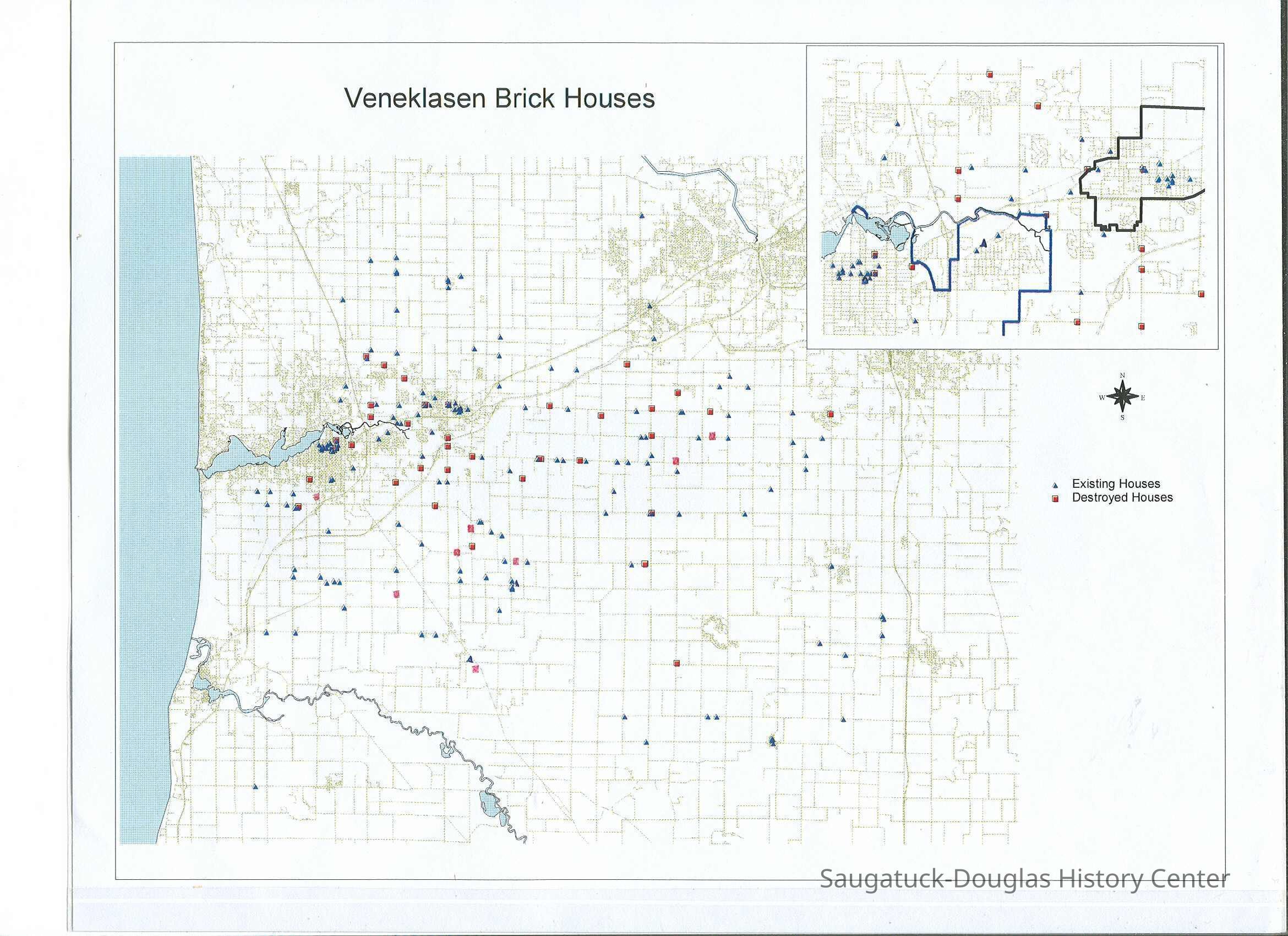 Michael Douma gave a Tuesday til Noon lecture at the SDHS Pumphouse Museum the summer of 2006. The images [below] were used in the presentation and are examples of Veneklasen brick. Michael took many of the pictures and indicated that he has no objection to the SDHS using of them for historical purposes. Michael has written a book on the subject and is working on his Ph.D. in history. The book was done in conjunction with the Zeeland Historical Society -- Jack Sheridan 11/5/06