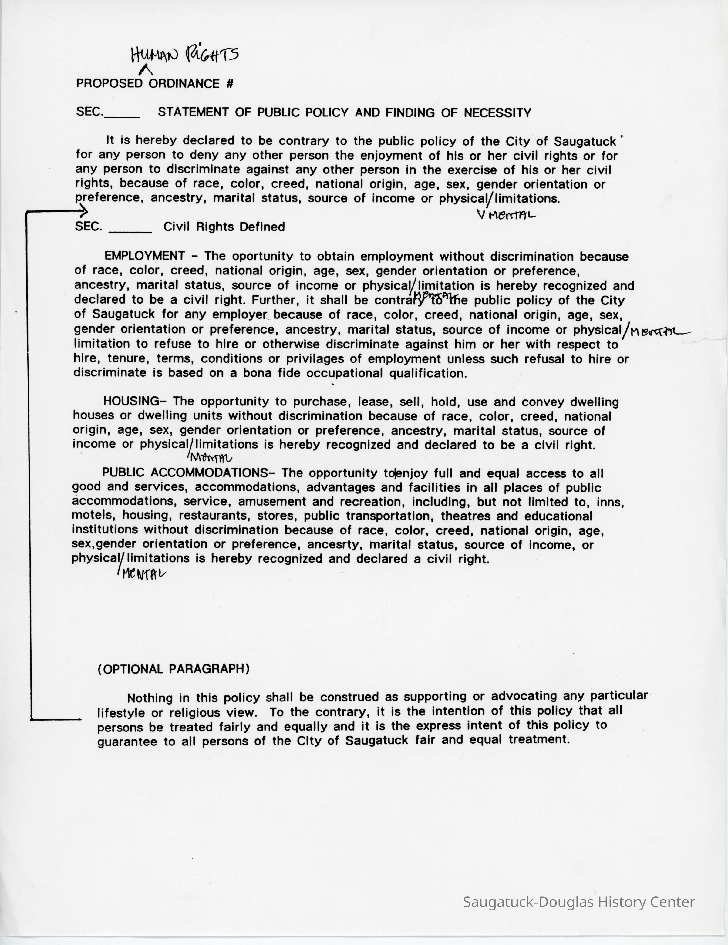 3. Human Rights Ordinance Proposal