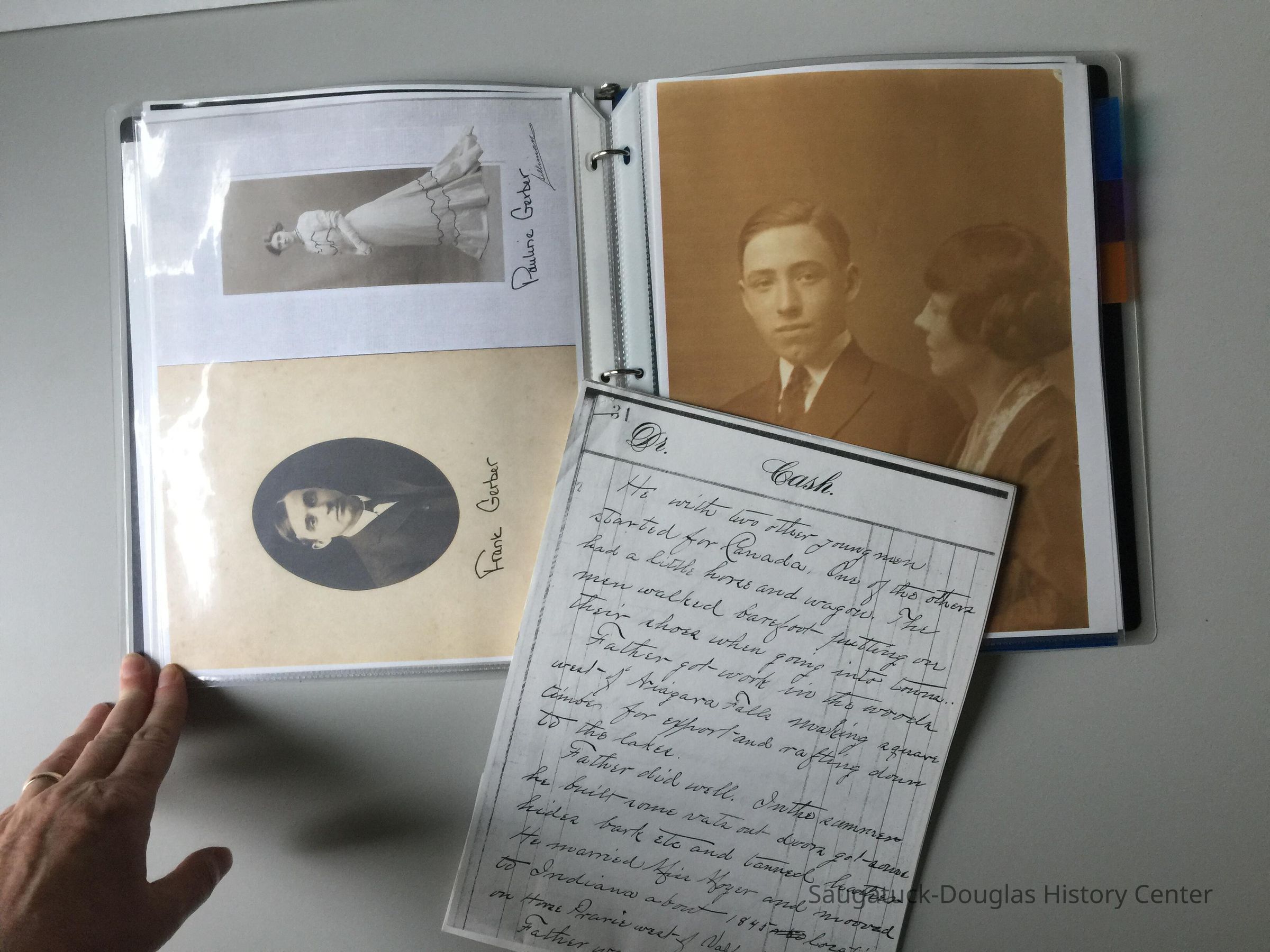 A binder with generational pedigree charts for Daniel Frank Gerber and Dorothy Marion Scott.