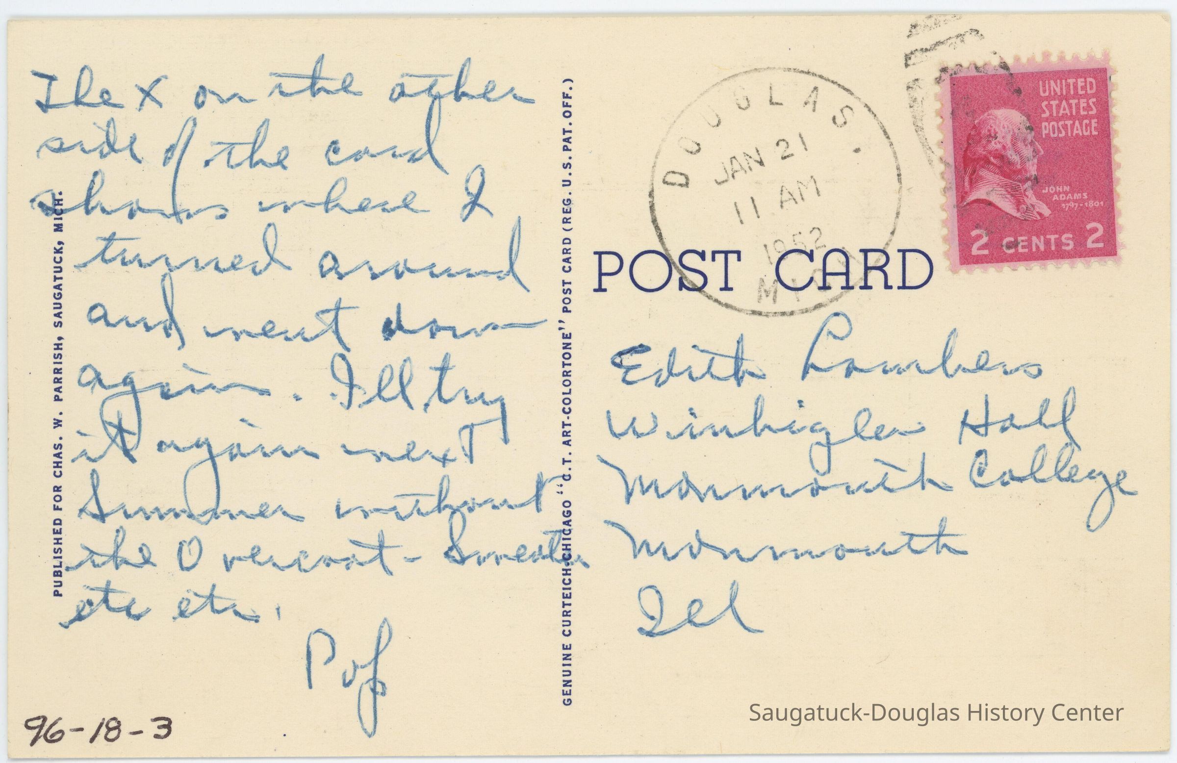 The x on the other side of the card shows where I turned around and went down again. I'll try it again next Summer without the [illegible] etc etc. Pof