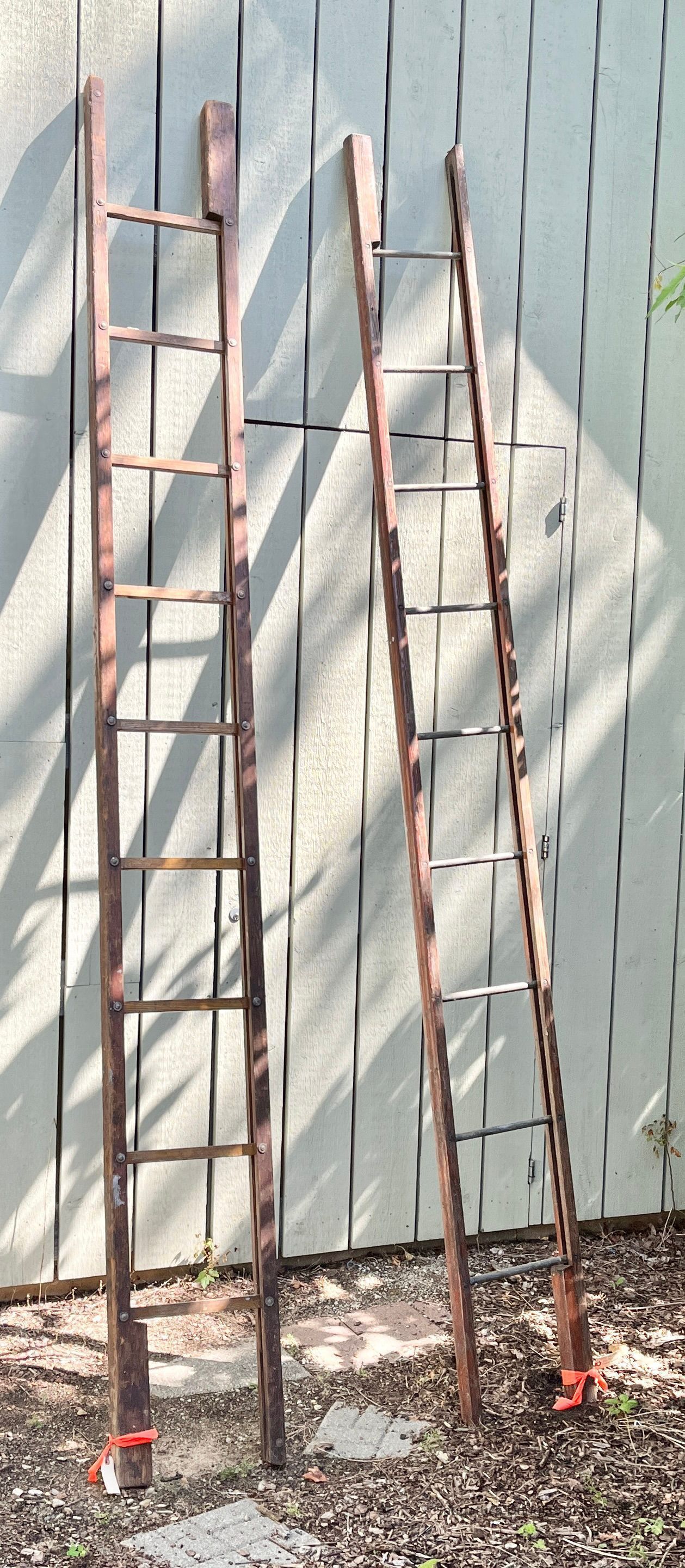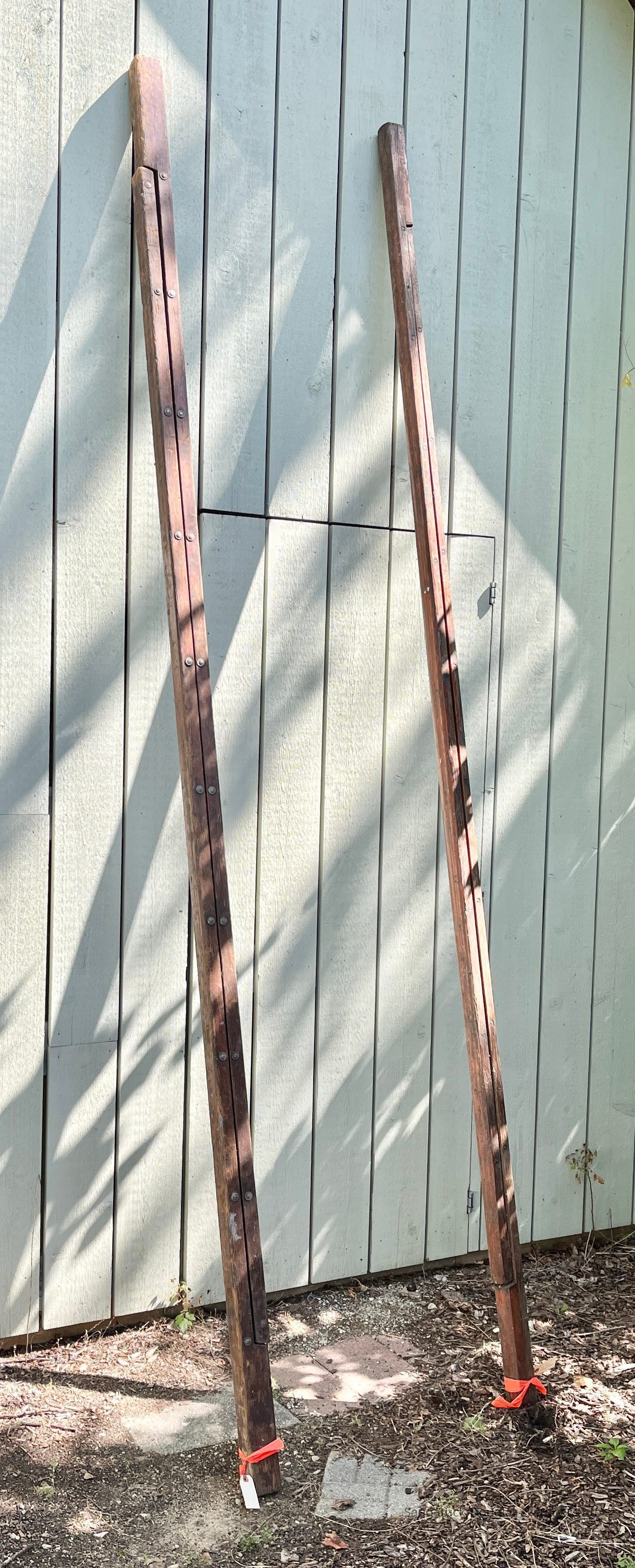 Two, 11-foot wooden ladders that can be collapsed or folded down to form a 3 inch x 3 inch x11 foot beam.