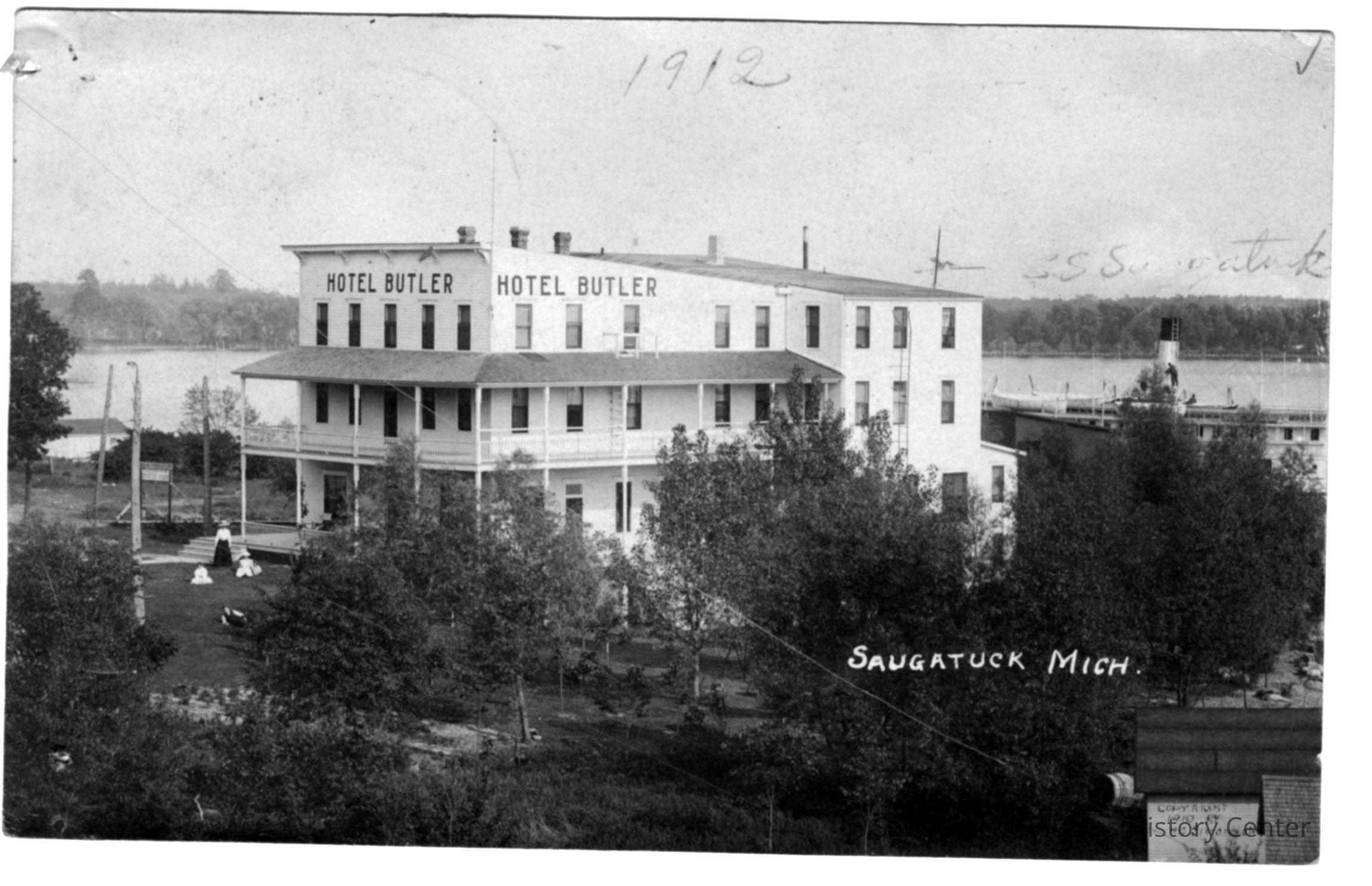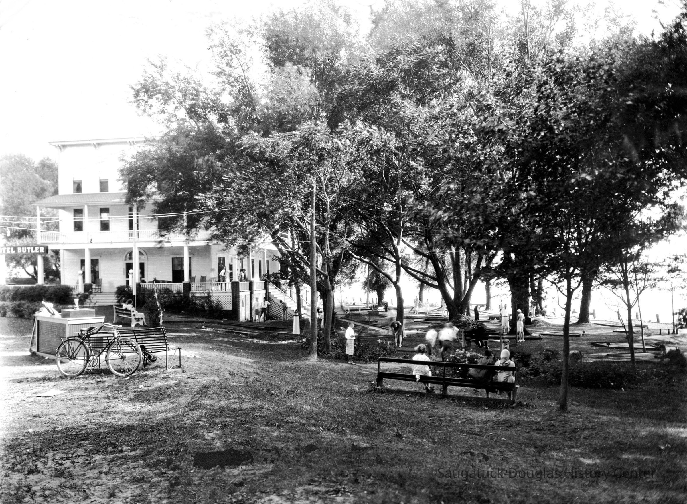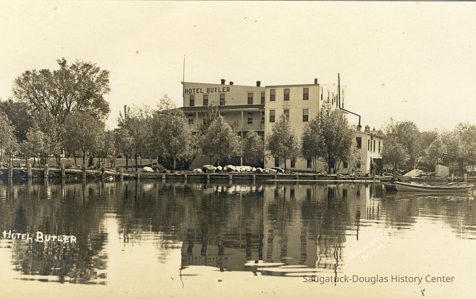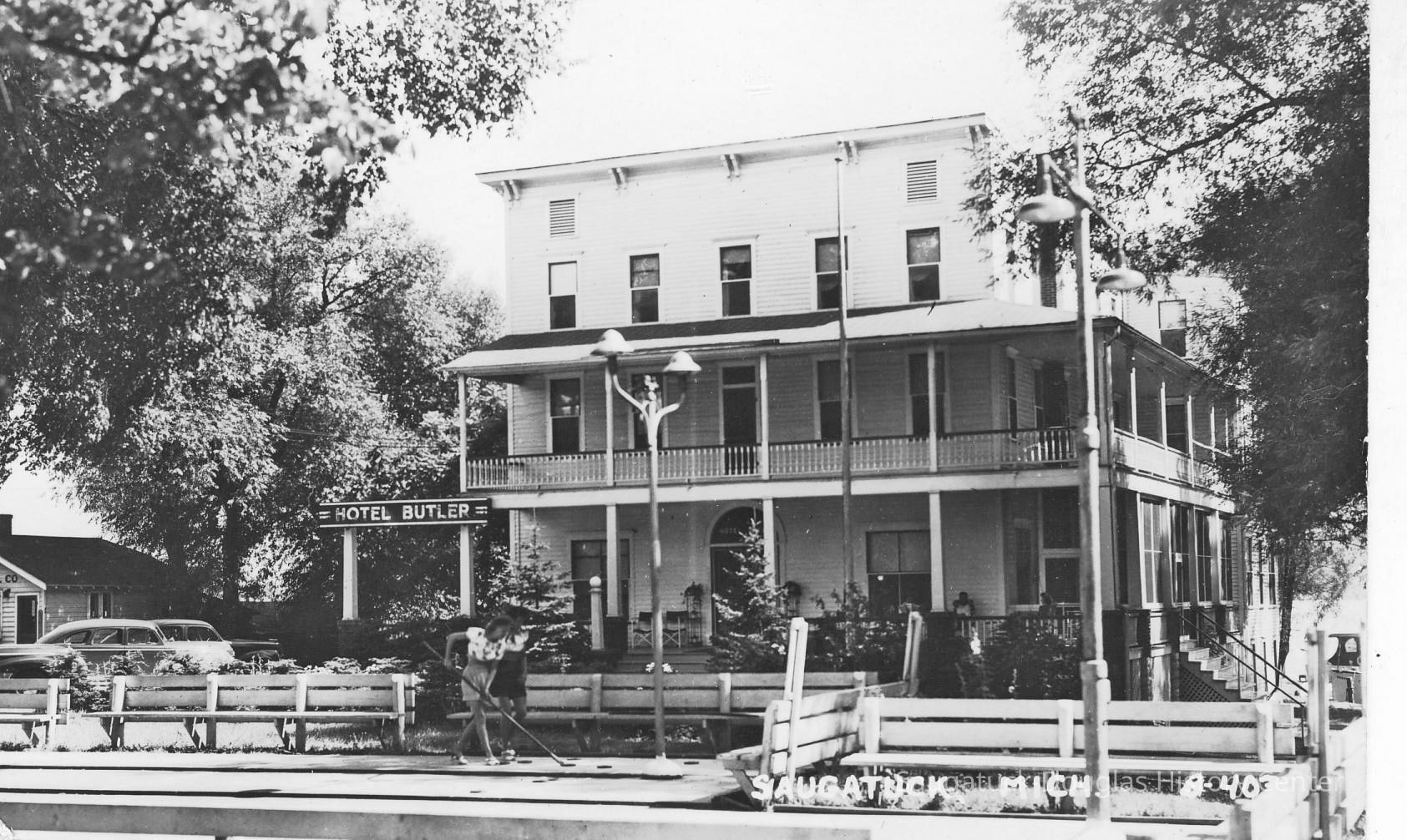Digital images of the Hotel Butler before the upper floors were removed in the early 1970s and the site became the Butler Restaurant. Also includes views of boardwalk/docks on Lake Kalamazoo, the Interurban rail loop and the shuffleboard courts at Morrison/Cook Park.