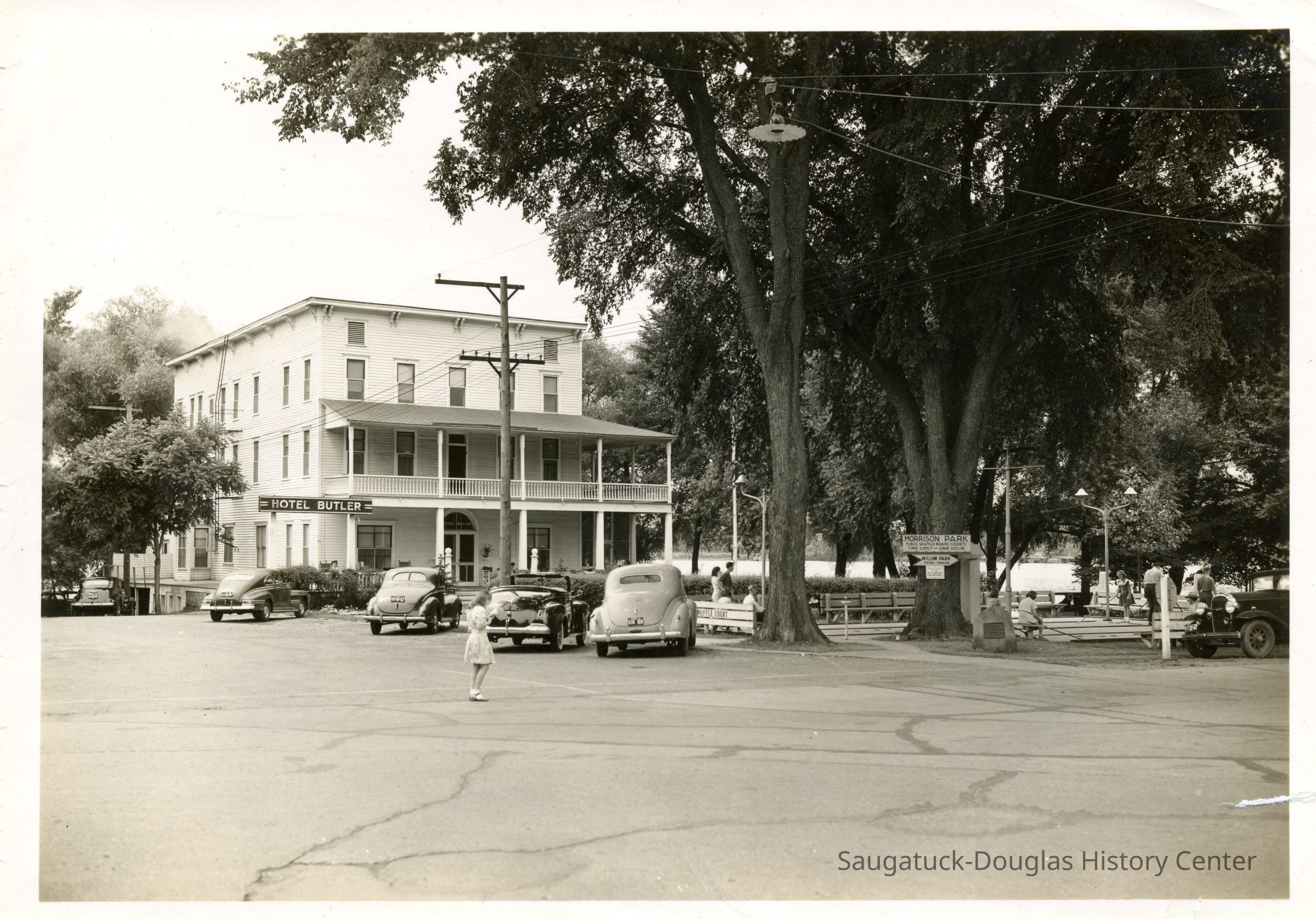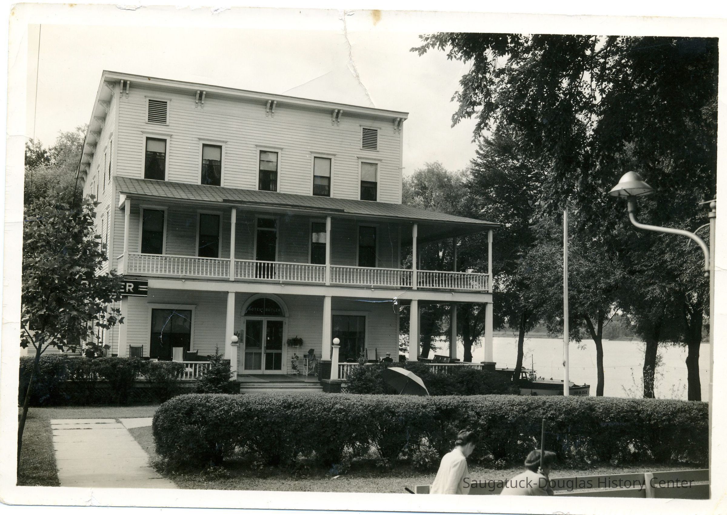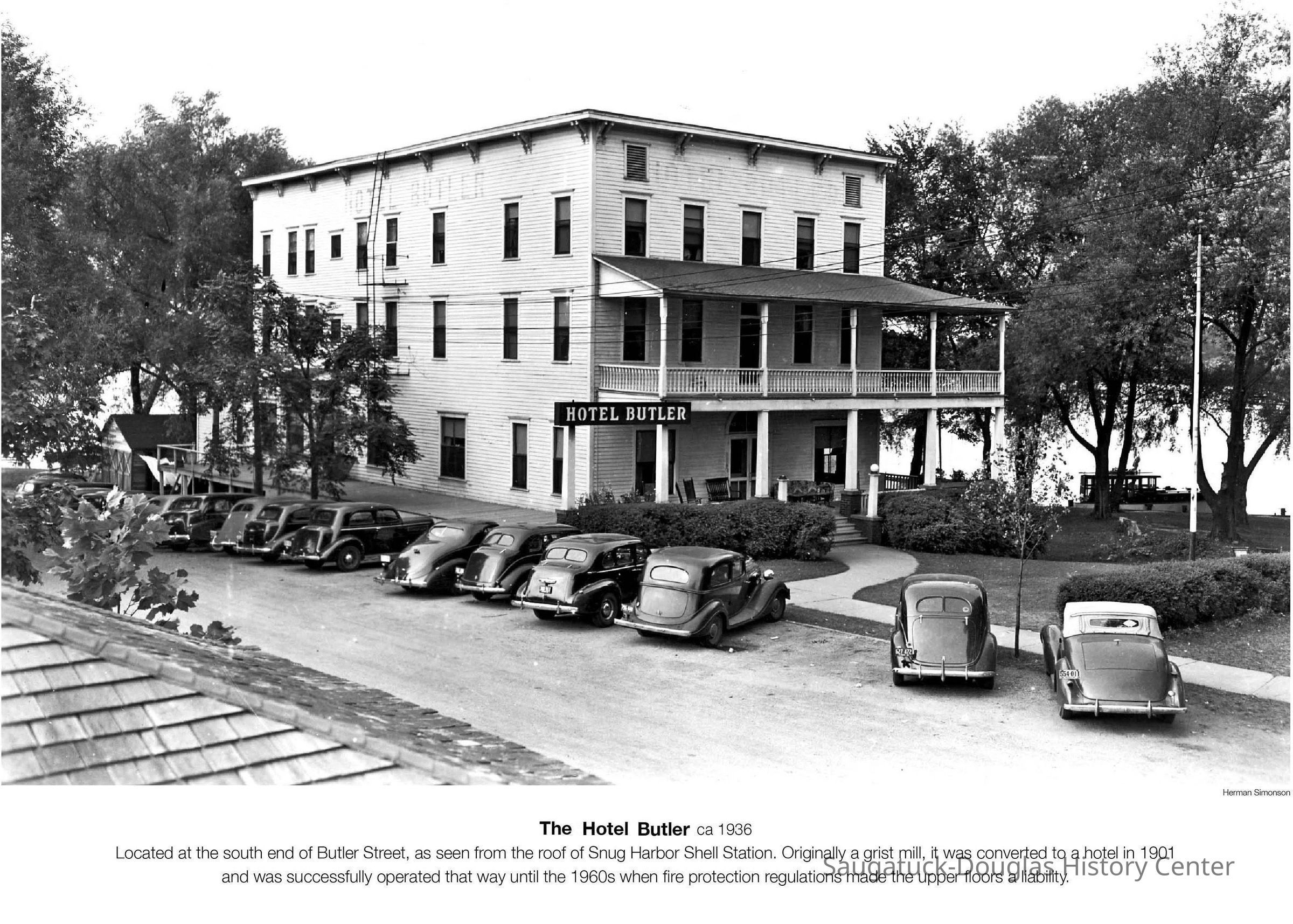Digital images of the Hotel Butler before the upper floors were removed in the early 1970s and the site became the Butler Restaurant. Also includes views of boardwalk/docks on Lake Kalamazoo, the Interurban rail loop and the shuffleboard courts at Morrison/Cook Park.