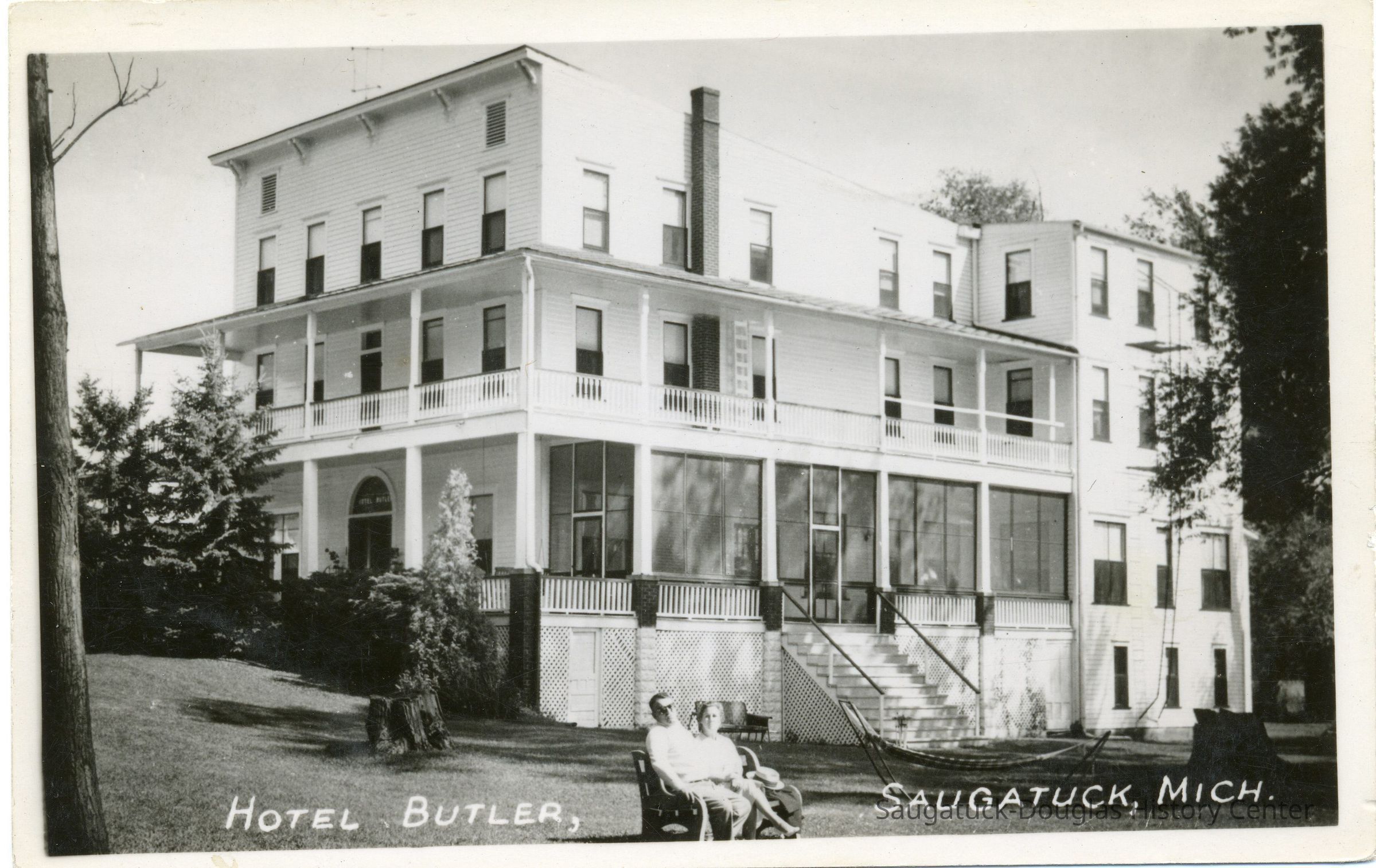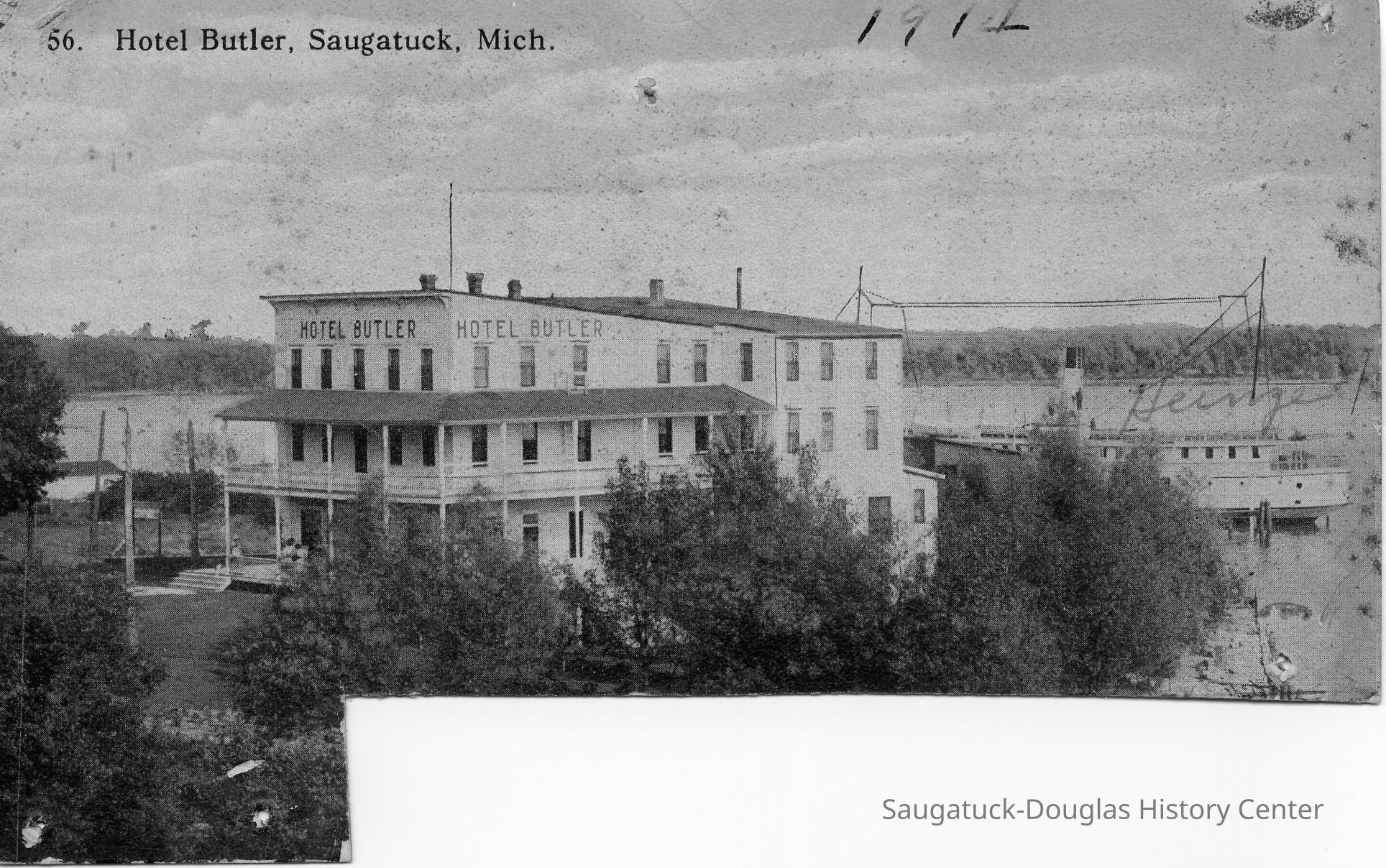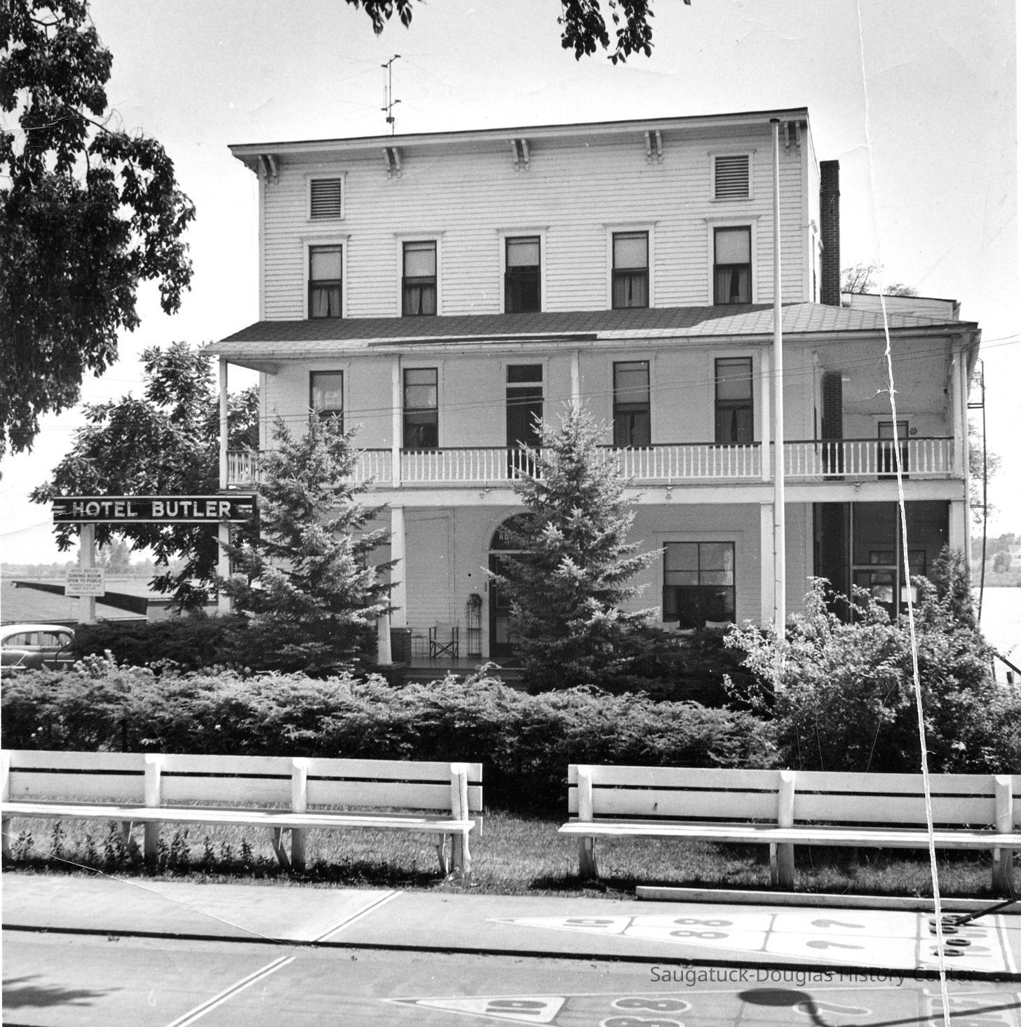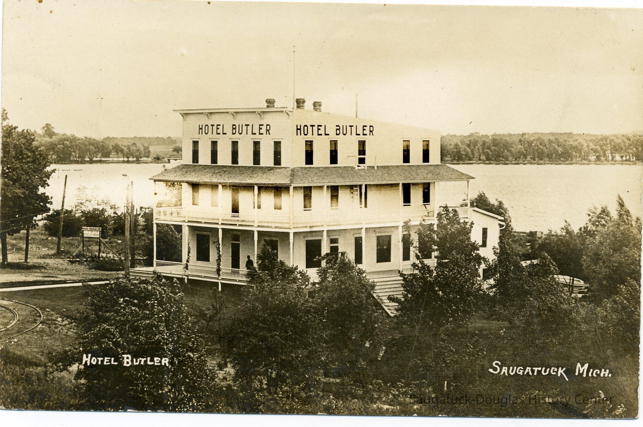Digital images of the Hotel Butler before the upper floors were removed in the early 1970s and the site became the Butler Restaurant. Also includes views of boardwalk/docks on Lake Kalamazoo, the Interurban rail loop and the shuffleboard courts at Morrison/Cook Park.