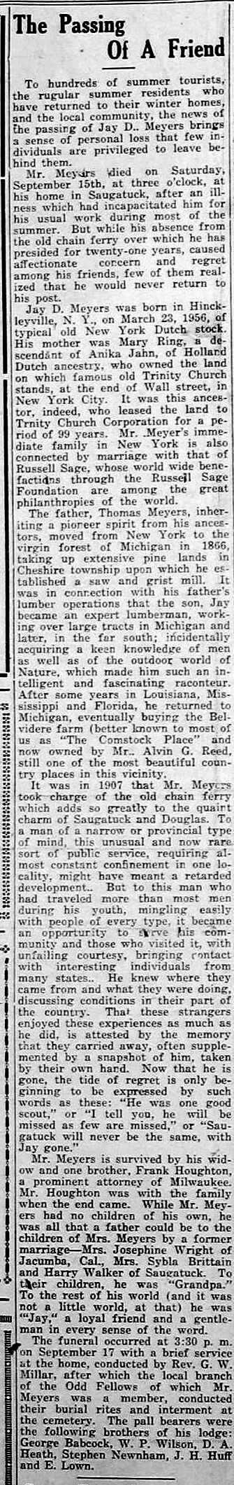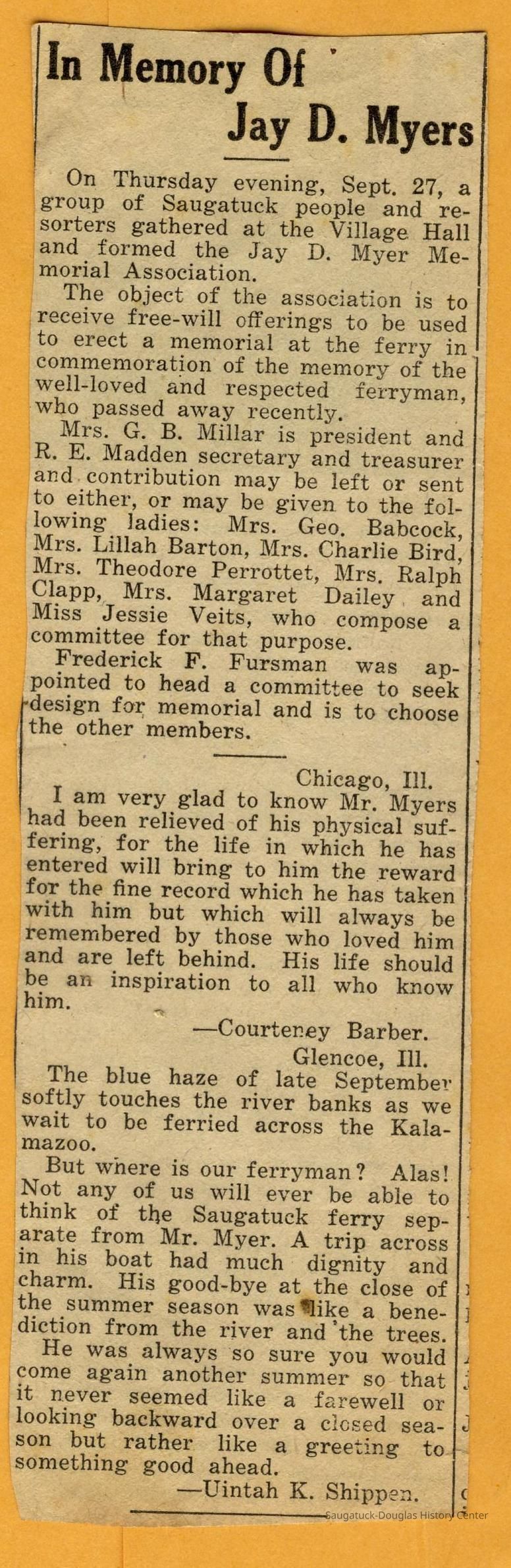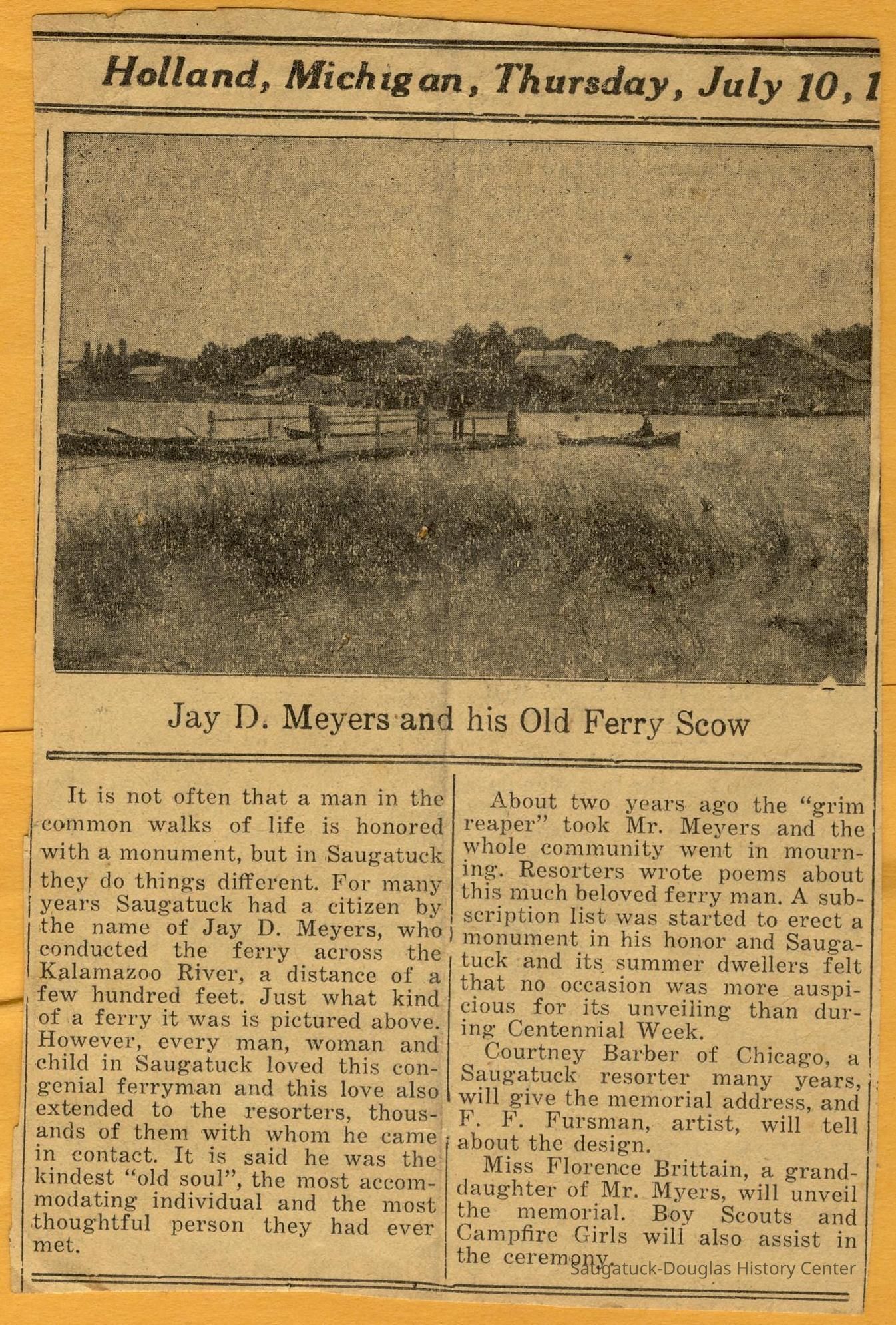 Photos of the ferryman Jay Myers, sometimes misspelled Meyers, in his duties as the Saugatuck ferryman or about town.