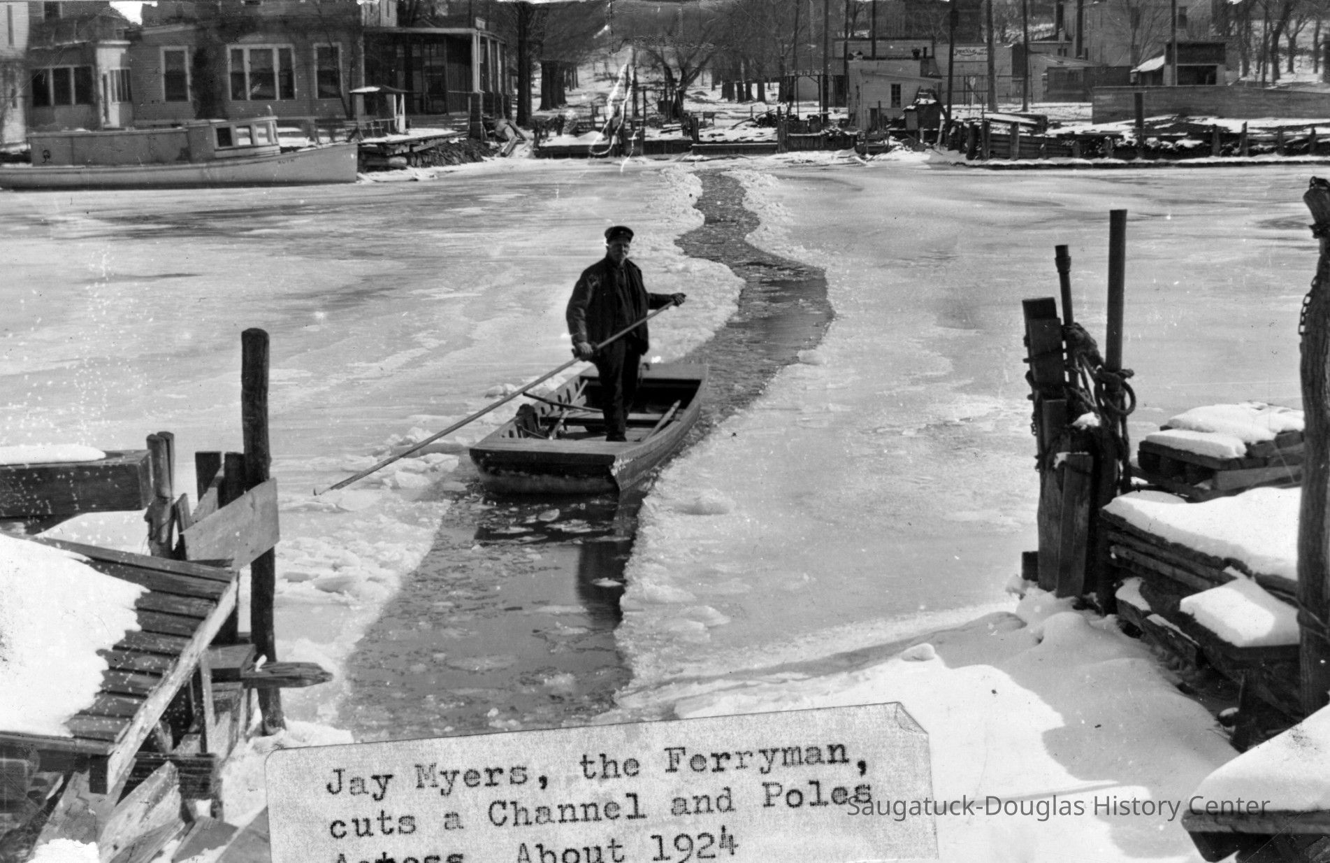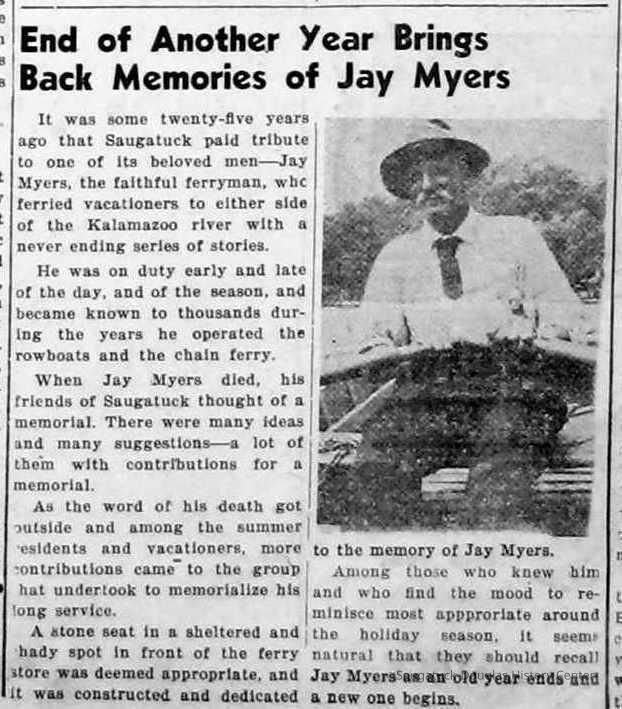 Photos of the ferryman Jay Myers, sometimes misspelled Meyers, in his duties as the Saugatuck ferryman or about town.