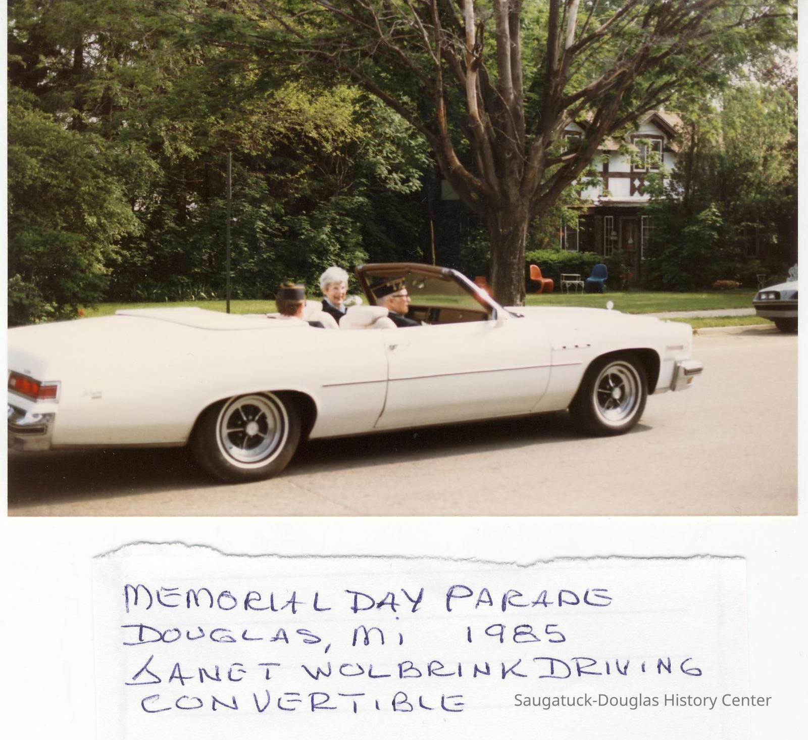 6 photos of the 1985 Douglas Memorial Day Parade. Janet Wolbrink driving convertible.