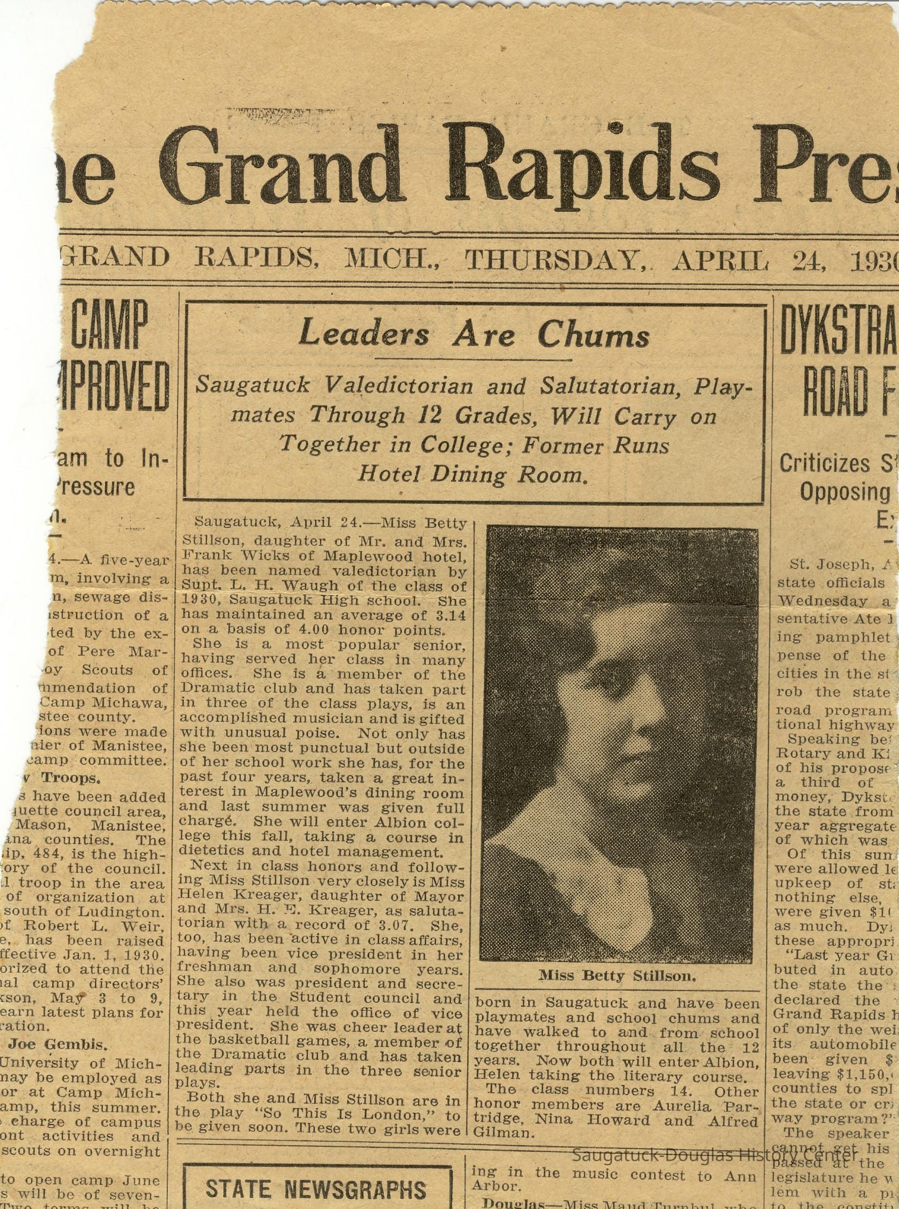 Martin, Elizabeth "Betty" (Stillson) 1911-1994Masselink, Donna Dee (Parrish)Saugatuck Public School 1897-1950Bright World Candle Co./233 Culver/