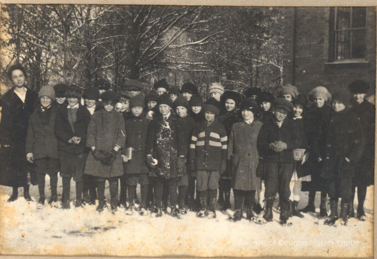 Sixth grade class of Saugatuck School in 1920. Girl third from the right may be Grace Wark.