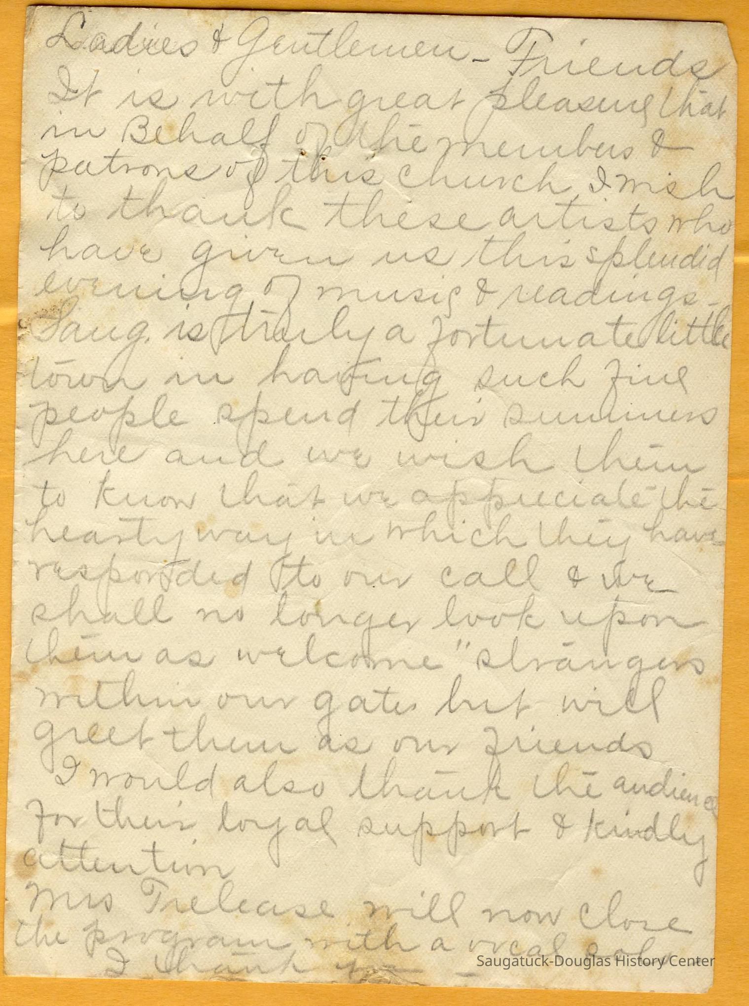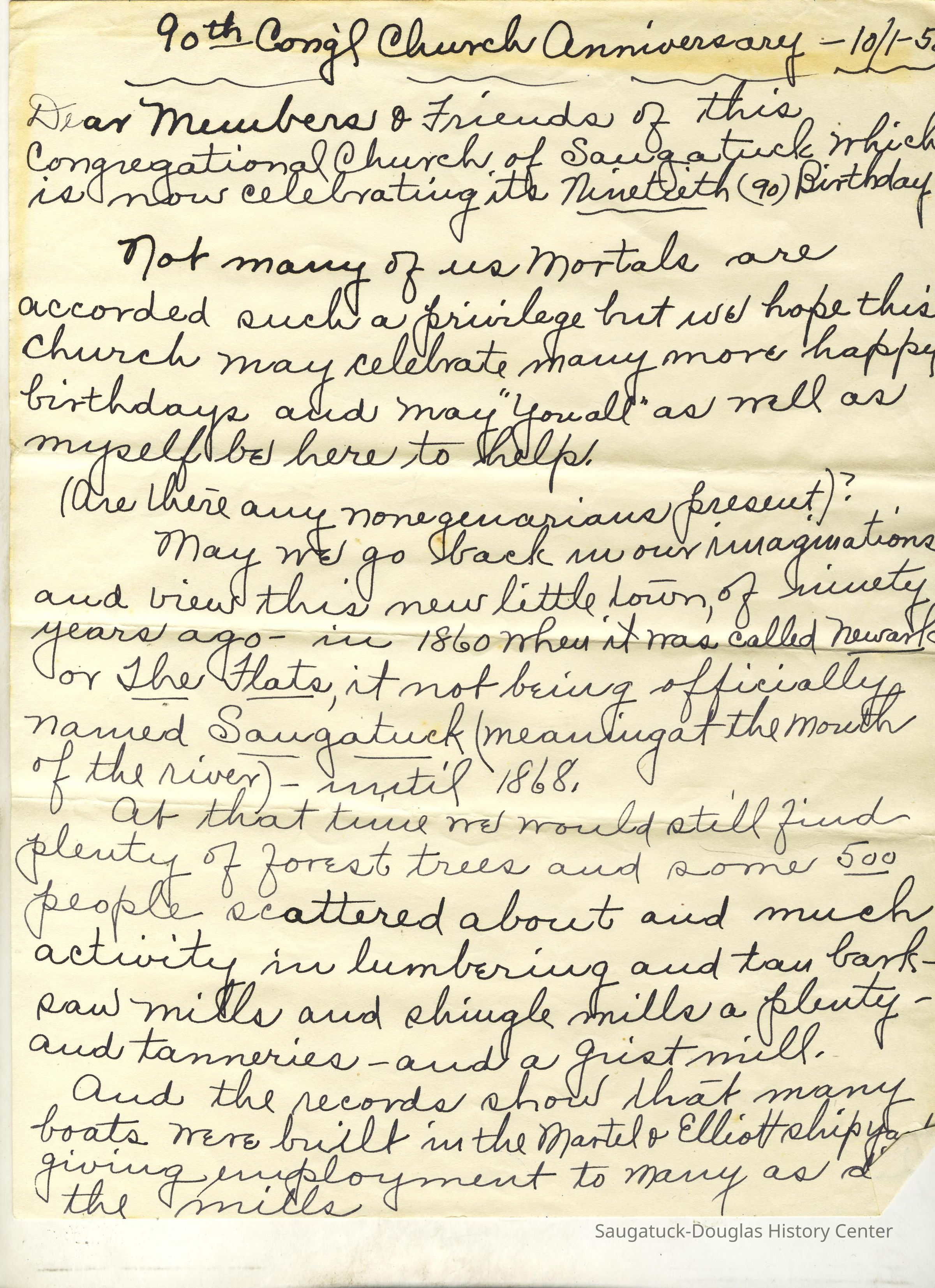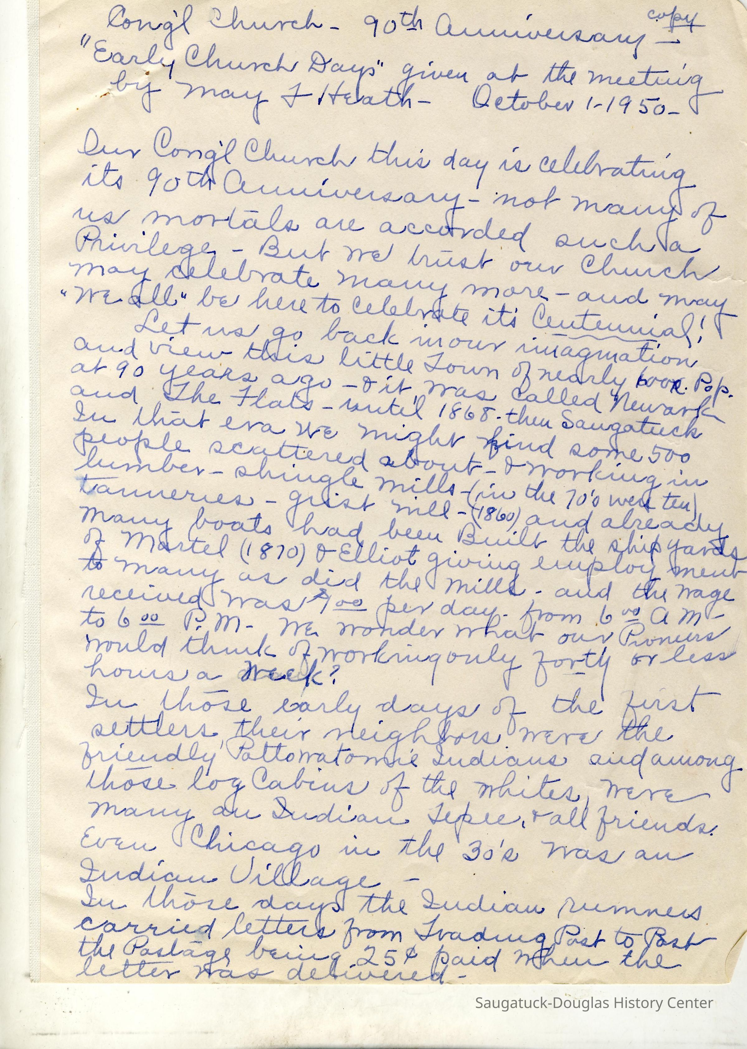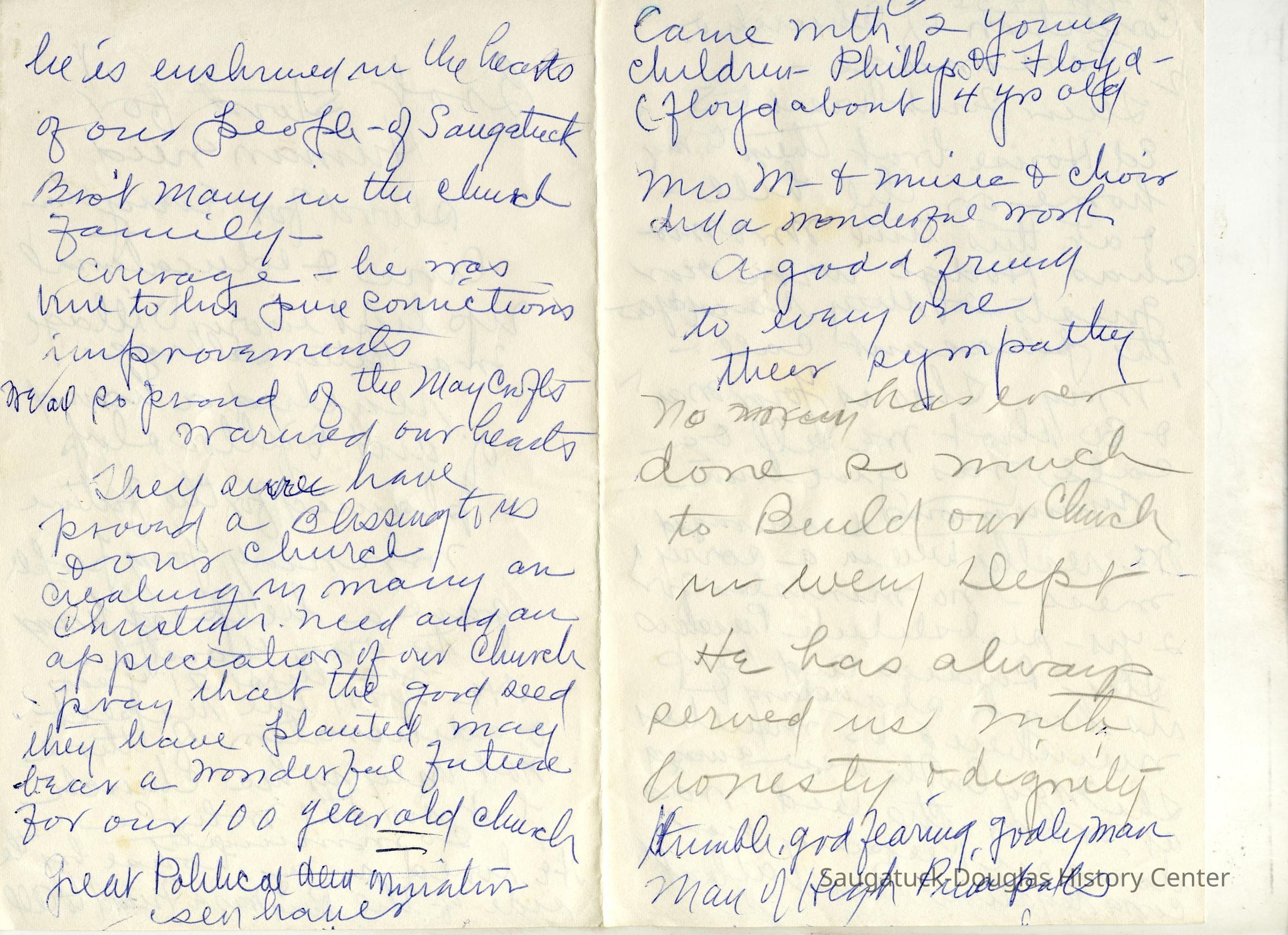 All digital files pertaining to the First Congregational Church of Saugatuck found on the Jack Sheridan hard drive including speeches and notes by May Heath.