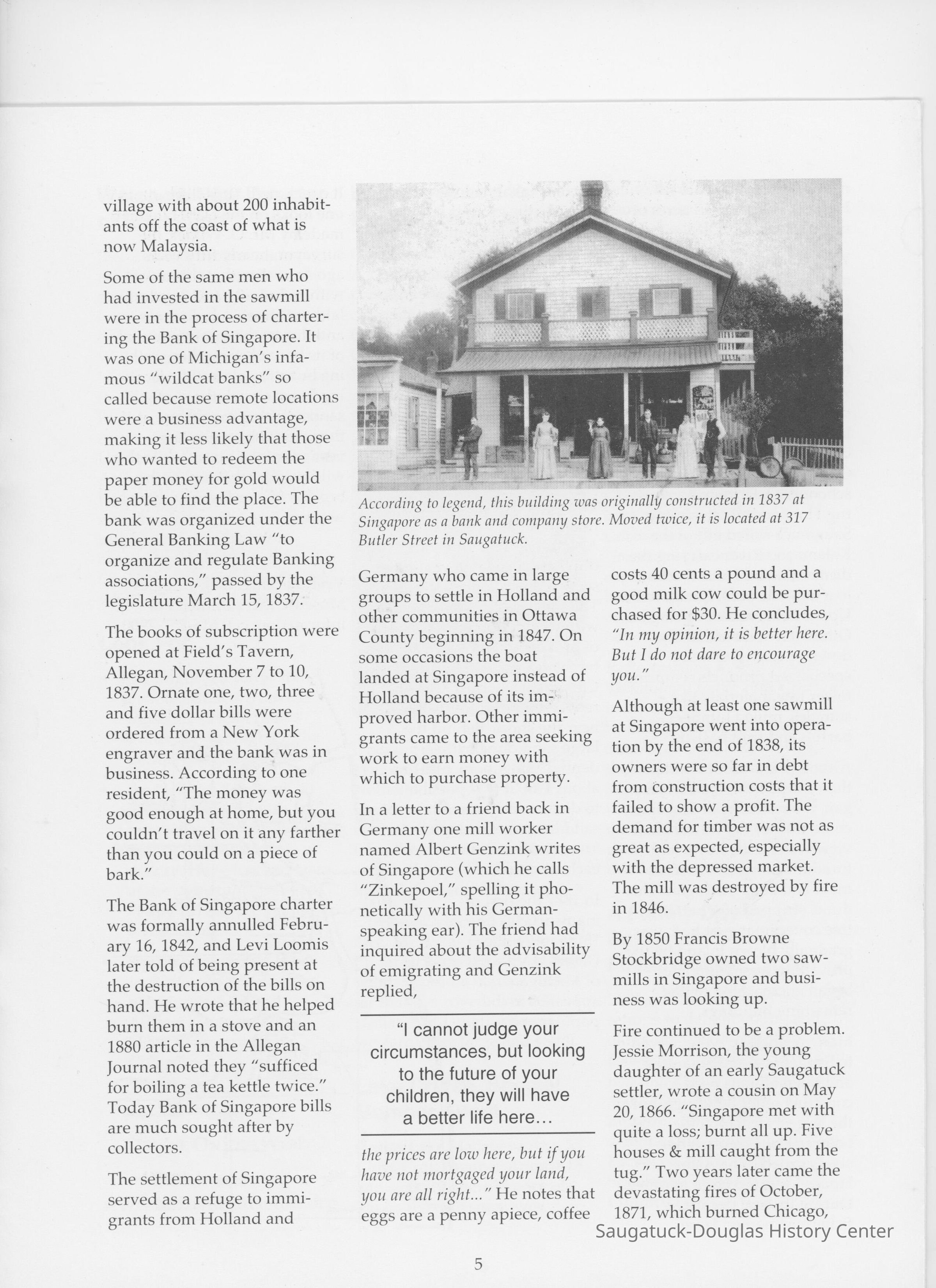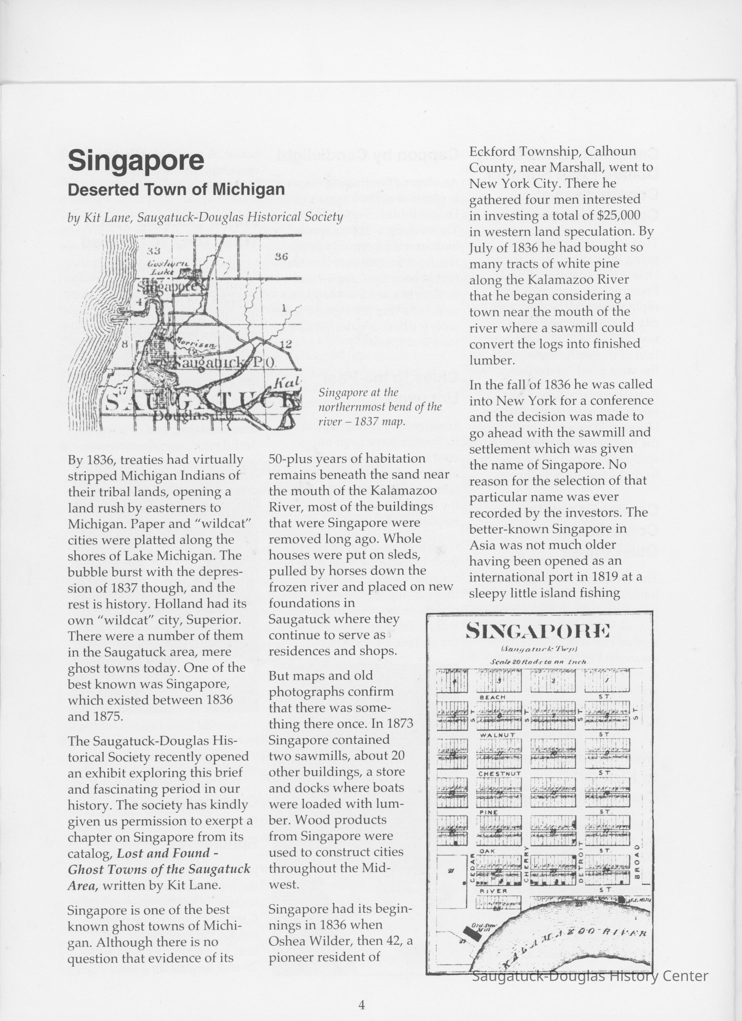 Singapore, Michigan 1837-1875