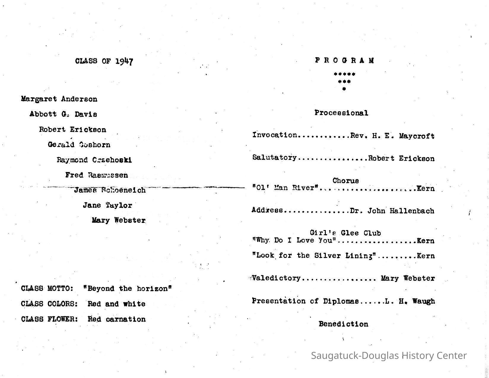 Erickson, Robert "Bob" c1929-2023Orzehoski, Raymond John 1929-2016Schoeneich, James Carl 1927-1992Saugatuck Public School 1897-1950