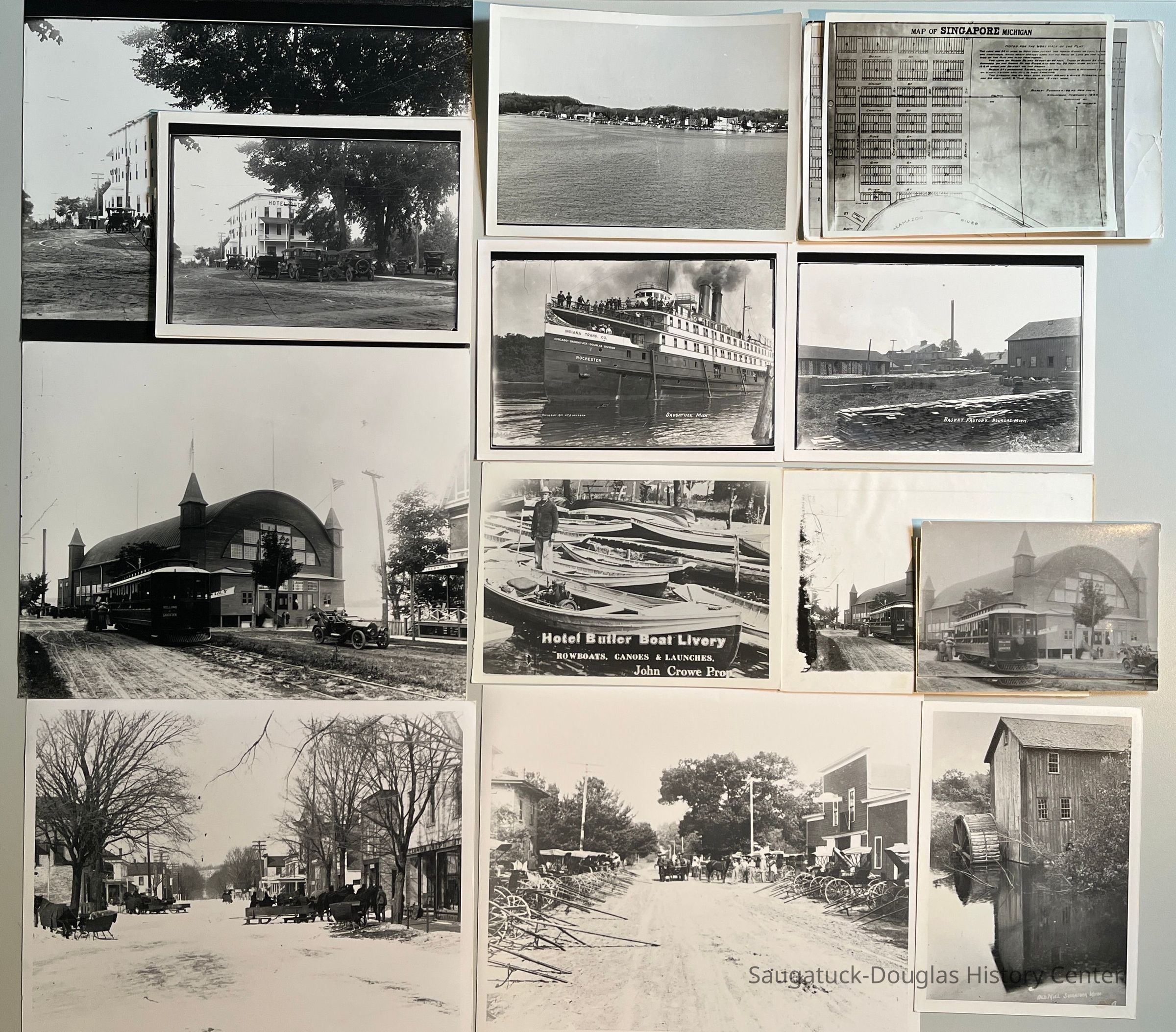 Basket Factories in Douglas circa 1851-1927Rochester (ship)40 Butler/Hotel Butler/Grist Mill/Haymarket/Dutch windmillBig Pavilion 1909-1960Interurban Railroad 1899-1927Crow, John C. 1856-1915Saugatuck Boat Livery/Adams & Heath Boat LiveryDavis Livery/Heath & Stillson livery/Schaberg’s Roller Rink201 Butler/Saugatuck Drug/Rexall/Parrish's Drug/Hotel Hamilton/Saugatuck House 1852-1913Mize Rose Garden north side/Fruit Growers State Bank/Clapp's Grocery/Flint's Shoes/Walz Meat Market/Griffin/TannerButler Street