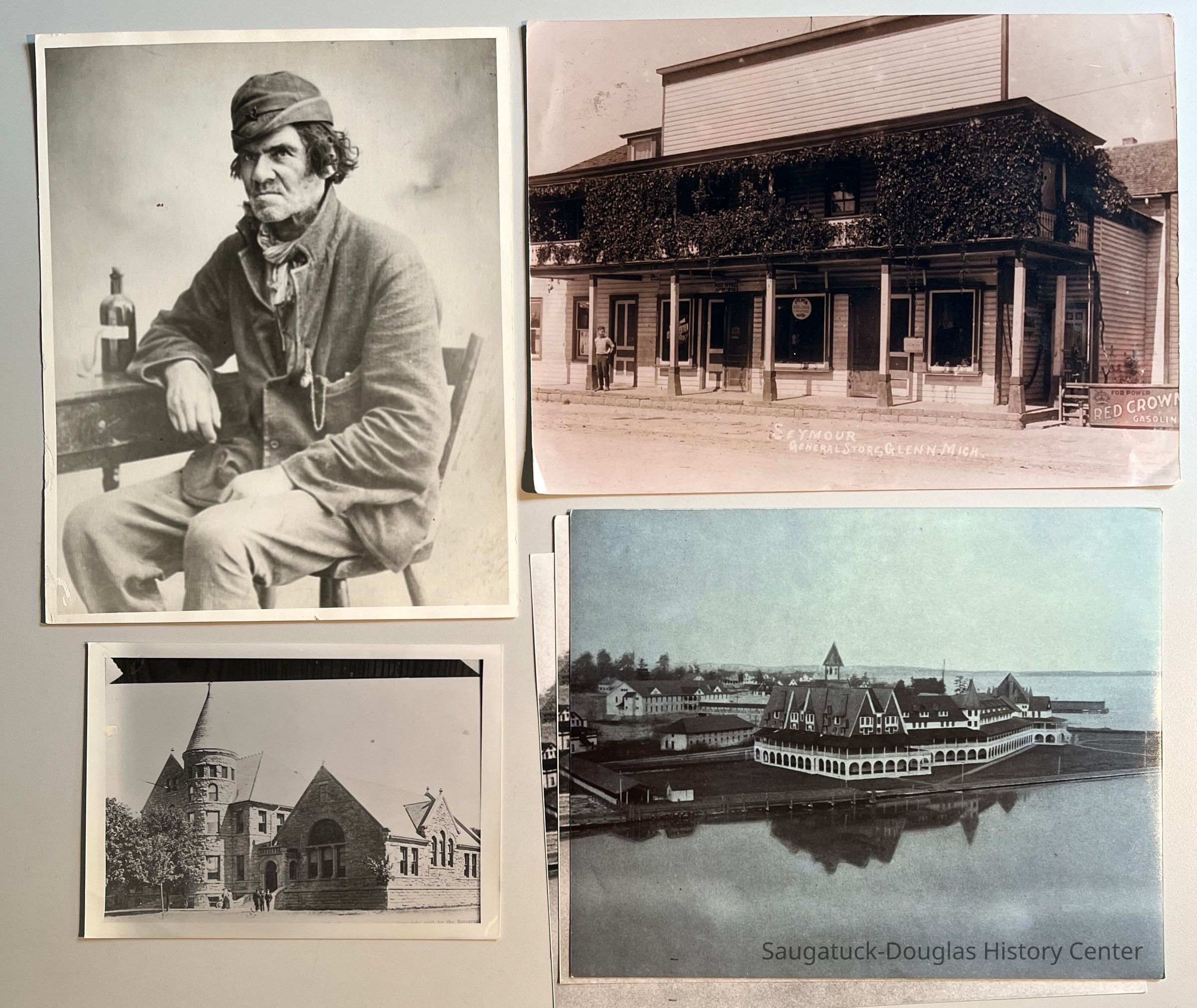 Many of these photos were originally captured by early Saugatuck photographer Herman Simonson. Some prints are stamped on the back with the text "From the collection of Carlton Simonson, 212 Maple Street, Saugatuck, Michigan historian" or with the address 2020 Lake Street, Holland, Michigan.