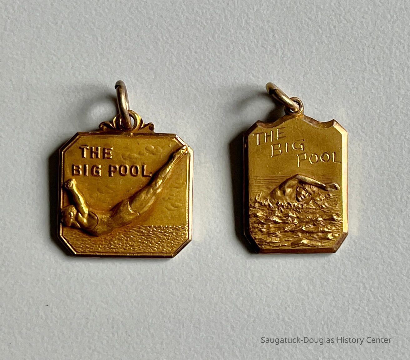 The .75" square charm has a relief image of a man in a full-torso swimsuit with his arms outstretched in a swan dive.