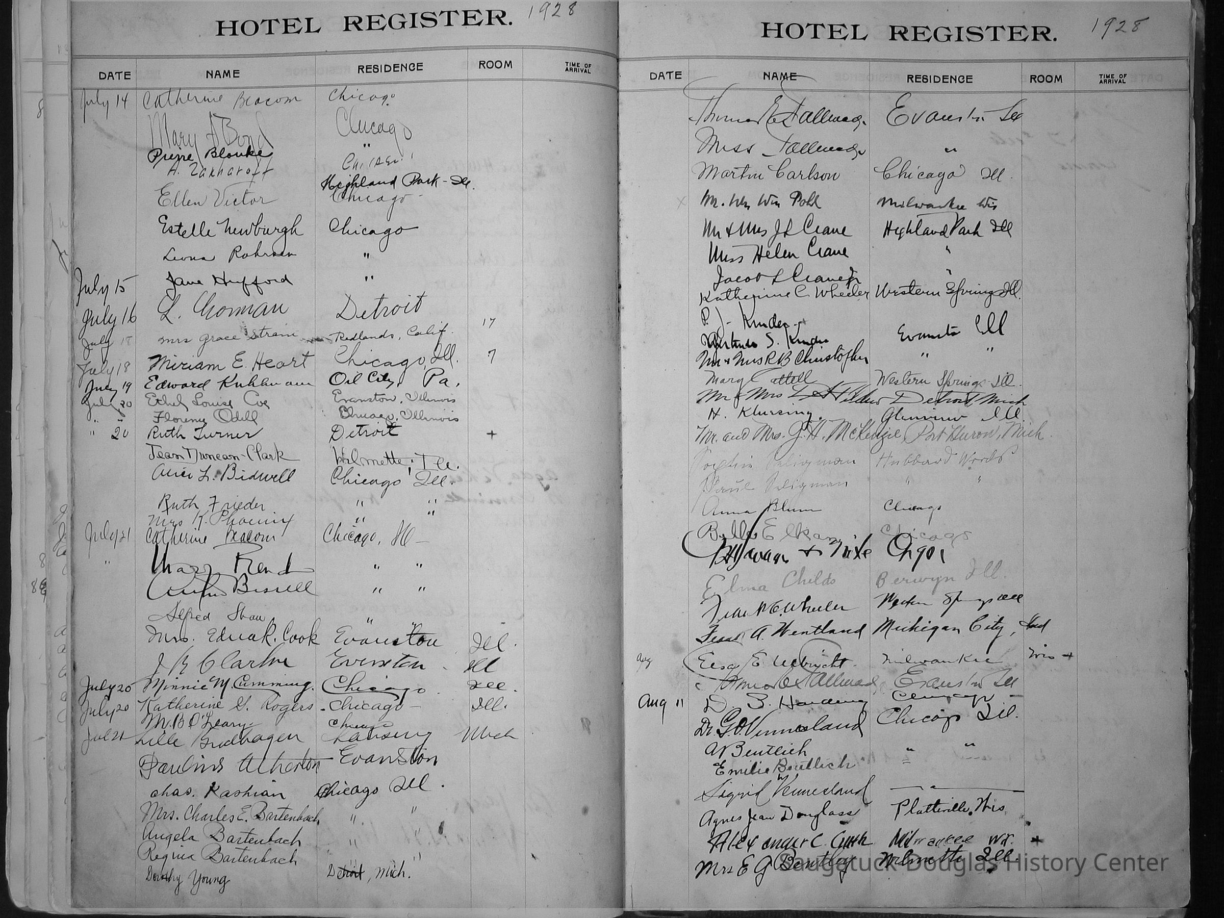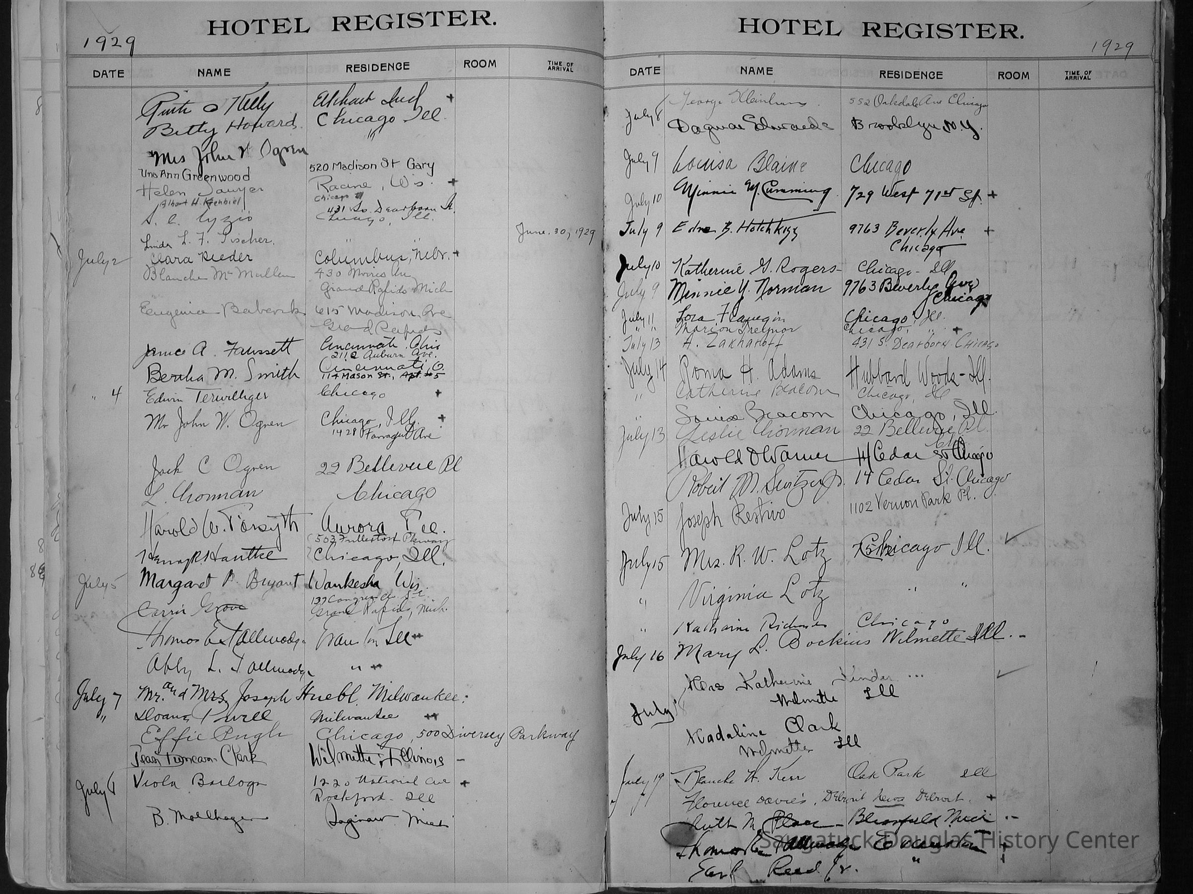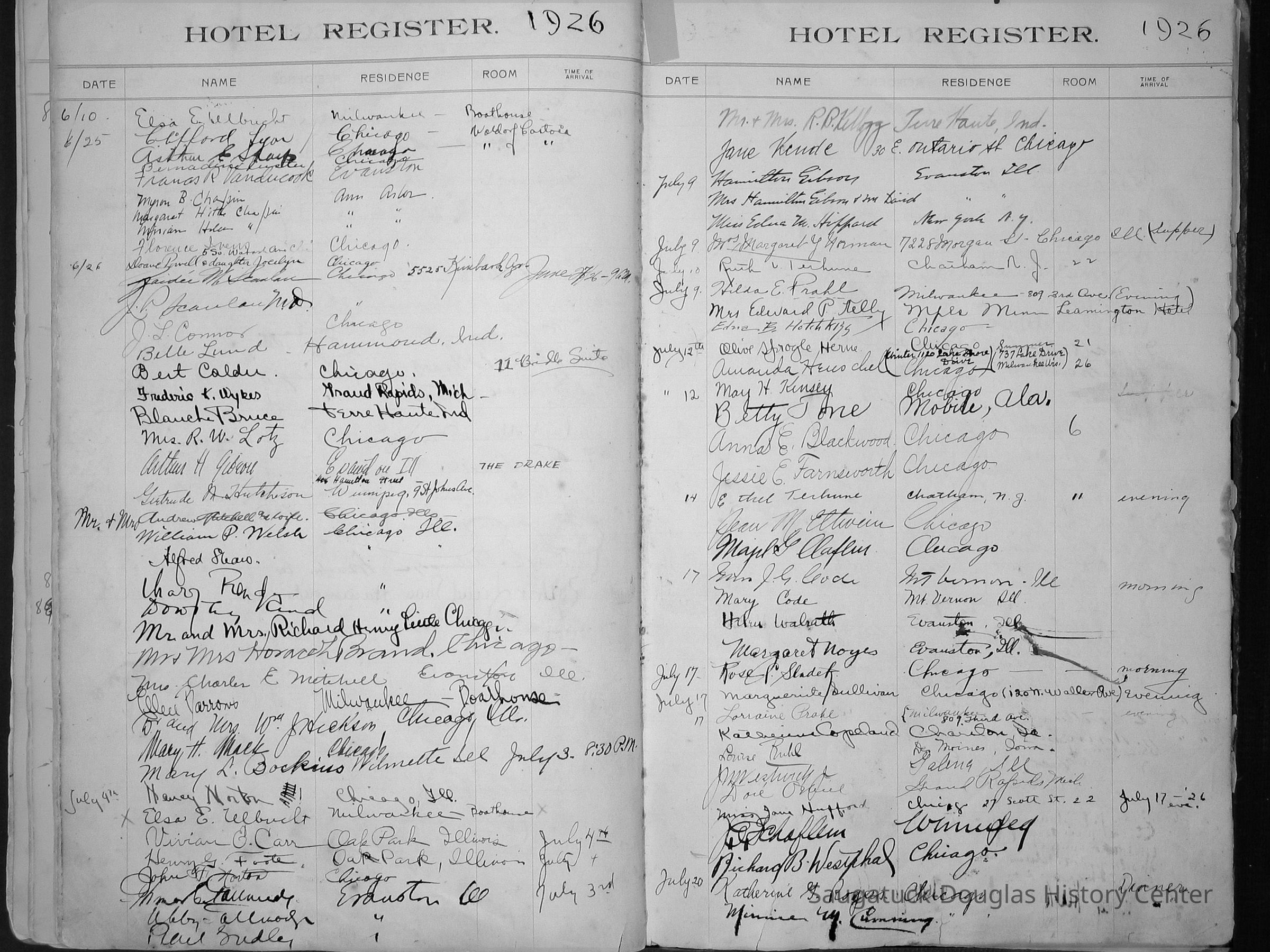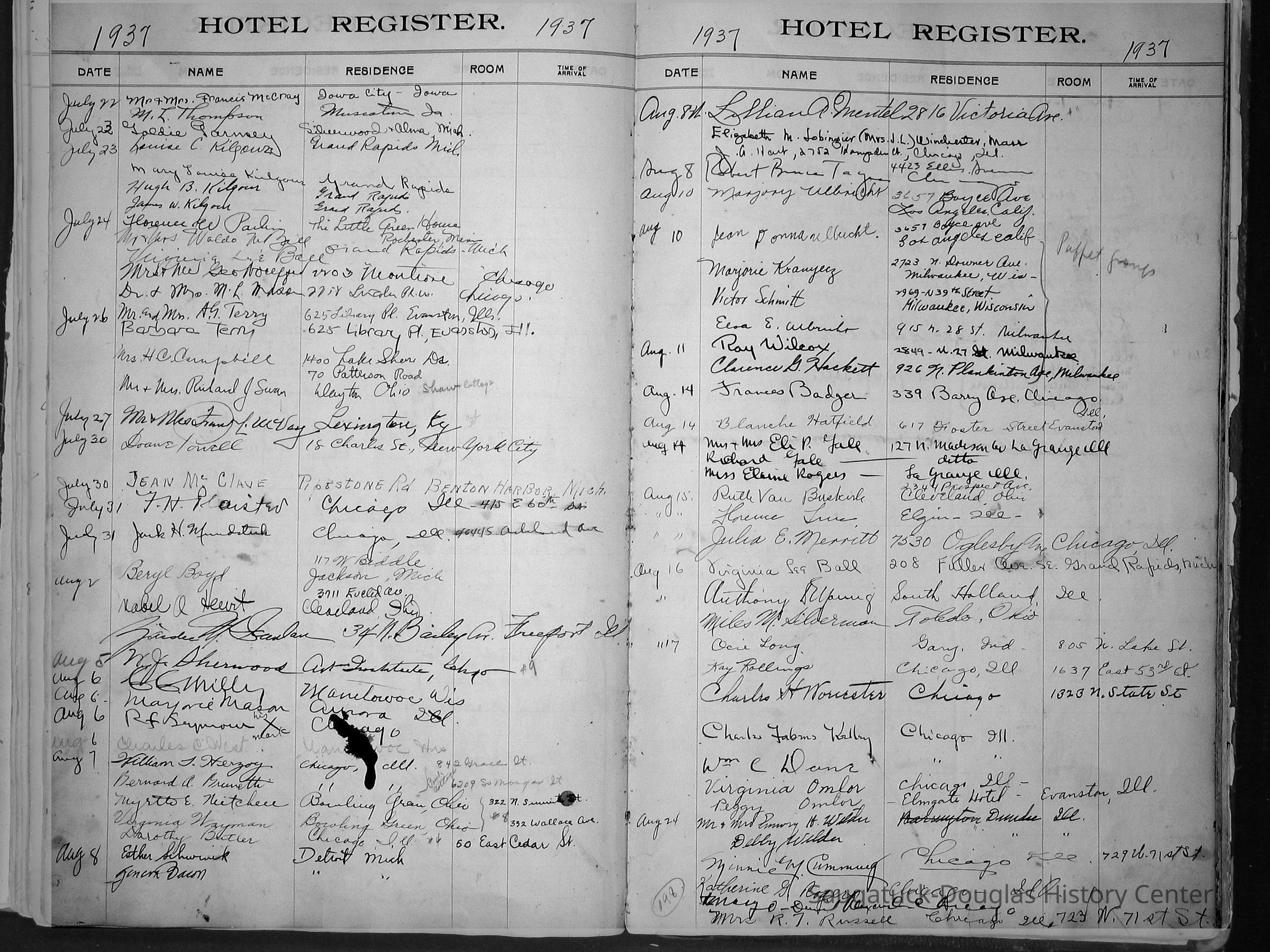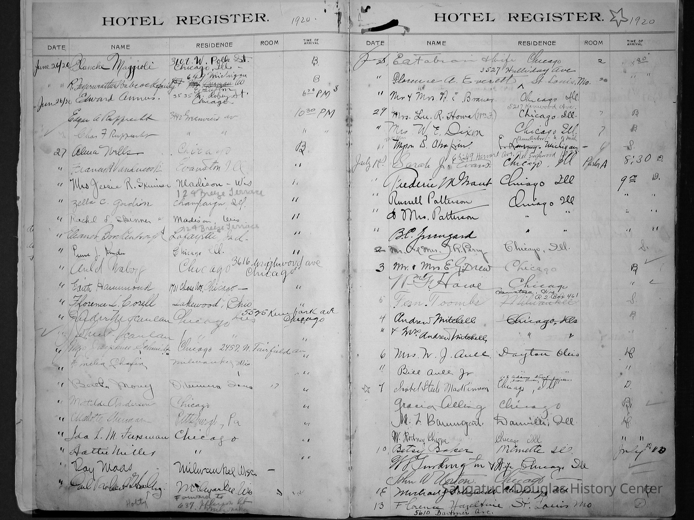 Photographs of the Ox-Bow Inn lodging register pages from 1914 to 1944. The photos were taken in June 2004 when the register was on loan from the archive of the School of the Art Institute of Chicago.