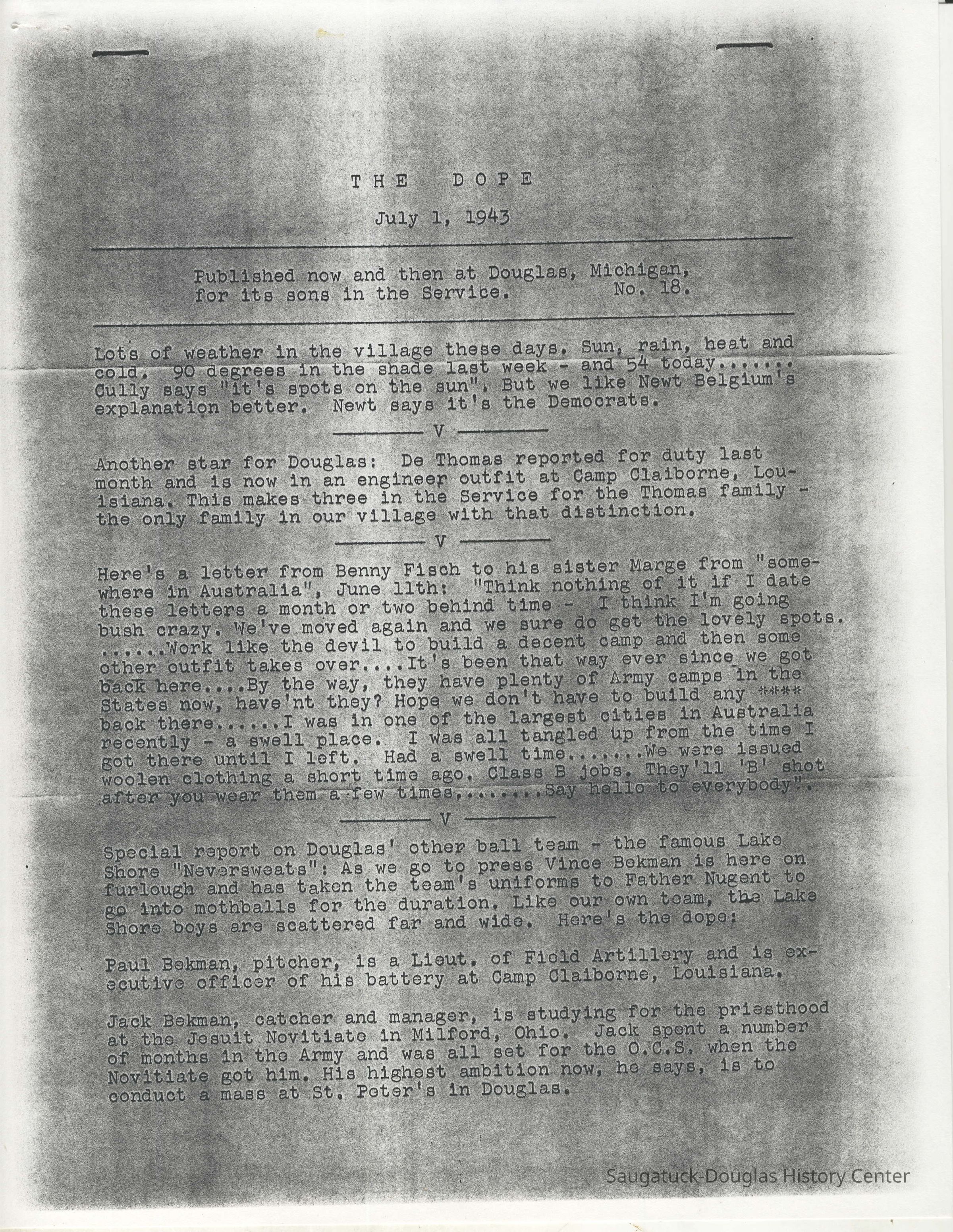 Camp ClairborneThe DopeNewsletterDouglasArmyNavy"Neversweats"BaseballJesuit NovitiatoSt. Peter'sAir Corps