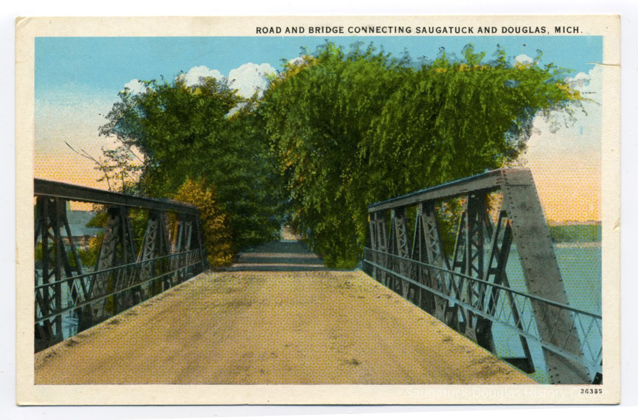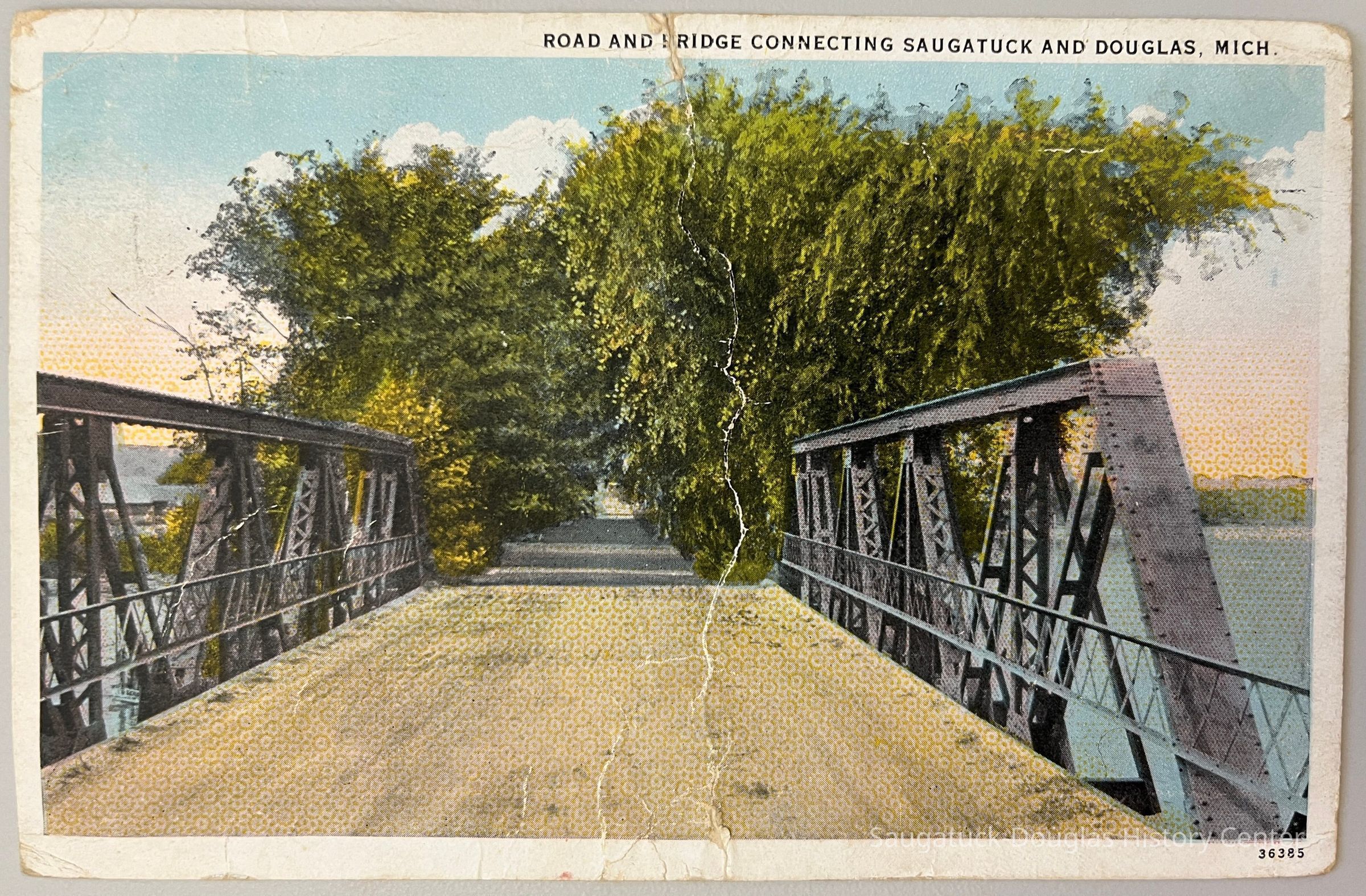 Color postcard of the bridge connecting Saugatuck and Douglas. Mailed to "Dear Al" from Betty. 36385