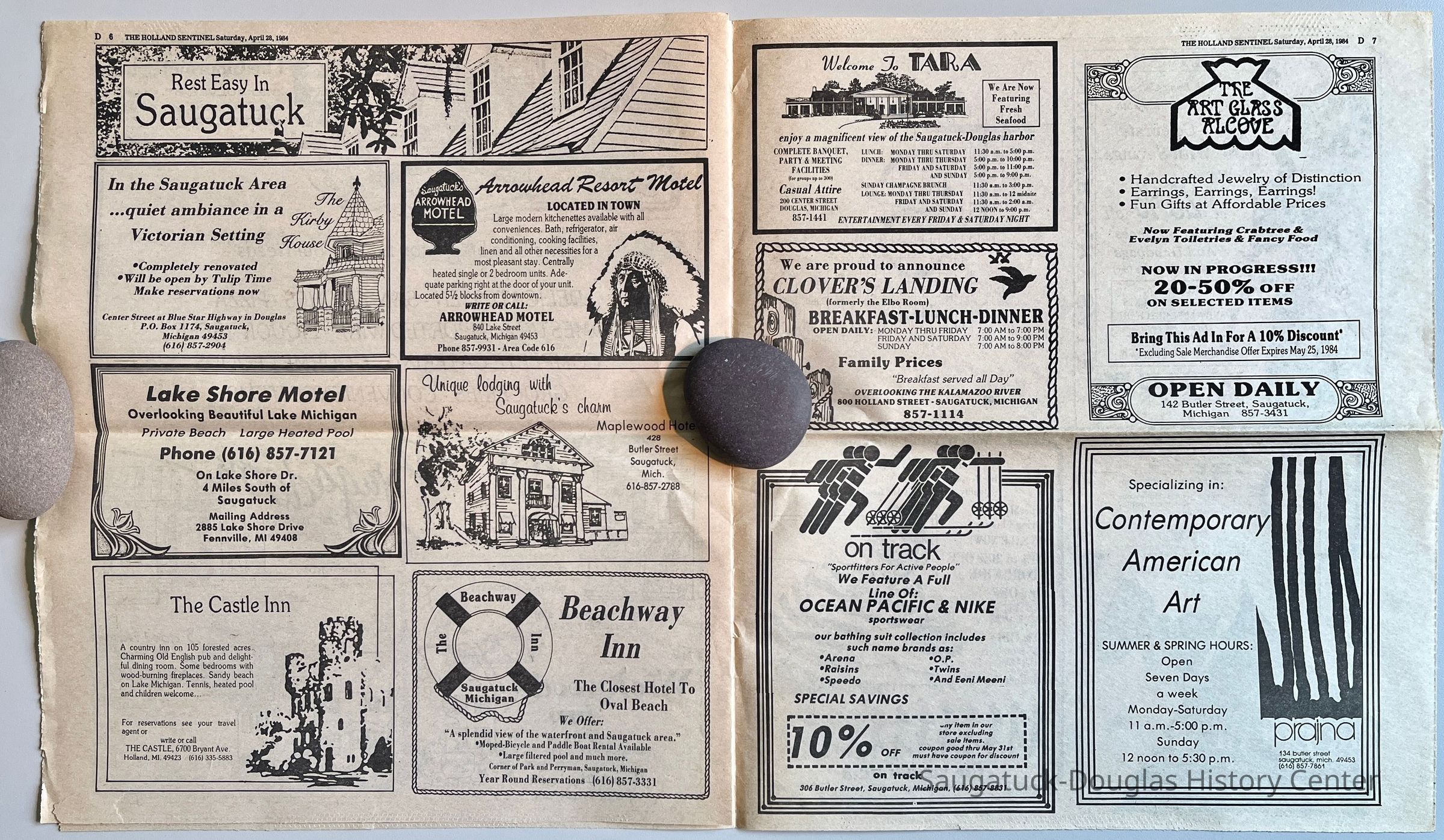 119-121 Butler/Leland's Department Store Building 1907Clearbrook Golf Club/Hamilton Lake Club/Saugatuck Golf ClubPeterson Steamship Company236 Culver/Coast 236/Hercules/Loaf and Mug/Simonson Studio #1Hotel Saugatuck/900 Lake/Twin Gables Hotel/Singapore Country Inn322 Culver/Scooter's Pizza/Gourmet Shop/Villager RestaurantTuck's Pandora Christmas Shop/252 Butler/East of the Sun/Cabin Tavern/Walz's Butcher Shop/Nichols Bldg.241 Butler/Momentum/Brigadoon510 Butler/Wickwood Inn/W. Butler 2nd houseKirby House/Community Hospital before 1960840 Lake/Arrowhead ResortLake Shore Motel428 Butler/Maplewood Hotel b.1860/facade 1923CastleBeachway Inn/Ferry Inn c1905-Tara Restaurant/Spencer House/200 Center880 Holland/Southerner/Elbo Room/Clover's Landing306 Butler/Landsharks/Tripp's/Kruger's/C.E. Bird's/Ensign Drug Store/Wilcox Building142 Butler/Art Glass Alcove/Curious Cove/Green Parrot Cafe/Sorenson Building132-140 Butler/Brass Anchor/Prajna Gallery/Celebration/Elms Hotel/Francis residence/Morrison HallCafe Sir DouglasSunglass Hut/222 Butler/Collum Realty/Casual Man