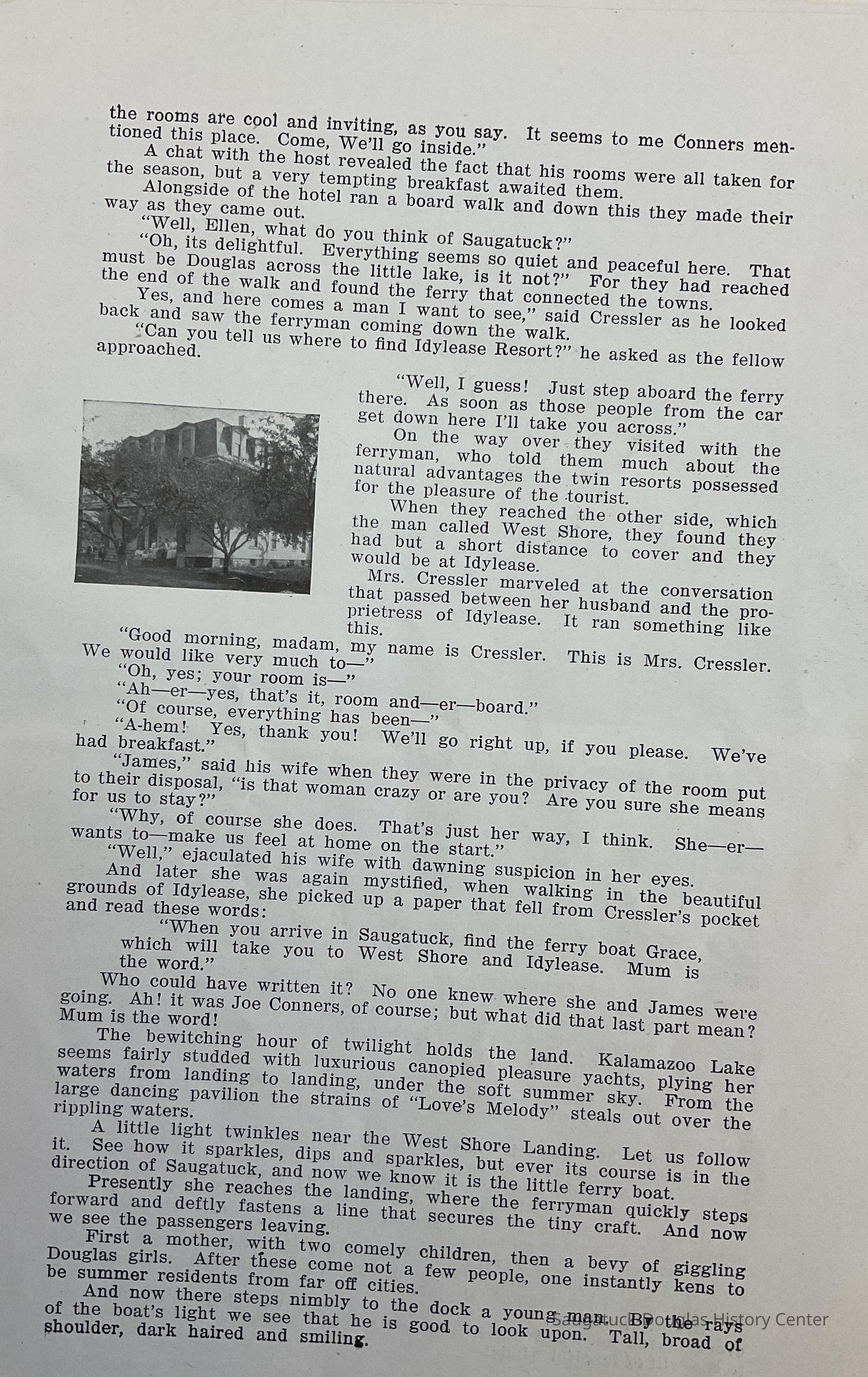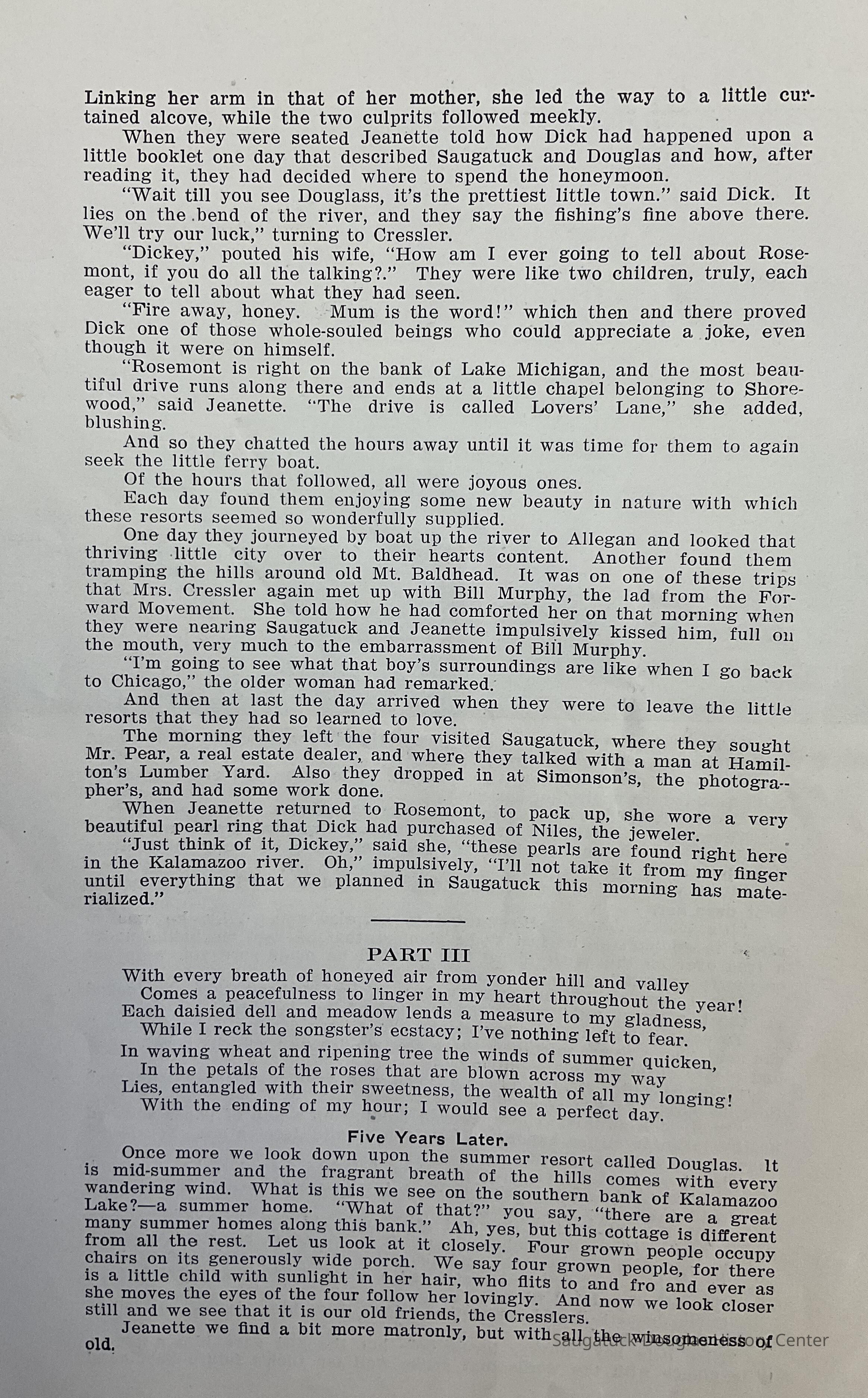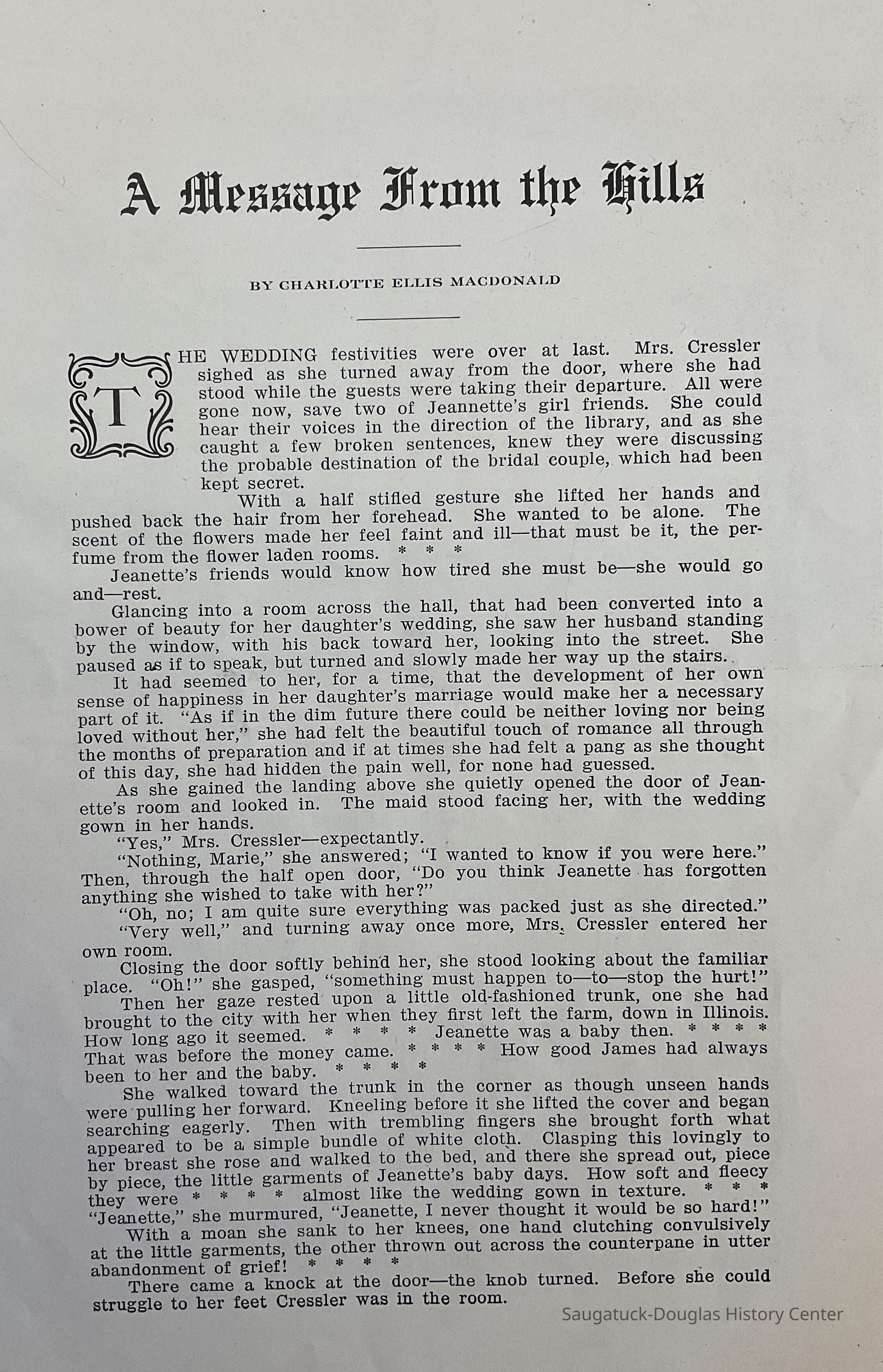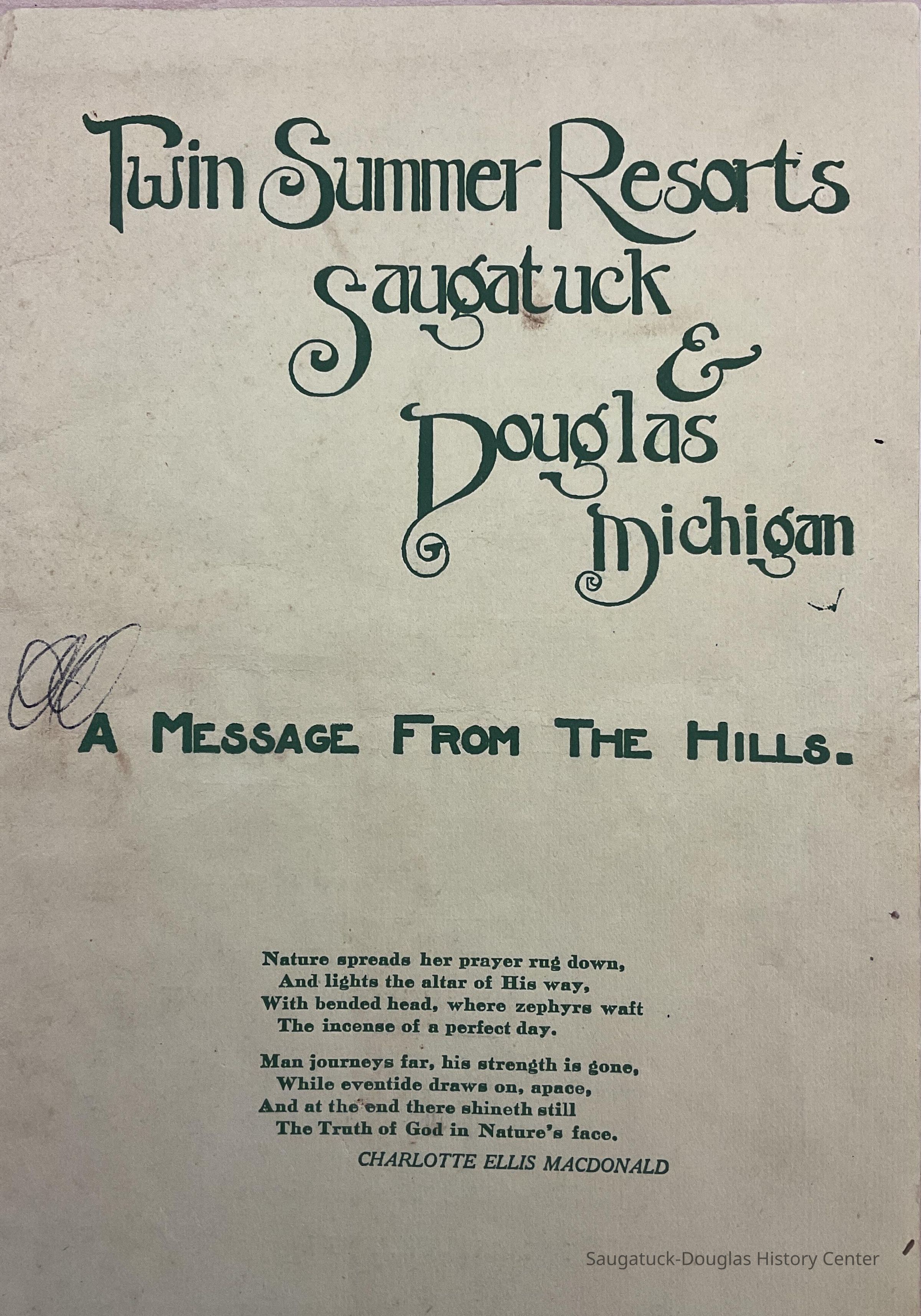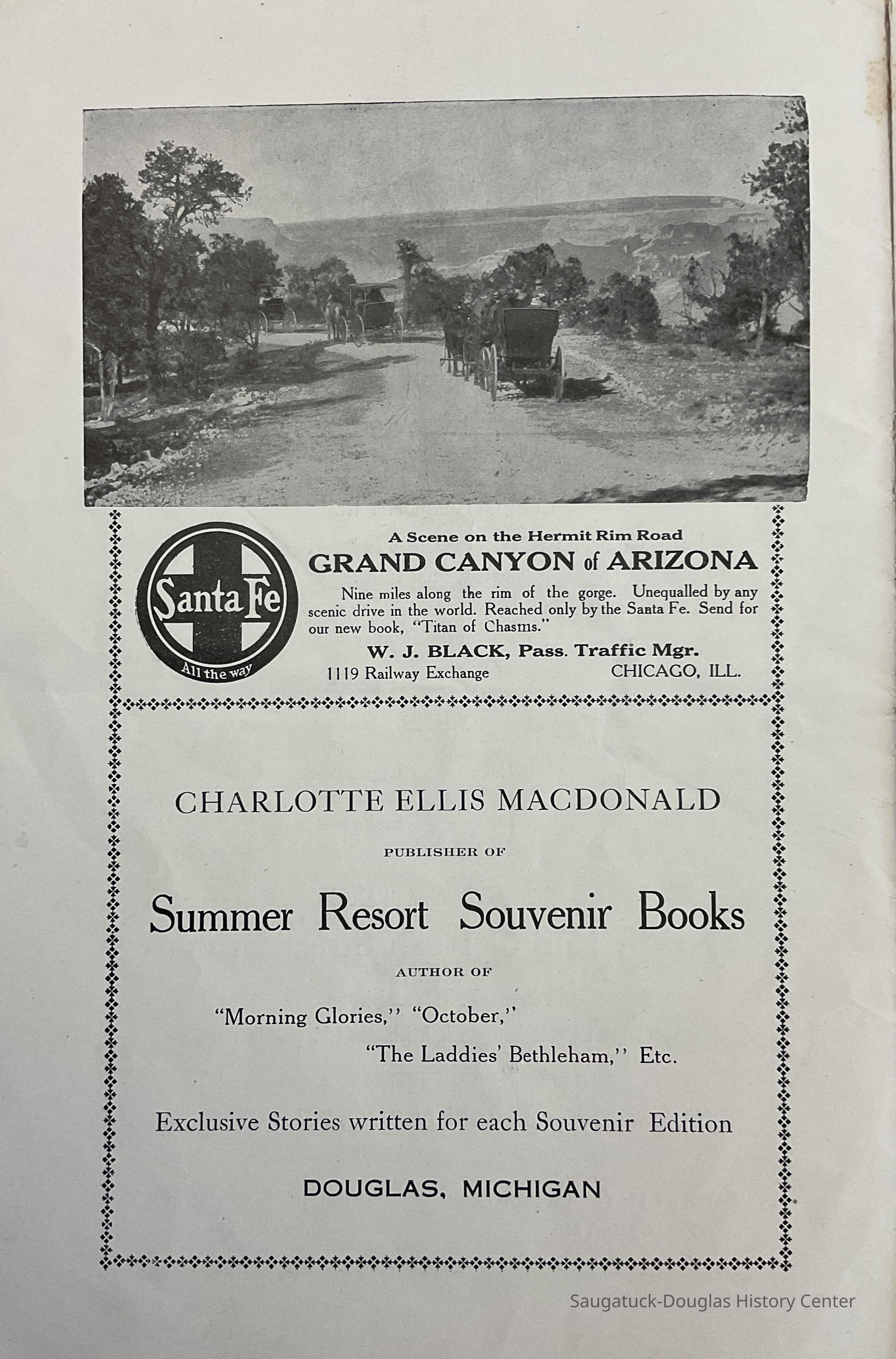 Notes: Charlotte Macdonald was the publisher of Summer Resort Souvenir Books The booklet is a melodramatic story of a couple visiting the area for the first time. Status: OK Status By: Mary Voss Status Date: 2011-09-12