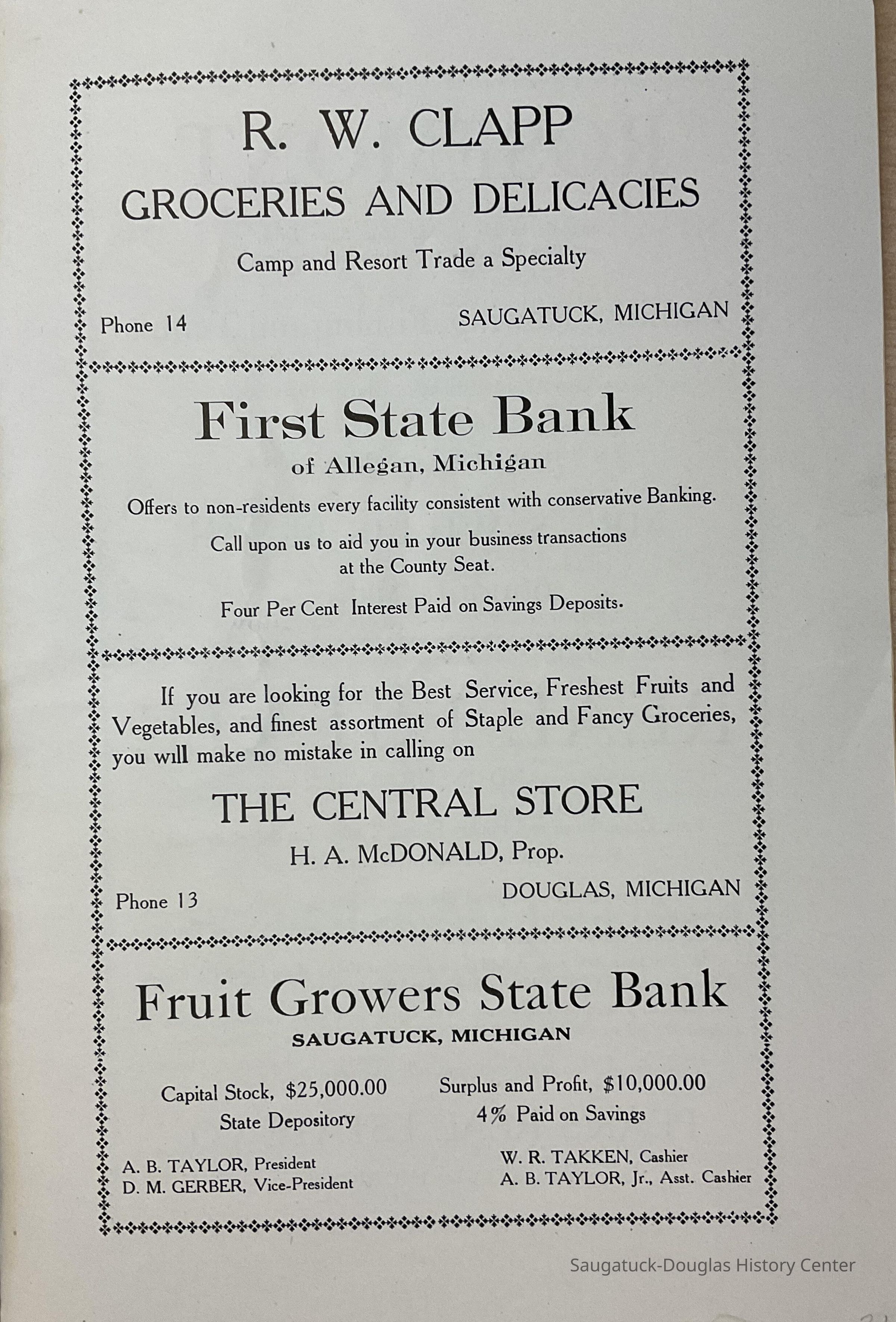 Tourist Booklet written by Charlotte Ellis Macdonald with ads from local tourist establishments