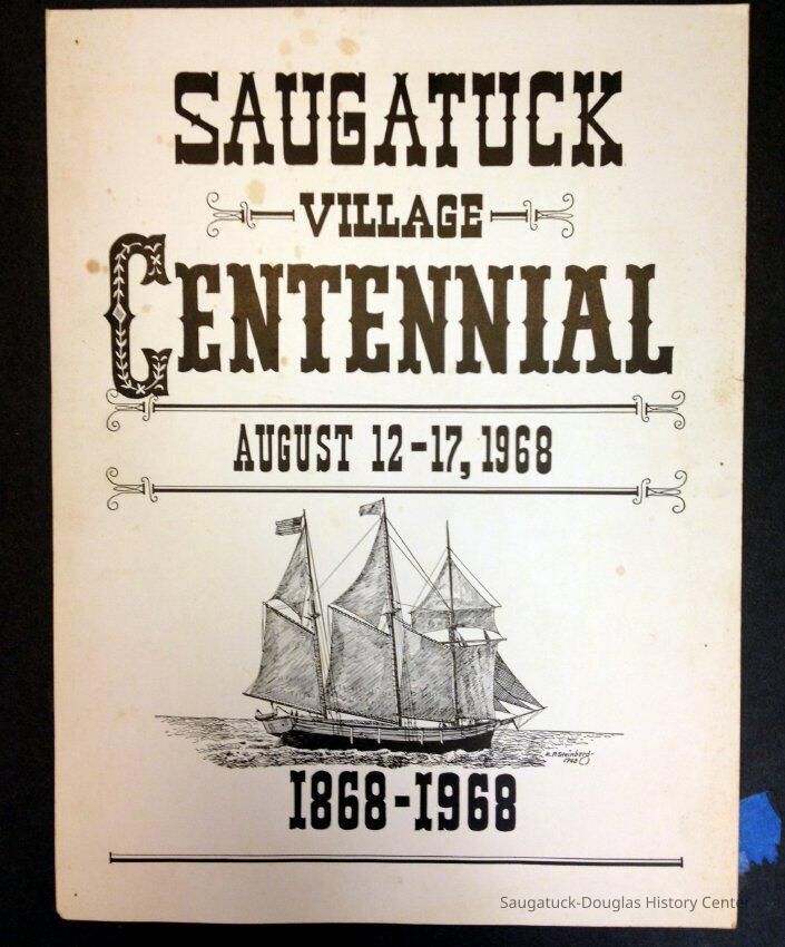 (1/2) Large poster celebrating the Saugatuck Centennial in August 12-17 1968