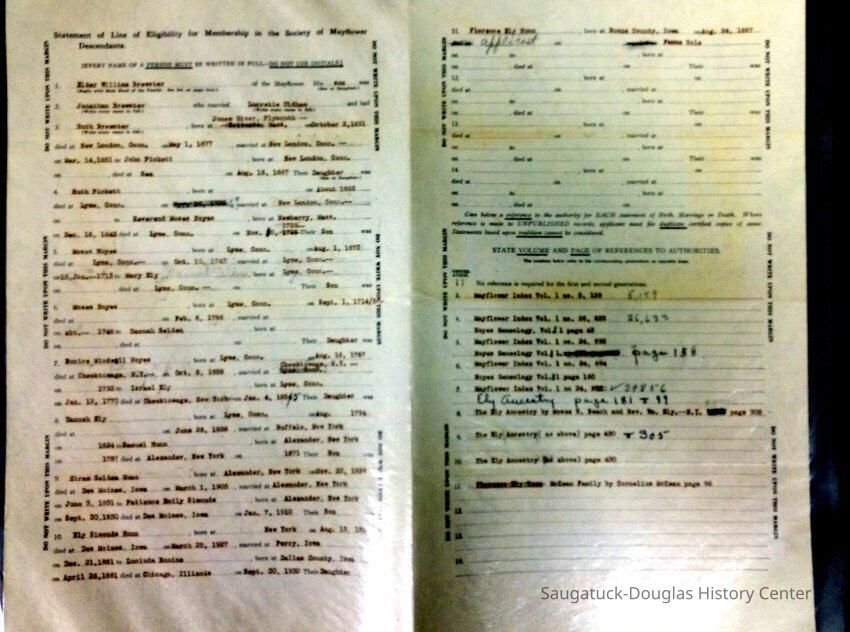 Statement of Line of Eligibility for Membership in the Society of Mayflower Decendants