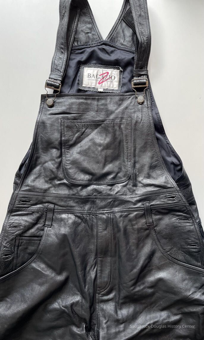 2. XXL black leather overalls by Bagazio outerwear/sportswear. Very soft leather with black fabric lining. Legs shortened with pinking shears.