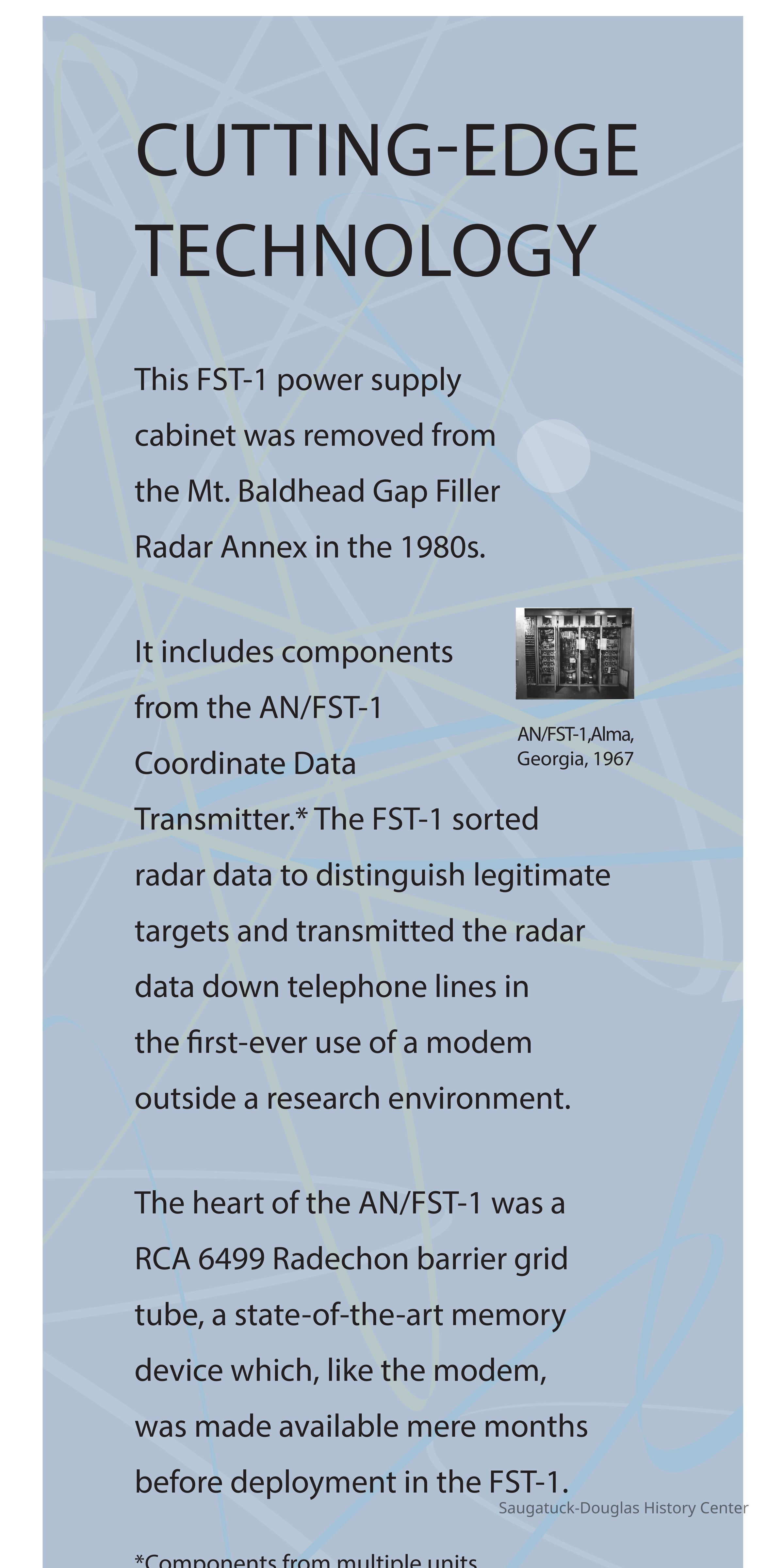 Heavy metal cabinet and various components (possibly mixed) from the Mt. Baldhead radar installation.
