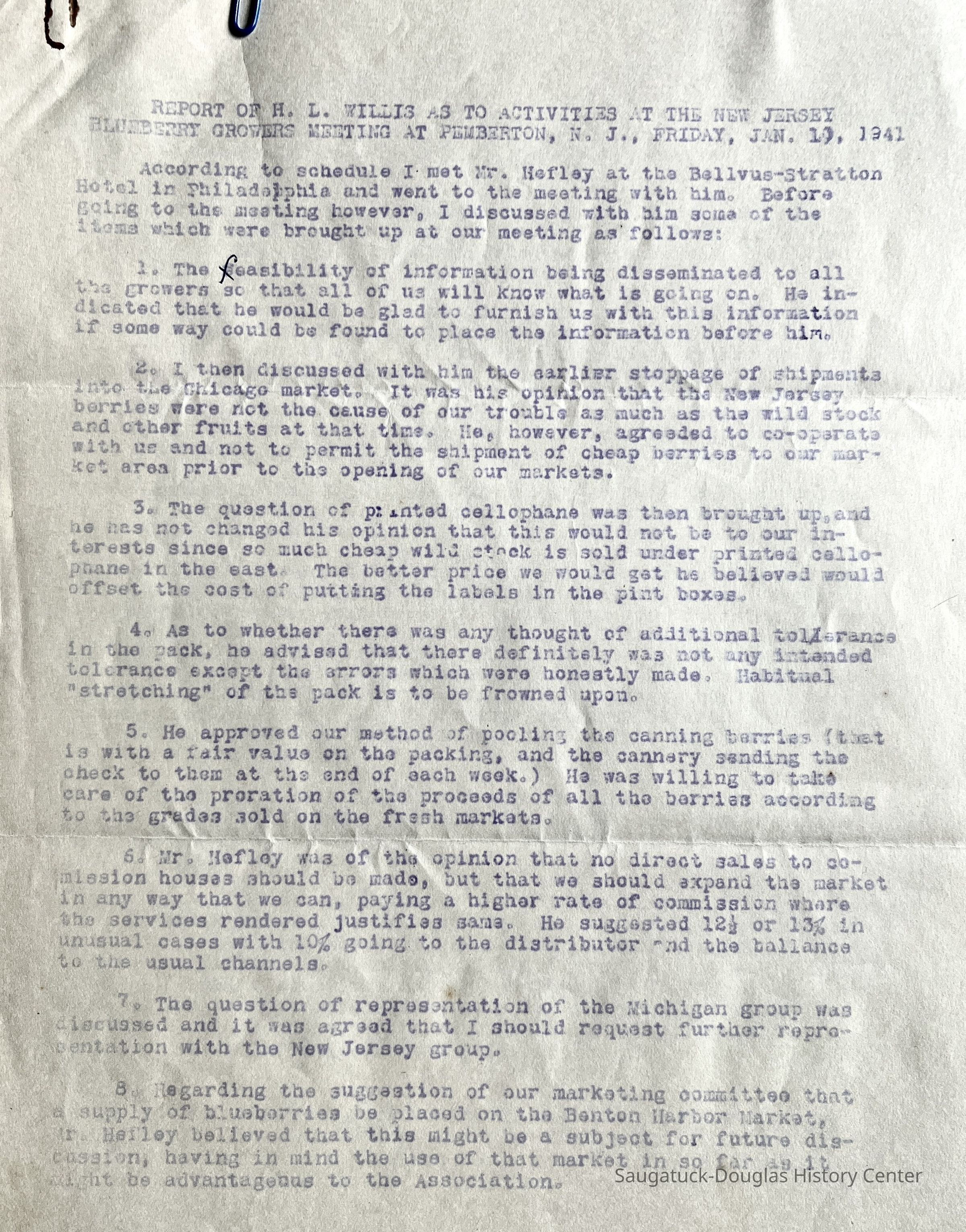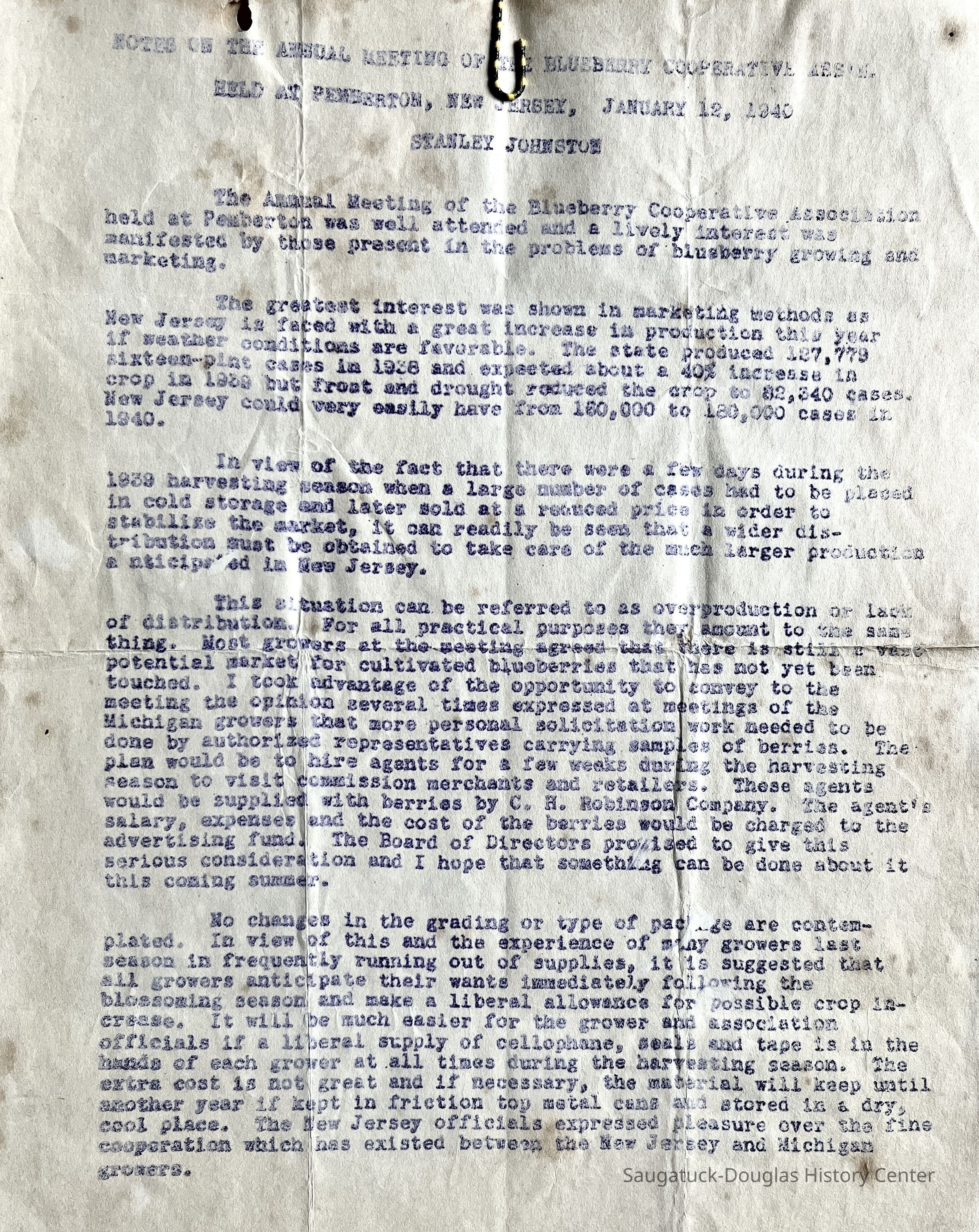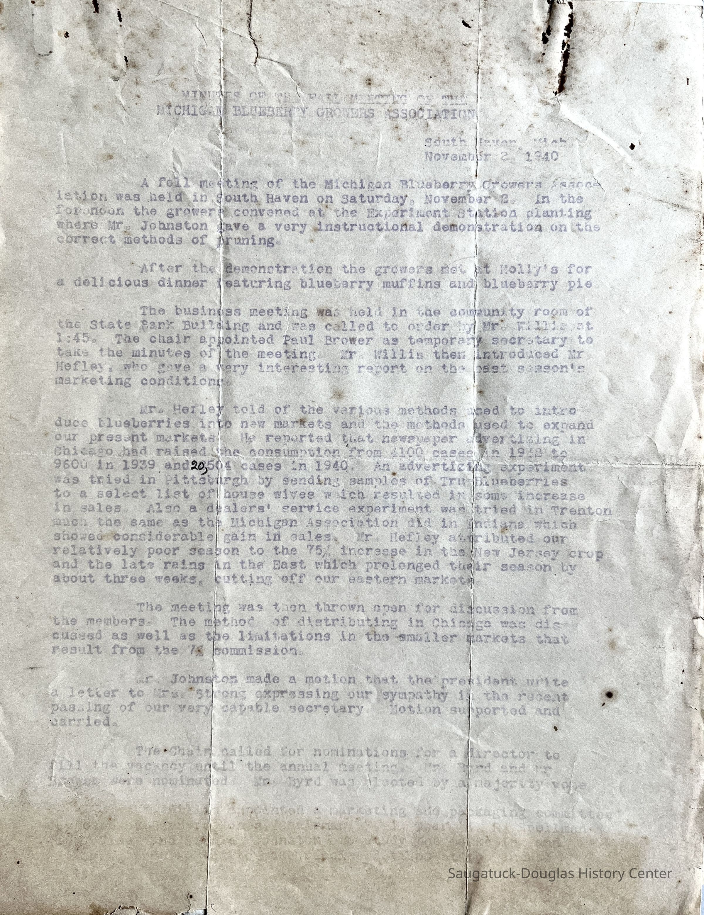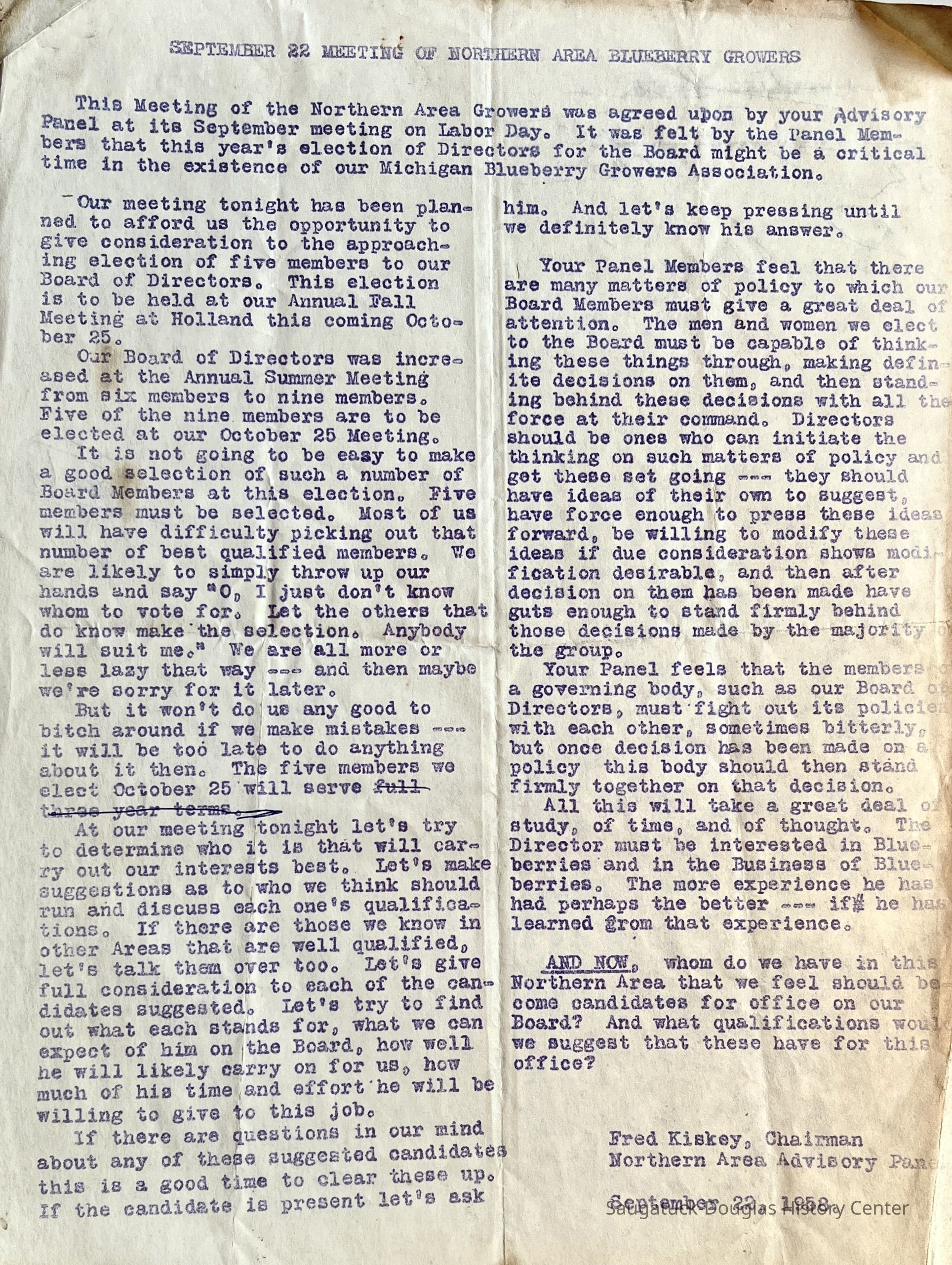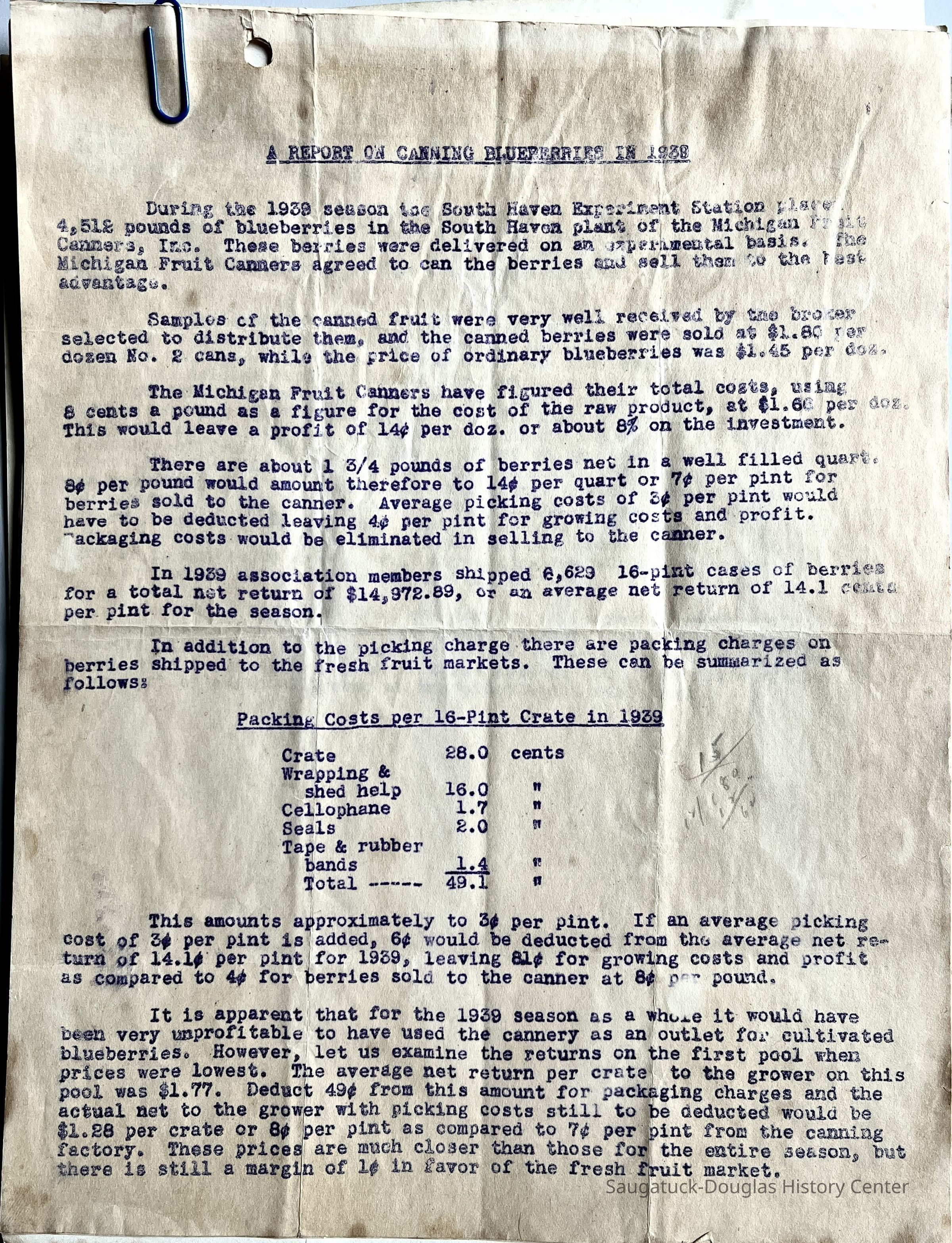 Gift. Blueberry growing docs from Gretchen and Arnold Schafter 541 W. Wisconsin, Chicago, IL 60614. Jeff Wilcox has complete address.