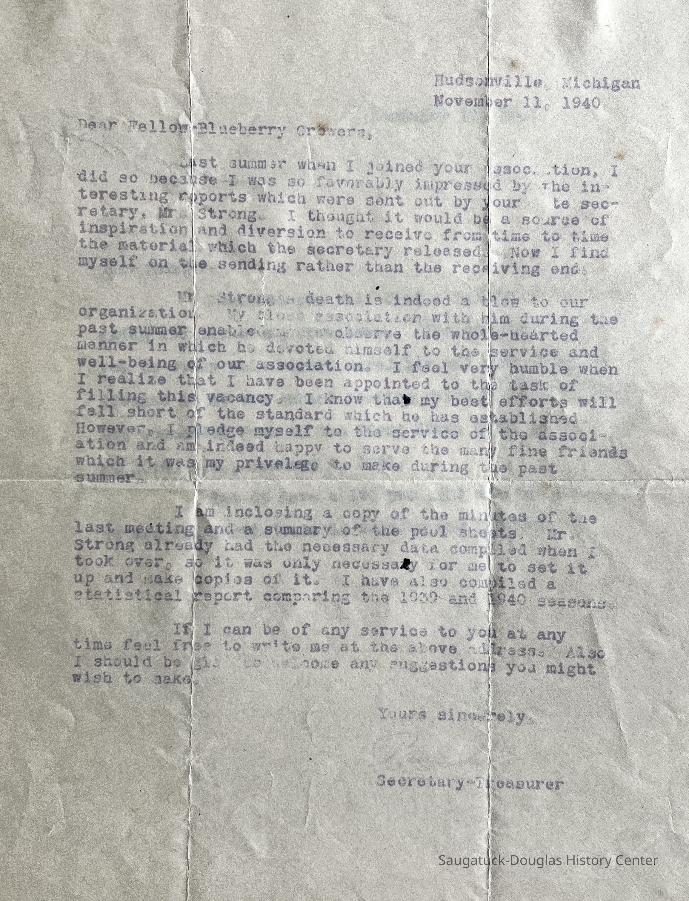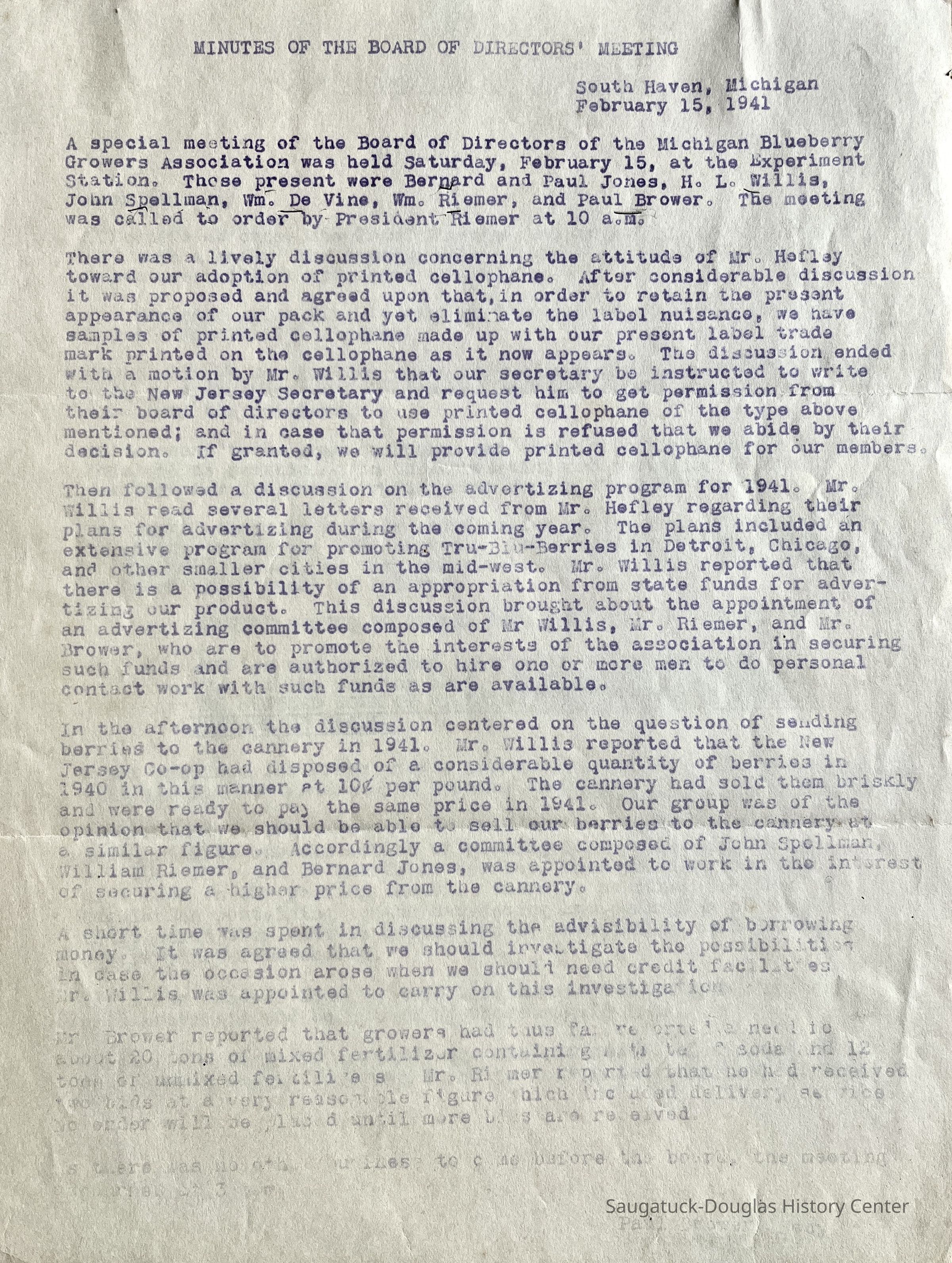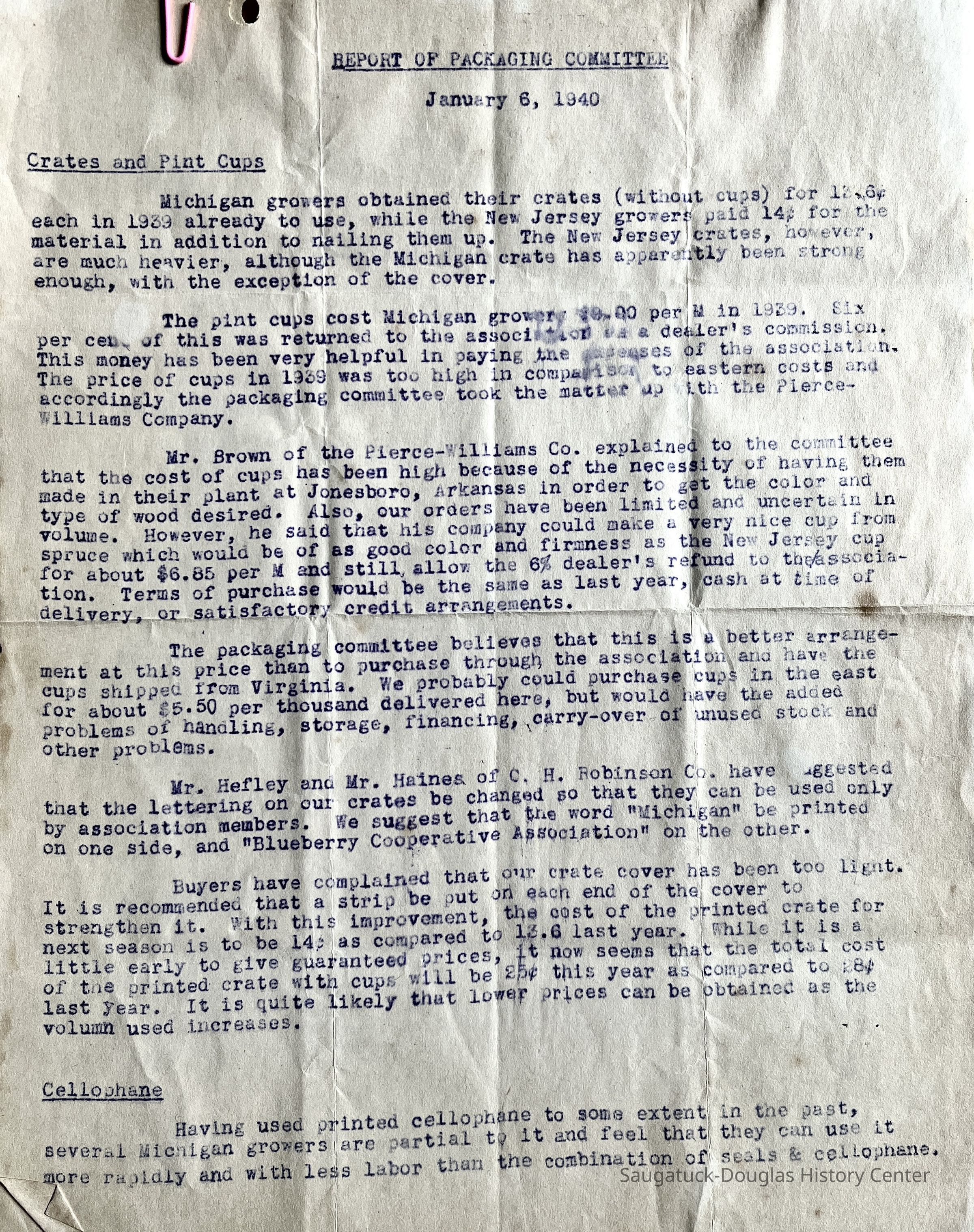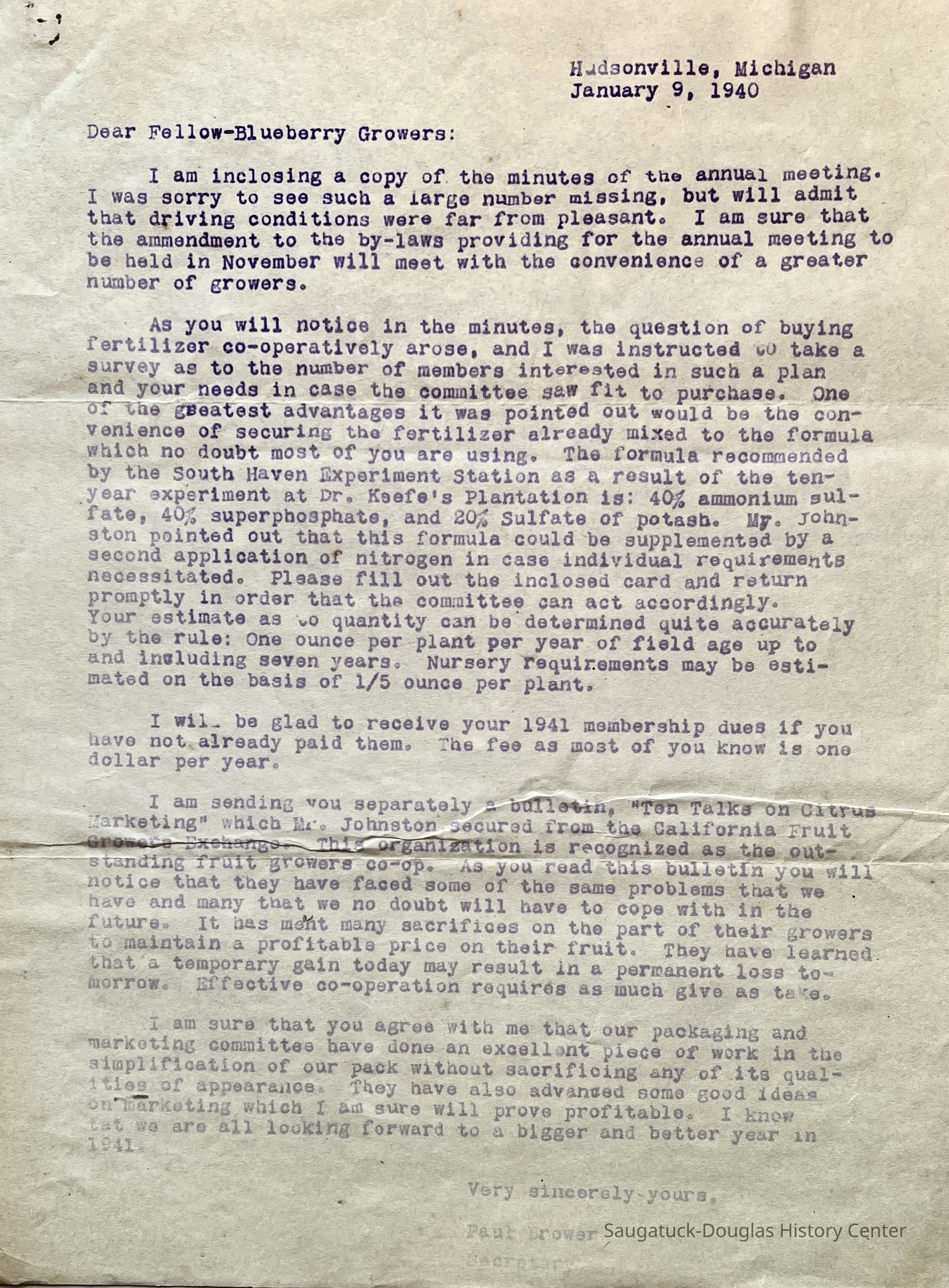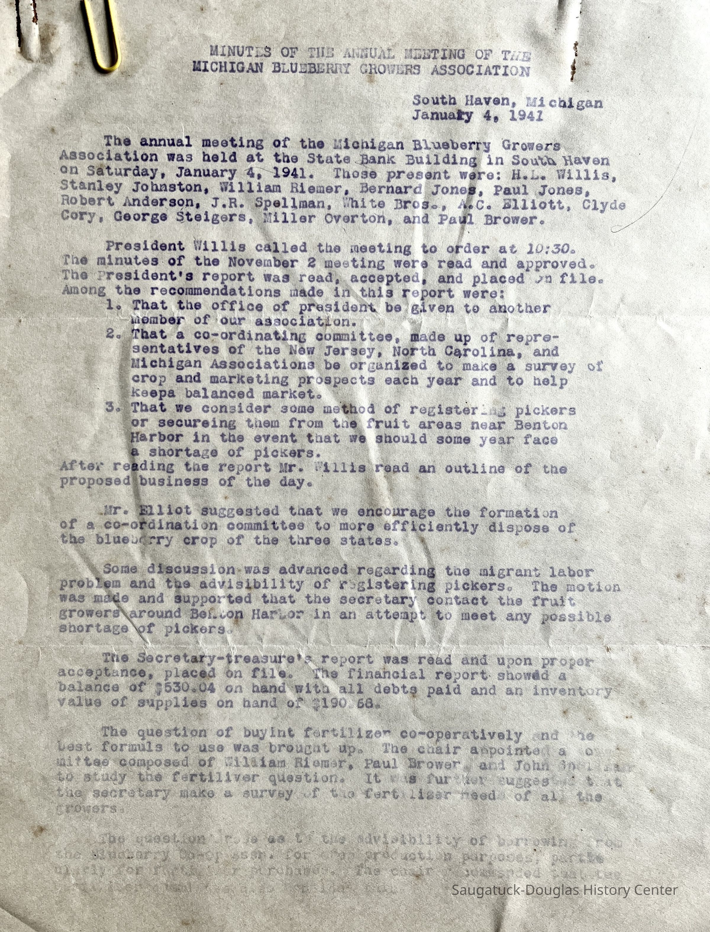 Gift. Blueberry growing docs from Gretchen and Arnold Schafter 541 W. Wisconsin, Chicago, IL 60614. Jeff Wilcox has complete address.