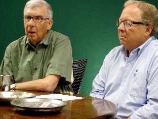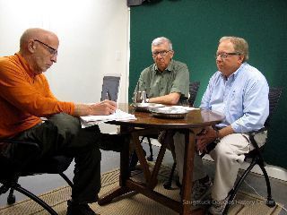 Frank Lamb and John Sanford on the Lloyd J. Harriss Pie Factory