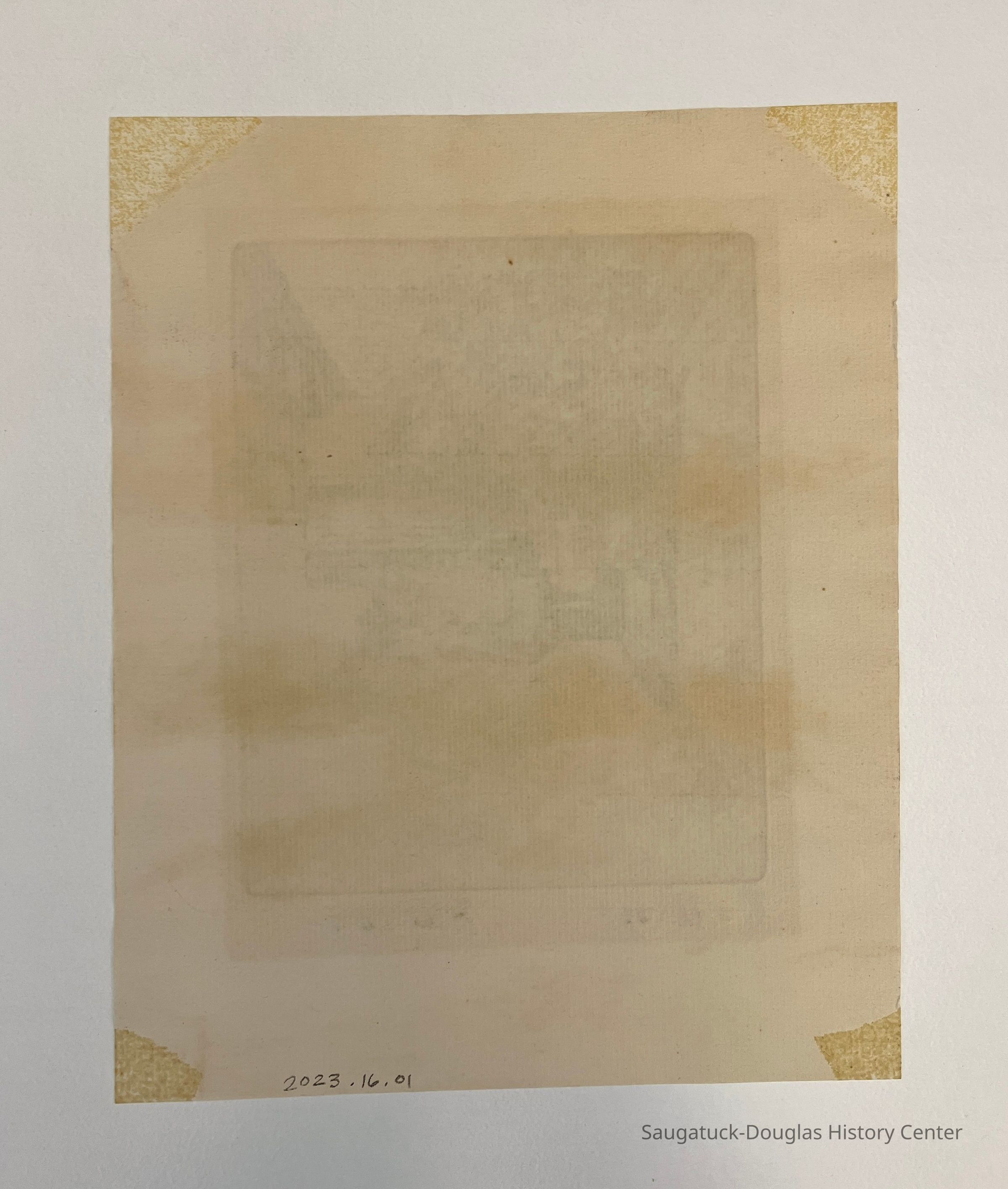The print is unframed and wrapped in packet of clean papers and file folders for stability. The SDHC also has a framed version of this print.
