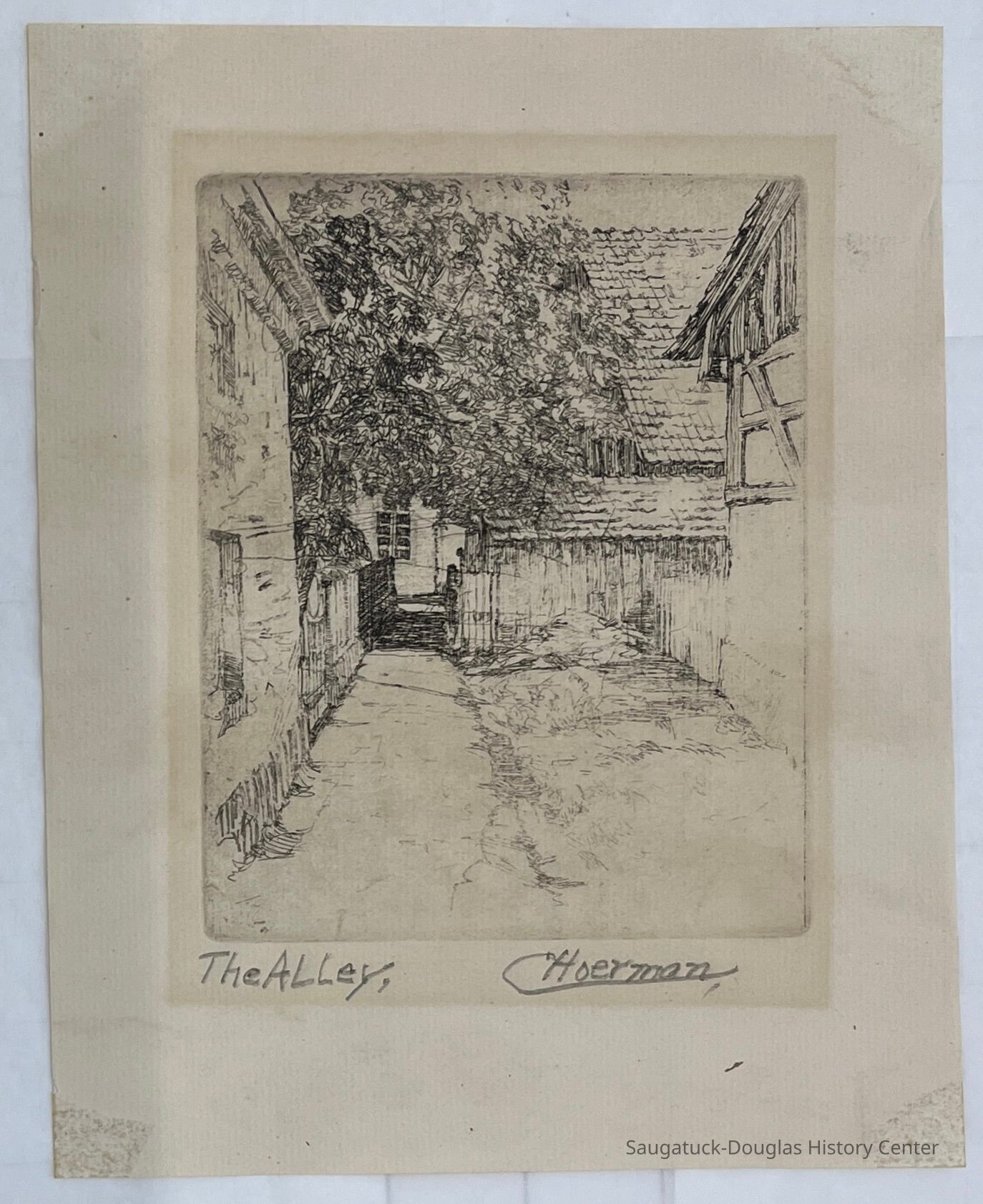 "The Alley, Carl Hoerman's town at Babenhausen, Schwaben, Germany - passage to his home. Christiana A. Hoerman $10" See 2014.23.04.