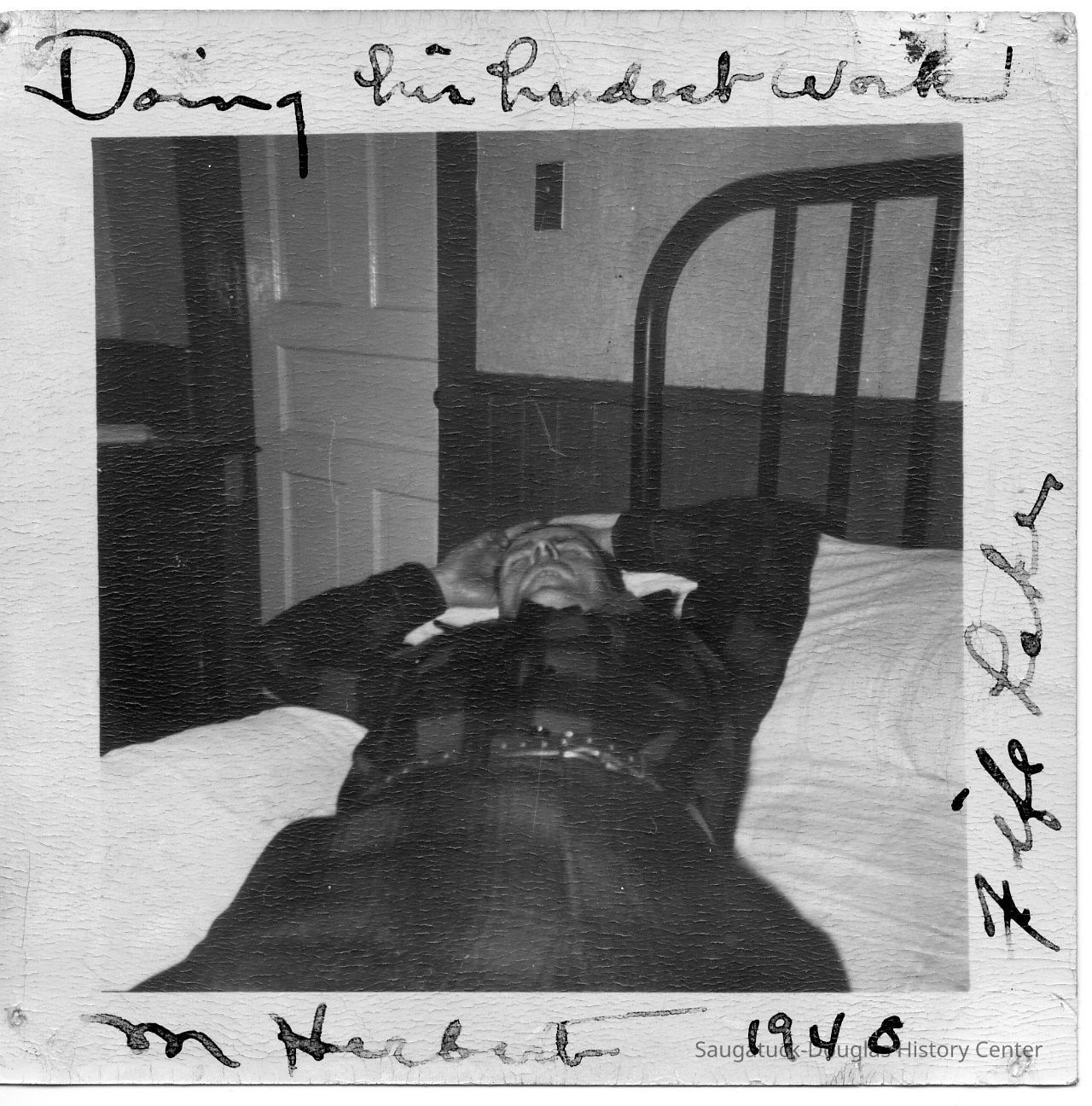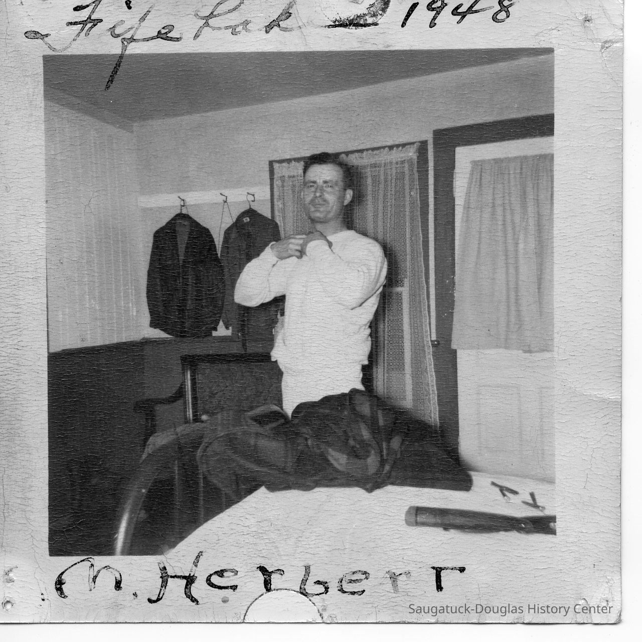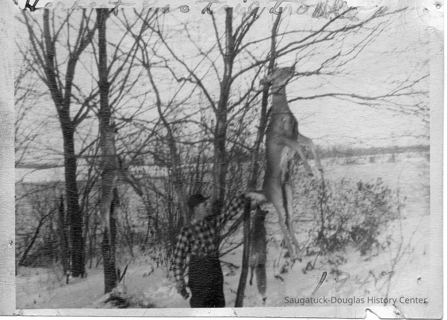 According to Jack Sheridan "These photos are of Maurice Herbert, son [probably adopted???] of Fred Herbert and Alice. The deer on the fenders photo was taken next to the Simonson Studio on Culver St and the deer hanging photo was likely taken on the Fred Herbert family farm, given the river in the background. His birth name was Morris Ziegler. See the short Herbert family tree on the Saugatuck-Douglas Community tree [ Ancestry.com.] Guessing there was probably some connection between the Herbert and Ziegler families, but have not researched that. Jack"