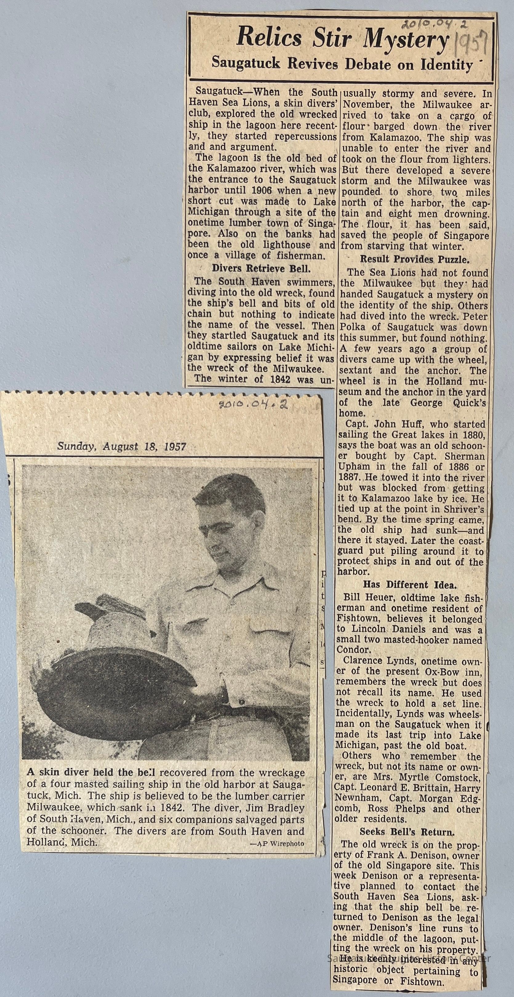 Articles about the ship wrecks that lie on the bottom of Lake Michigan.
